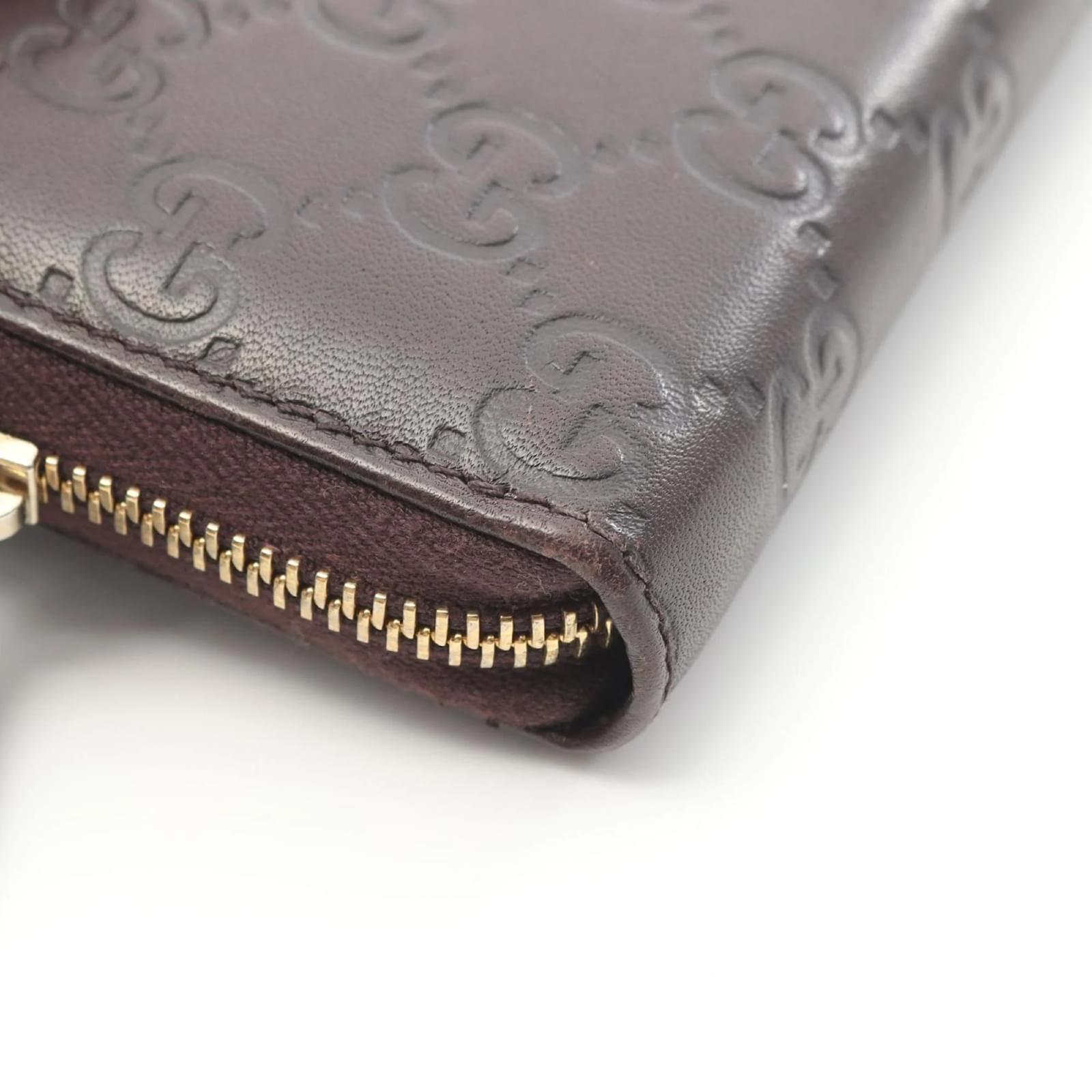 This Gucci Guccissima Round Long Wallet is crafted from brown leather and features a bi-fold design. Measuring 9.5cm in height, 19cm in width, and 2cm in depth, it offers a compact yet functional size for everyday use. The wallet is classified as used but remains in good condition, showing slight traces of usage, including minor scratches and dirt. It is important to review the provided images for a clear understanding of its condition. No additional accessories are included with this item.
