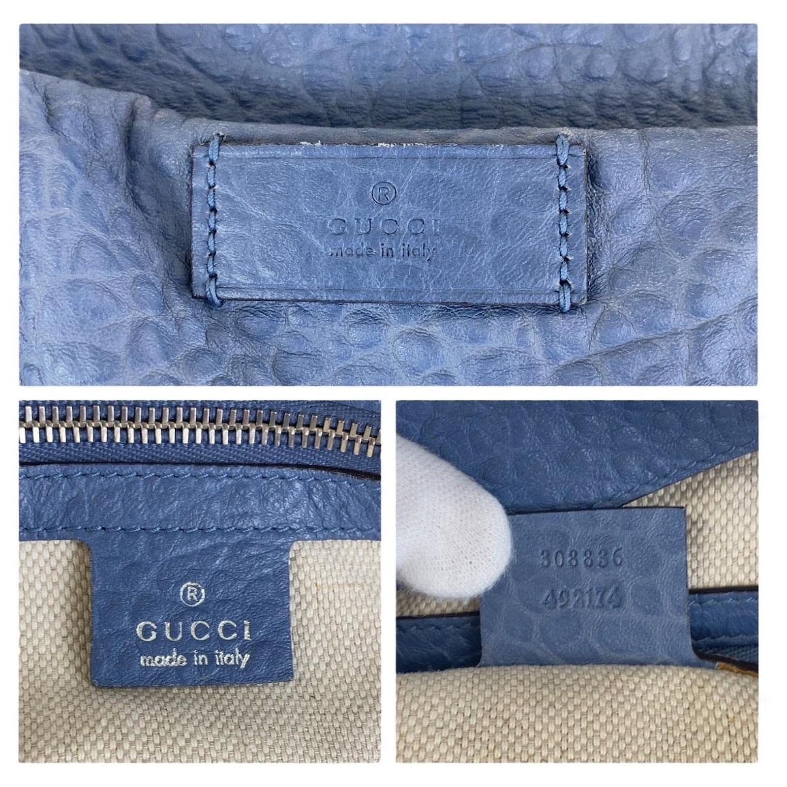– General information -\nBrand : GucciItem name : Gucci Leather 2way Tote Bag 501856Model number : – Design -Type : Shoulder BagMaterial : LeatherColor : BlueGender : Male- Size -Size : Length : 40Depth : 52-34Height : 19Handle Drop : 46Item Material : LeatherItem Color : Blue NavyClosure Type : OpenInterior : 2 open pockets, 1 zip pocket- Inventory -Serial Number : 308836SKU : 120210015714000A0025669266- Included Items -Accessories : null*Before purchasing, please refer to the images of the accessories included with the item.- Condition -Condition : Very Good ConditionRank : Used A Used condition with some scratches and stains.Condition Notice : Before purchasing, please refer to the images for the exact condition of the item. Measurments: width: 52 mm length: 40 mm height: 19 mm handle drop: 46 mm \n Product Id: 481297 \n