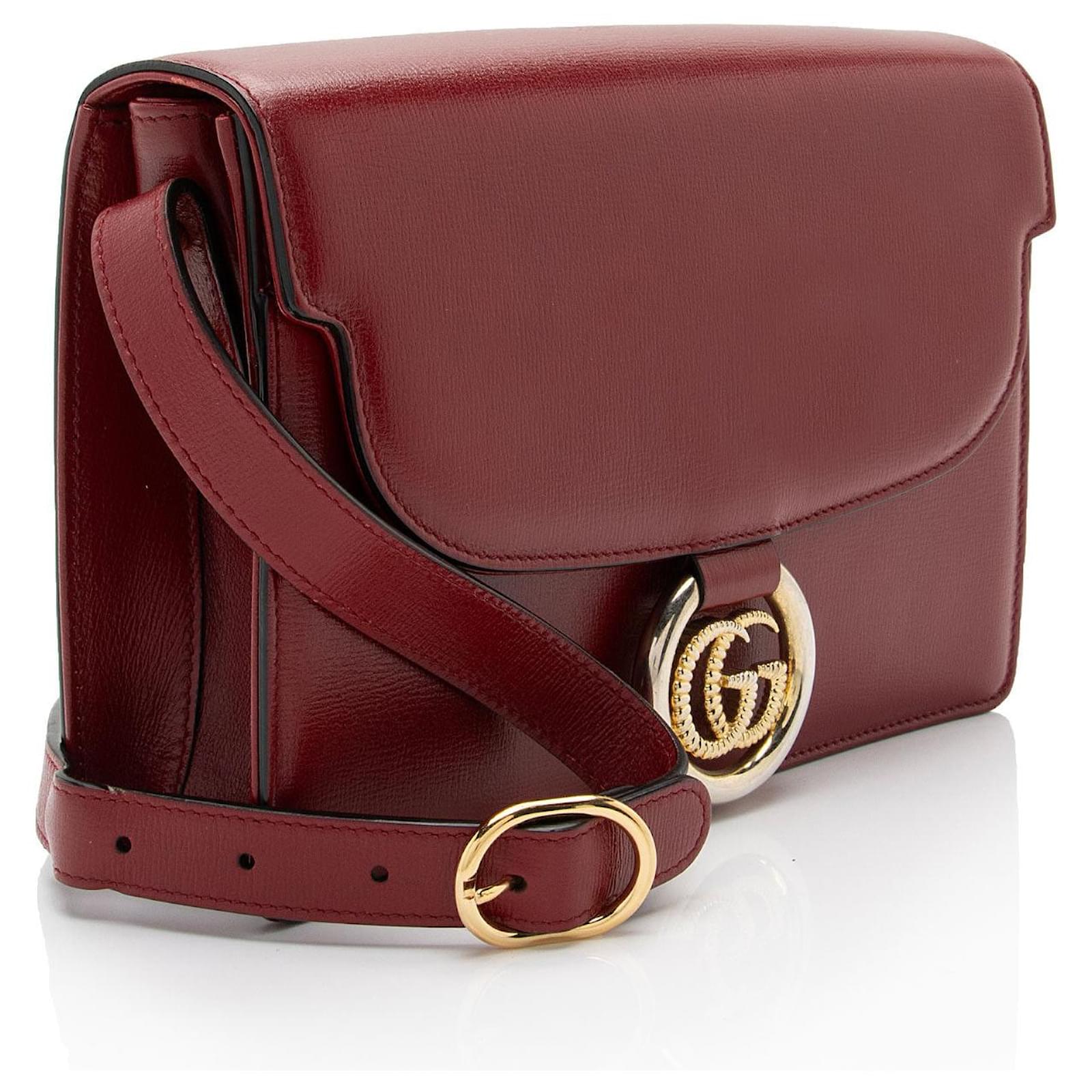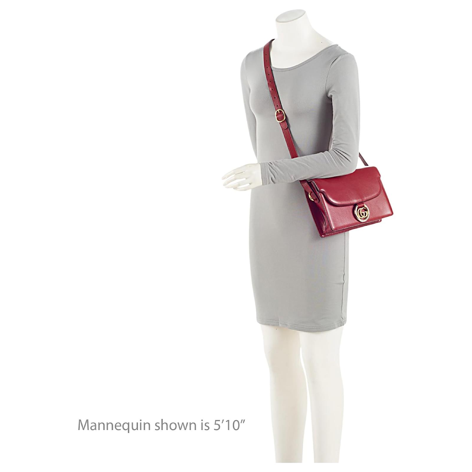 The Italian fashion house of Gucci continues to reinterpret its rich heritage under current Creative Director Alessandro Michele (2015). Maintaining a balance between historical reference and contemporary eclectic flare, the brand’s signature “double g” remains iconic. Gucci has been recognized as a worldwide leader in the luxury goods market for 90 years.Condition Notes: Light scuffs throughout exterior. Light creasing and minor warping throughout shoulder strap. Surface scratches and tarnishing to hardware. Light scuffs and wear throughout interior flap. Minor wear to interior.Width (at base): 9.5\”Height: 6.5\”Depth: 2\”Shoulder Strap Drop: 16\”, AdjustableType of Material: LeatherColor: RedLining: Blue Fine TextilePockets: Three InteriorHardware: Gold ToneClosure: Magnetic SnapOrigin: ItalyIncludes: Dust Bag Measurments: width: 241 mm height: 165 mm strap length: 406.4 mm handle drop: 406.4 mm \n Product Id: 510364 \n
