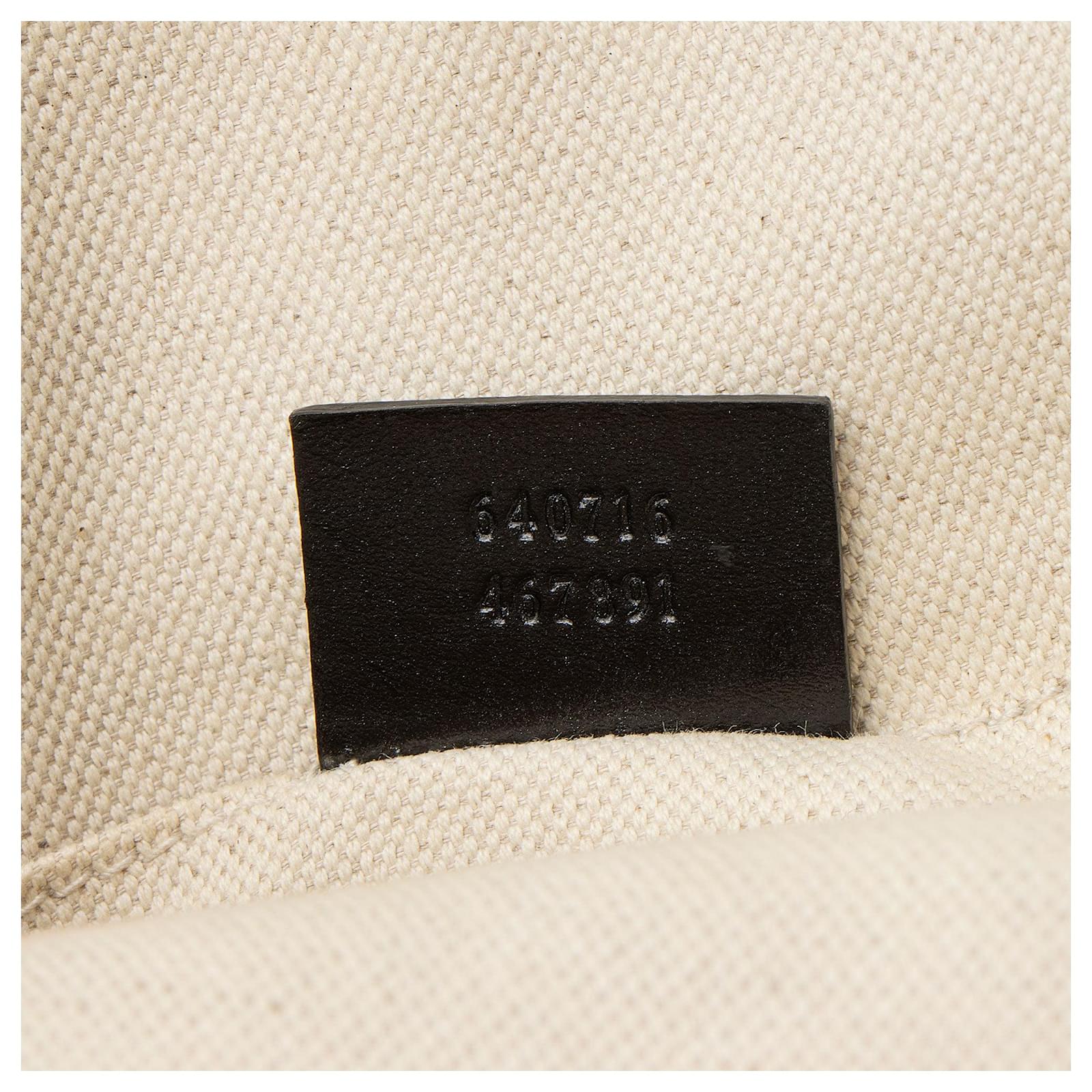 The Italian fashion house of Gucci continues to reinterpret its rich heritage under current Creative Director Alessandro Michele (2015). Maintaining a balance between historical reference and contemporary eclectic flare, the brand’s signature “double g” remains iconic. Gucci has been recognized as a worldwide leader in the luxury goods market for 90 years.Condition Notes: Light scuffs and minor creasing throughout exterior. Light surface scratches to hardware. Darkening and marks throughout interior.Width (at base): 8\”Height: 7\”Depth: 2.75\”Handle Drop: 3.5\”Shoulder Strap Drop: 21\”, AdjustableType of Material: LeatherColor: BlackLining: Beige CanvasPockets: One InteriorHardware: Gold ToneClosure: Double ZipOrigin: ItalyIncludes: Detachable Shoulder Strap Measurments: width: 203 mm height: 177 mm strap length: 533.4 mm handle drop: 88.9 mm \n Product Id: 510458 \n