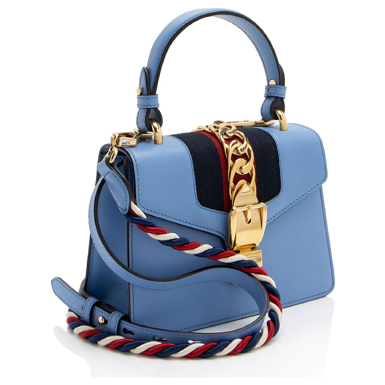 The Italian fashion house of Gucci continues to reinterpret its rich heritage under current Creative Director Alessandro Michele (2015). Maintaining a balance between historical reference and contemporary eclectic flare, the brand’s signature “double g” remains iconic. Gucci has been recognized as a worldwide leader in the luxury goods market for 90 years.Condition Notes: Light warping and wear to top handle. Minor creasing throughout leather shoulder strap. Minor scuffs to exterior bottom corners. Scuffs throughout exterior. Surface scratches to hardware. Scuffs and light creasing throughout interior flap. Light marks throughout interior.Width (at base): 8\”Height: 5.5\”Depth: 3\”Handle Drop: 4\”Shoulder Strap Drop: 21\”, 20\”, AdjustableType of Material: Leather, NylonColor: BlueLining: Brown MicrofiberPockets: One InteriorHardware: Gold ToneClosure: Turn LockOrigin: ItalyIncludes: Two Detachable Shoulder Straps, Detachable Handle, Dust Bag Measurments: width: 203 mm height: 139 mm strap length: 533.4 mm handle drop: 101.6 mm \n Product Id: 510380 \n