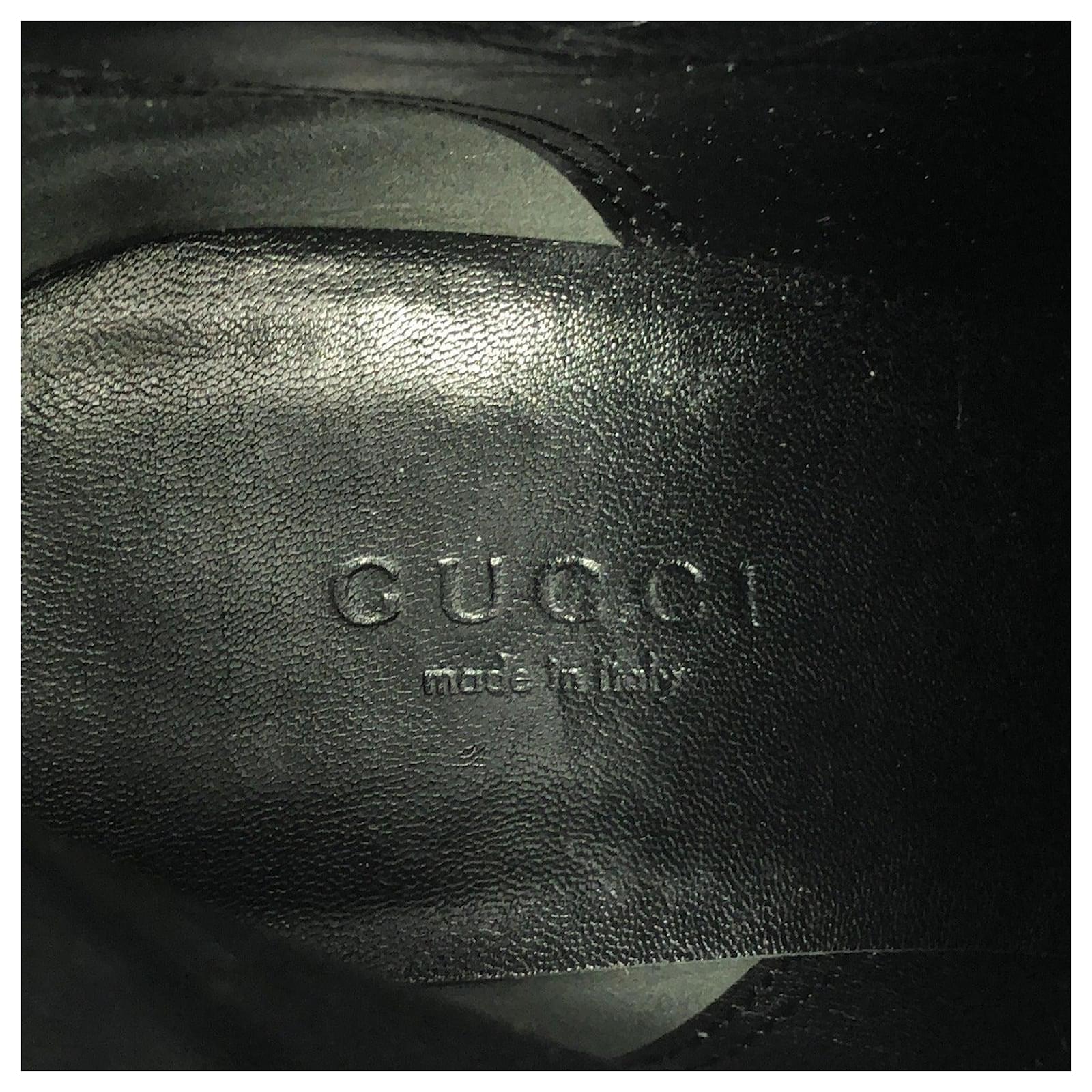 – General information – Brand : GucciItem name : Gucci Long Boots Leather BootsModel number : – Design -Type : ShoesMaterial : LeatherColor : BlackGender : Female- Size -Size : Shoe size(JP) : 23Instep width : 8Heel : 8.5Shaft height : 35.5Material : LeatherColor : Black- Inventory -Serial Number : SKU : 120250000335325A0025597253- Included Items -Accessories : null*Before purchasing, please refer to the images of the accessories included with the item.- Condition -Condition : Good ConditionRank : Used A Used condition with obviously scratches and stains.Condition Notice : Before purchasing, please refer to the images for the exact condition of the item.