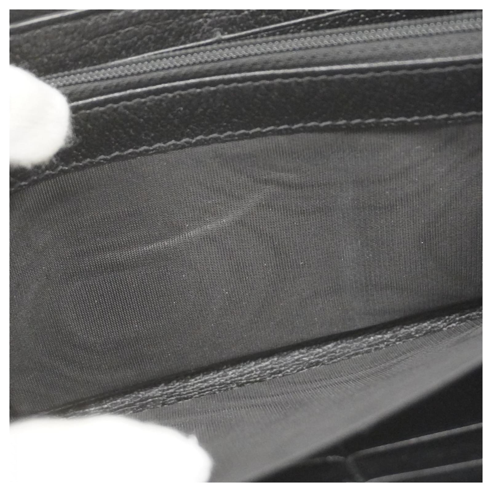 This Gucci long wallet features a bi-fold design in classic black leather, measuring 10cm x 18.5cm x 2.5cm. It is suitable for both men and women and showcases the brand’s signature GG Marmont style. The wallet is in good used condition, classified as Rank AB, with slight traces of usage, including minor scratches and dirt. Potential buyers are encouraged to review the images for a detailed view of the item’s condition. No additional accessories are included with the wallet.