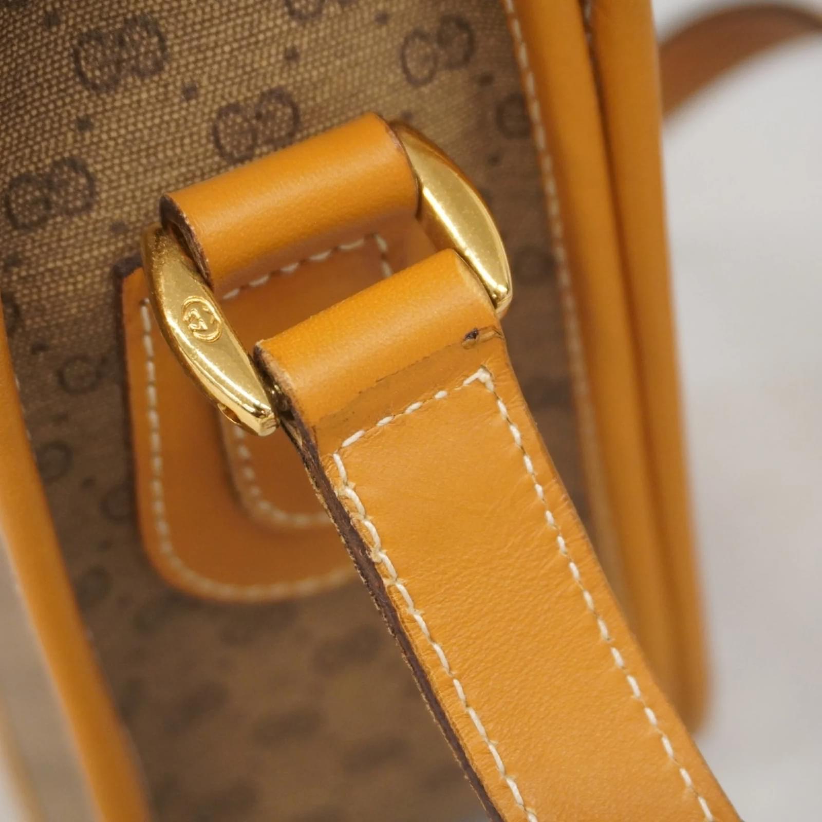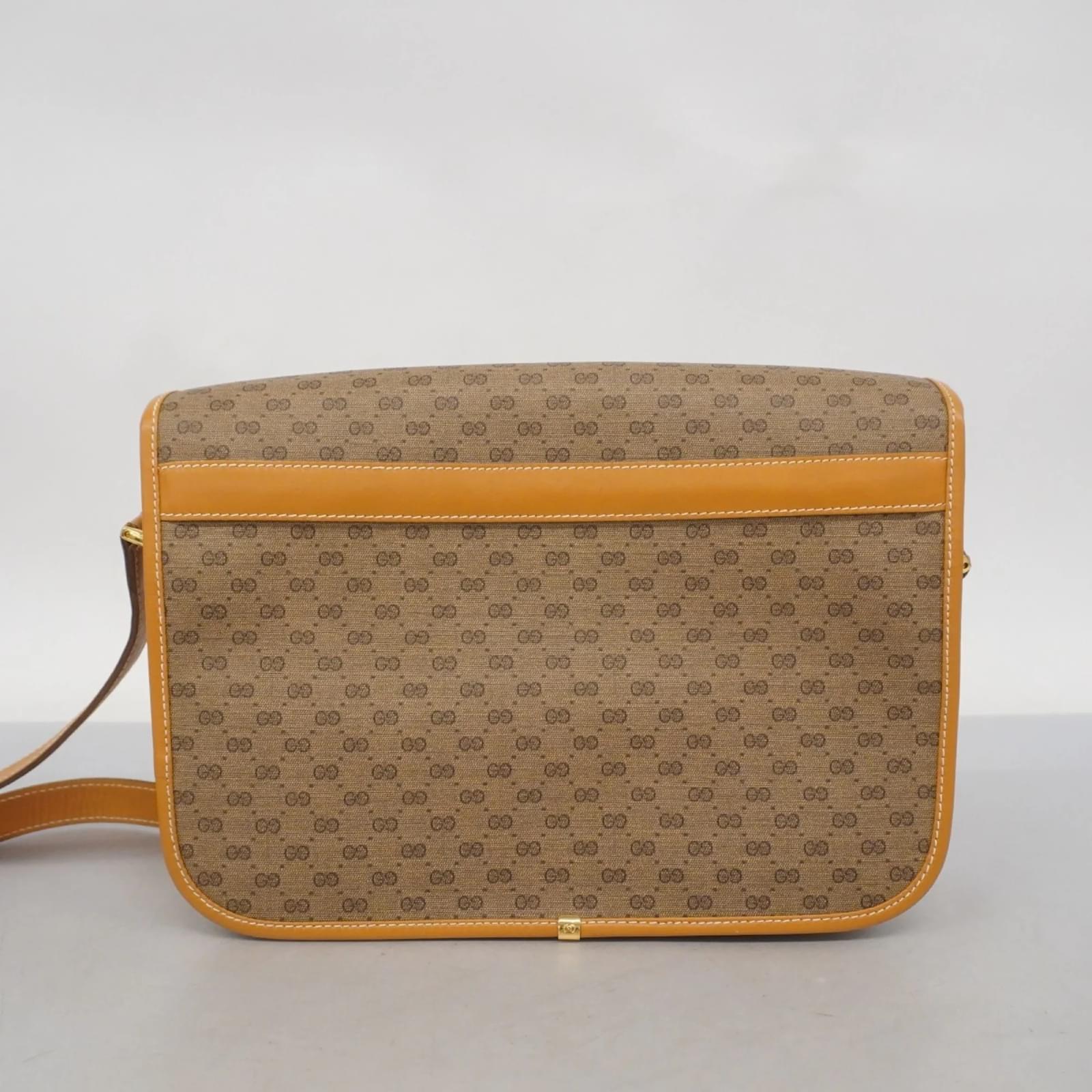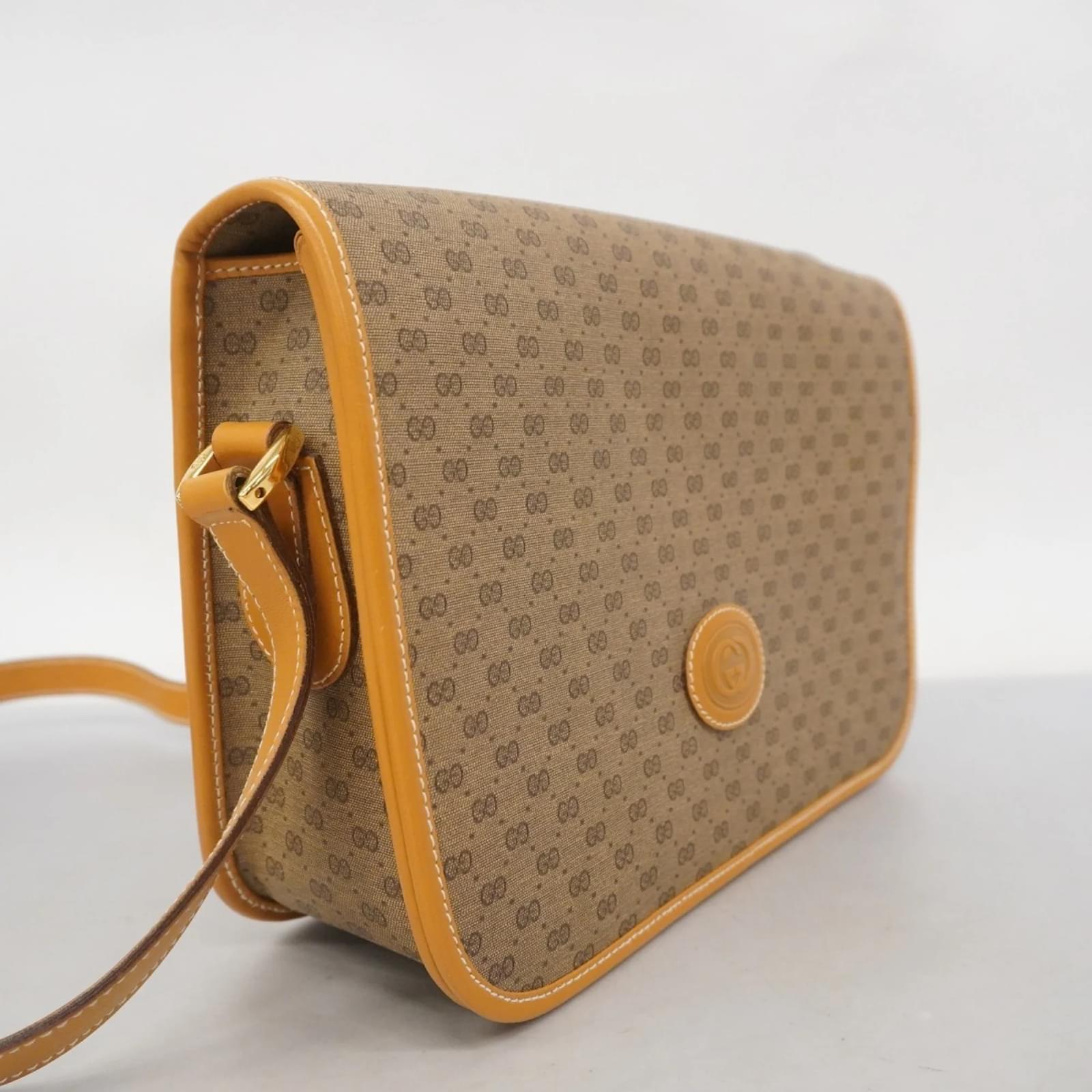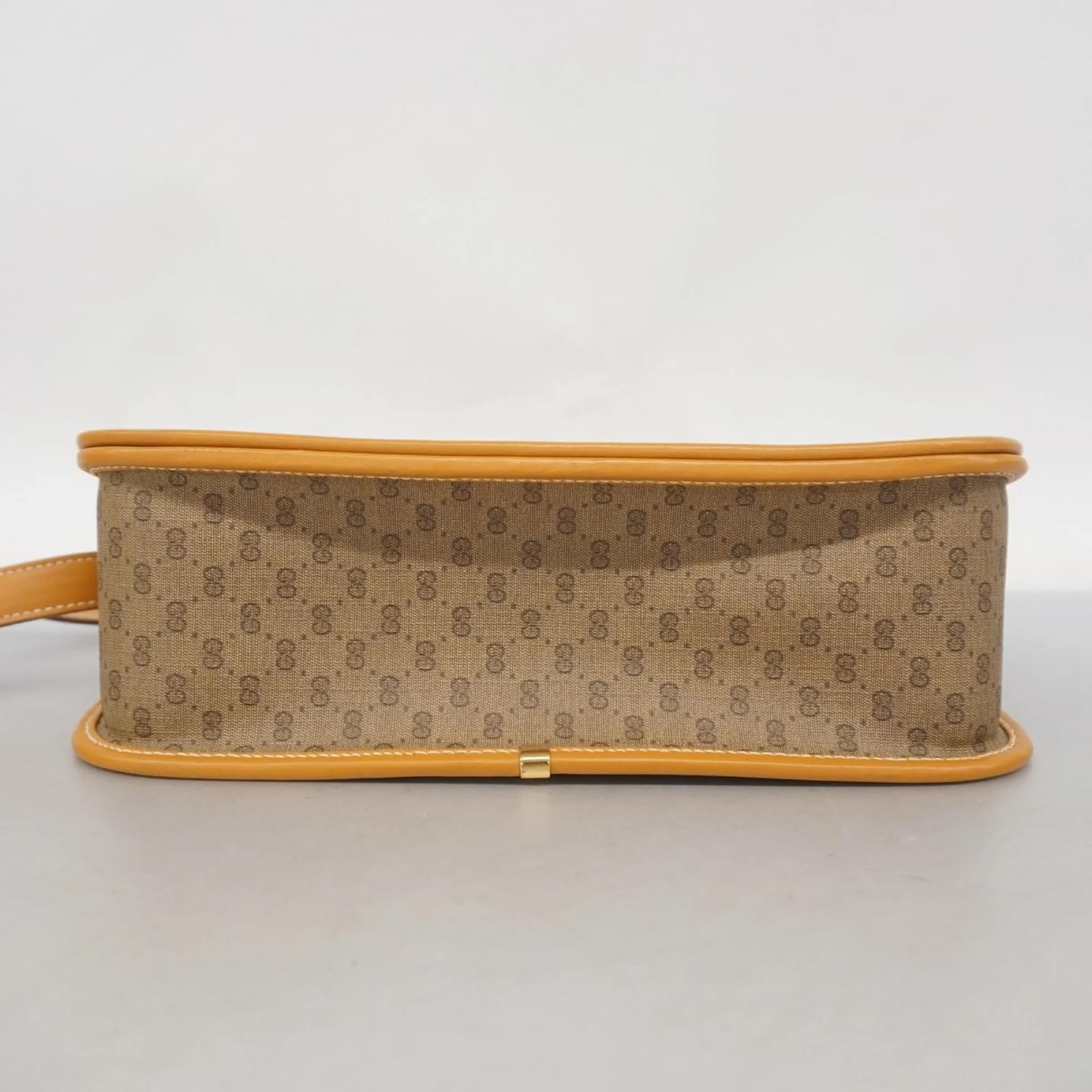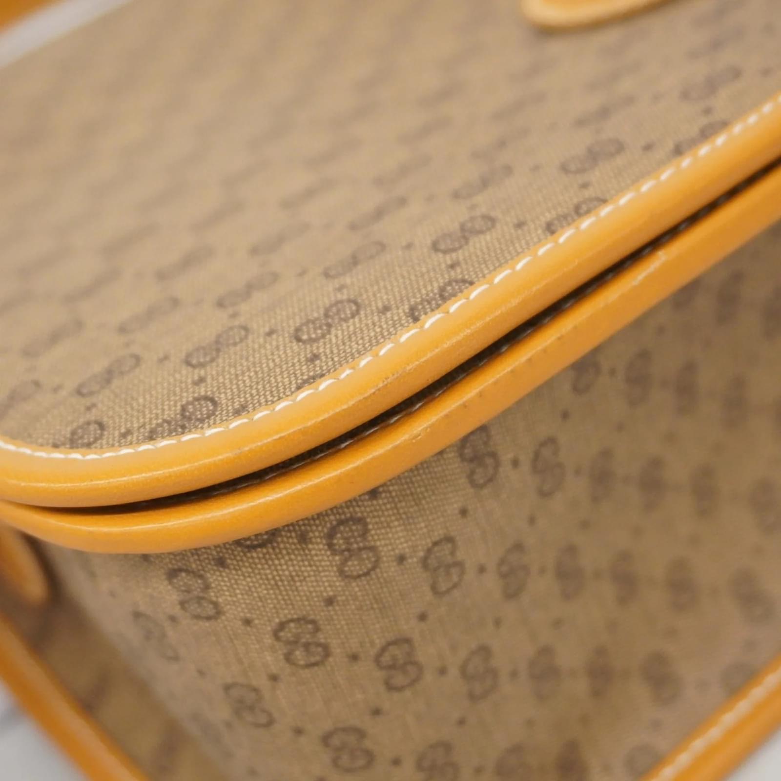 This Gucci shoulder bag features a classic design in beige and light brown, complemented by gold hardware. Made from PVC, it measures 19cm in height, 26cm in width, and 8cm in depth. The bag is categorized as used but is in good condition, showing slight traces of use, including minor scratches and dirt. It is important to review the provided images for a clear understanding of its condition. No additional accessories are included with this item.