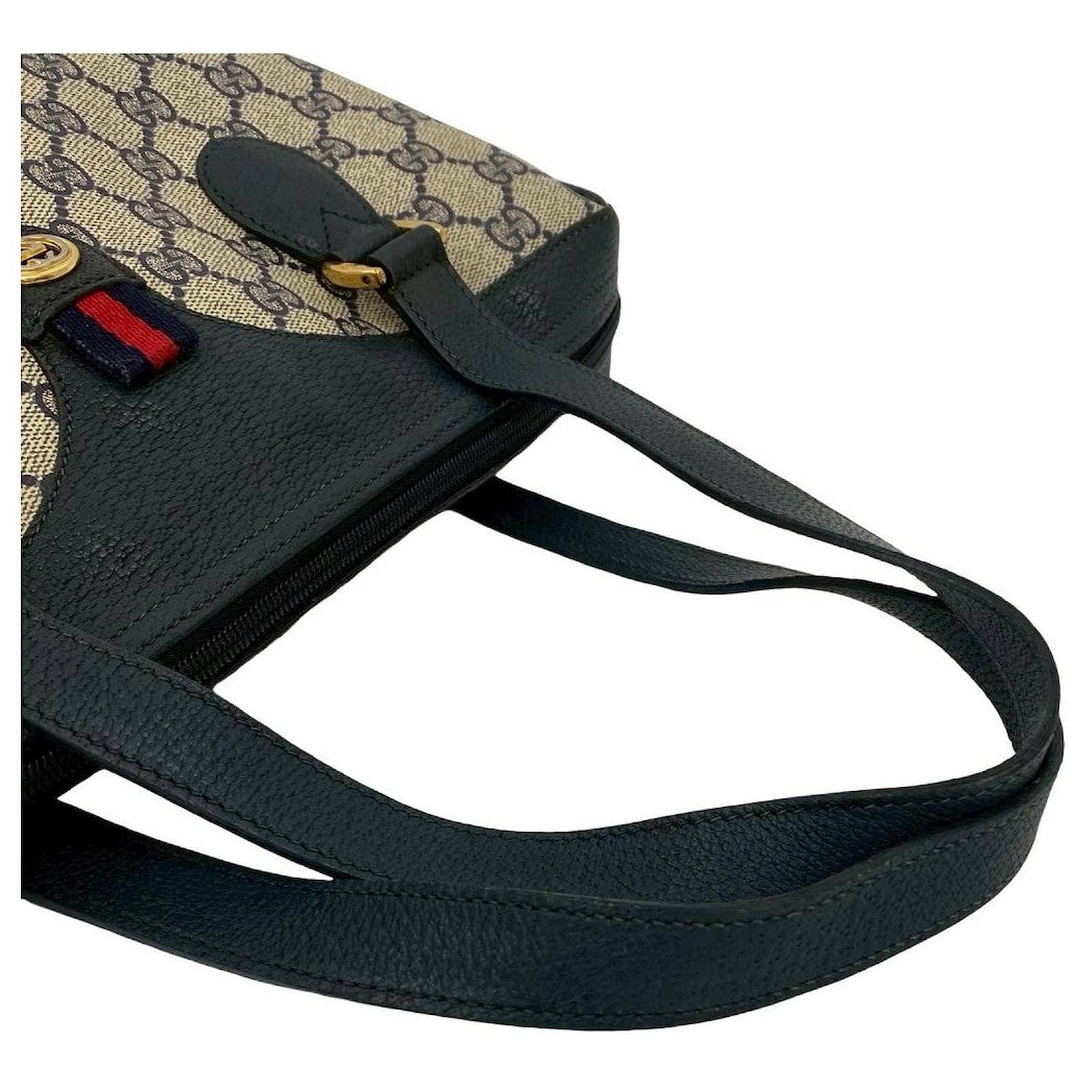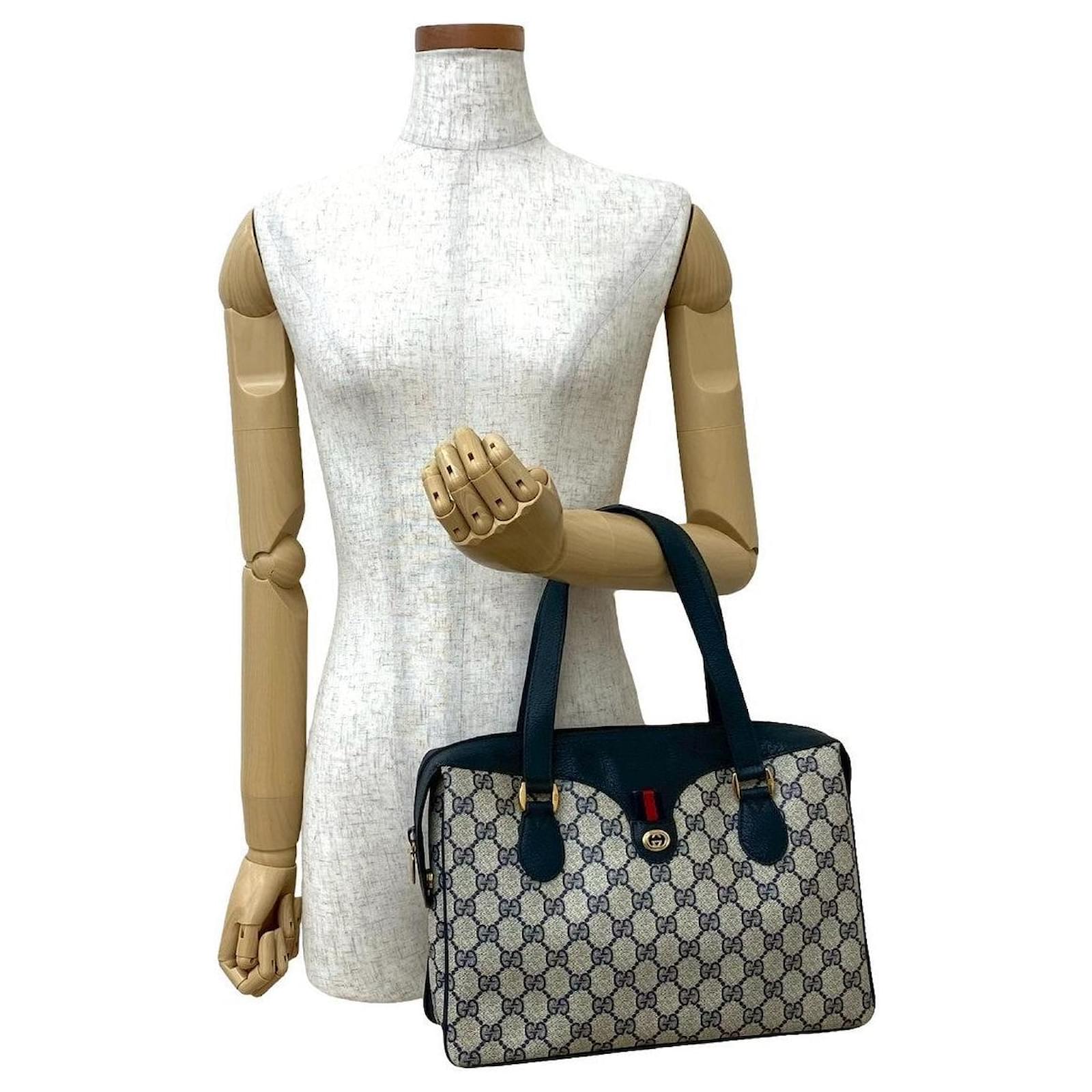 – General information -\nBrand : GucciItem name : Gucci Old Gucci PVC Leather HandbagModel number : – Design -Type : Tote BagMaterial : LeatherColor : BlueGender : Female- Size -Size : Length : 30.5Depth : 8.5Height : 22Handle Drop : 16Shoulder strap : 48Item Material : Leather / PVCItem Color : Navy x RedClosure Type : ZipperInterior : Main compartment x 1- Inventory -Serial Number : 41.02.079SKU : 120210009153000A0025846884- Included Items -Accessories : null*Before purchasing, please refer to the images of the accessories included with the item.- Condition -Condition : Very Good ConditionRank : Used A Used condition with some scratches and stains.Condition Notice : Before purchasing, please refer to the images for the exact condition of the item. Measurments: width: 85 mm length: 305 mm height: 220 mm strap length: 480 mm handle drop: 160 mm \n Product Id: 525253 \n