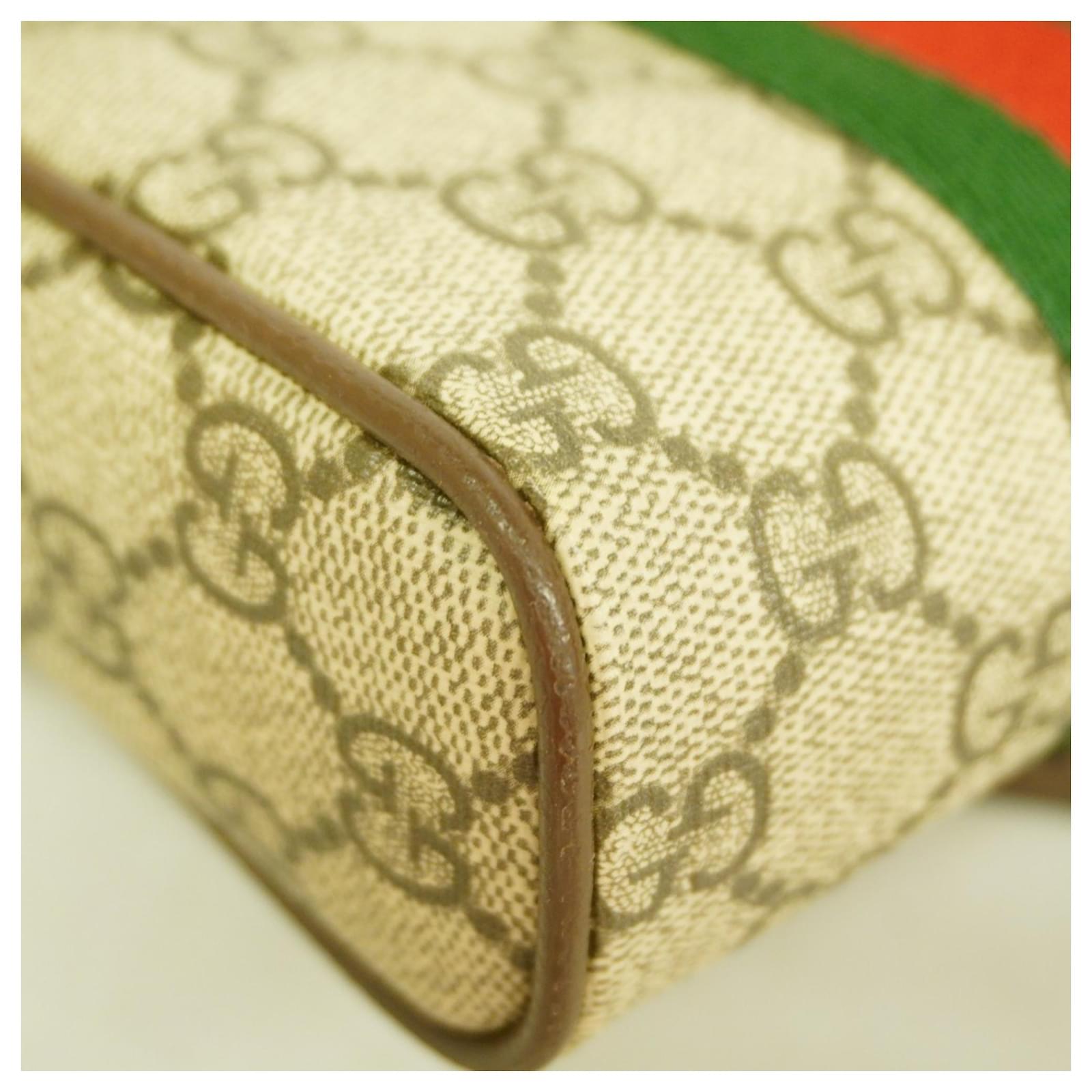 This Gucci shoulder bag, model Ophidia 598127, features a combination of brown, green, and red colors, crafted from durable PVC material. The bag measures 17.5cm in height, 14cm in width, and 5.5cm in depth, making it a compact accessory suitable for various occasions. \n\nThe item is classified as used but is in good condition, with slight traces of usage, including minor scratches and dirt. It is important to review the provided images for a clear understanding of the bag’s condition before purchasing. No additional accessories are included with this item.