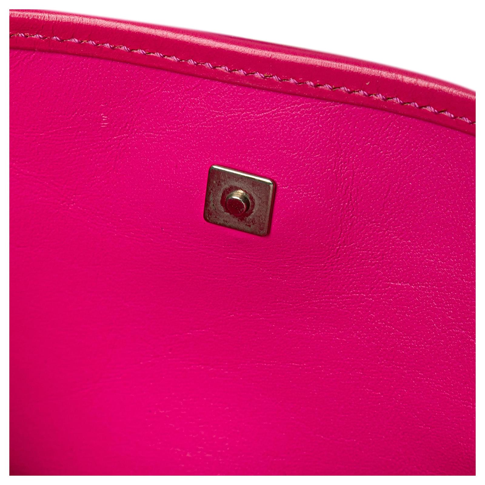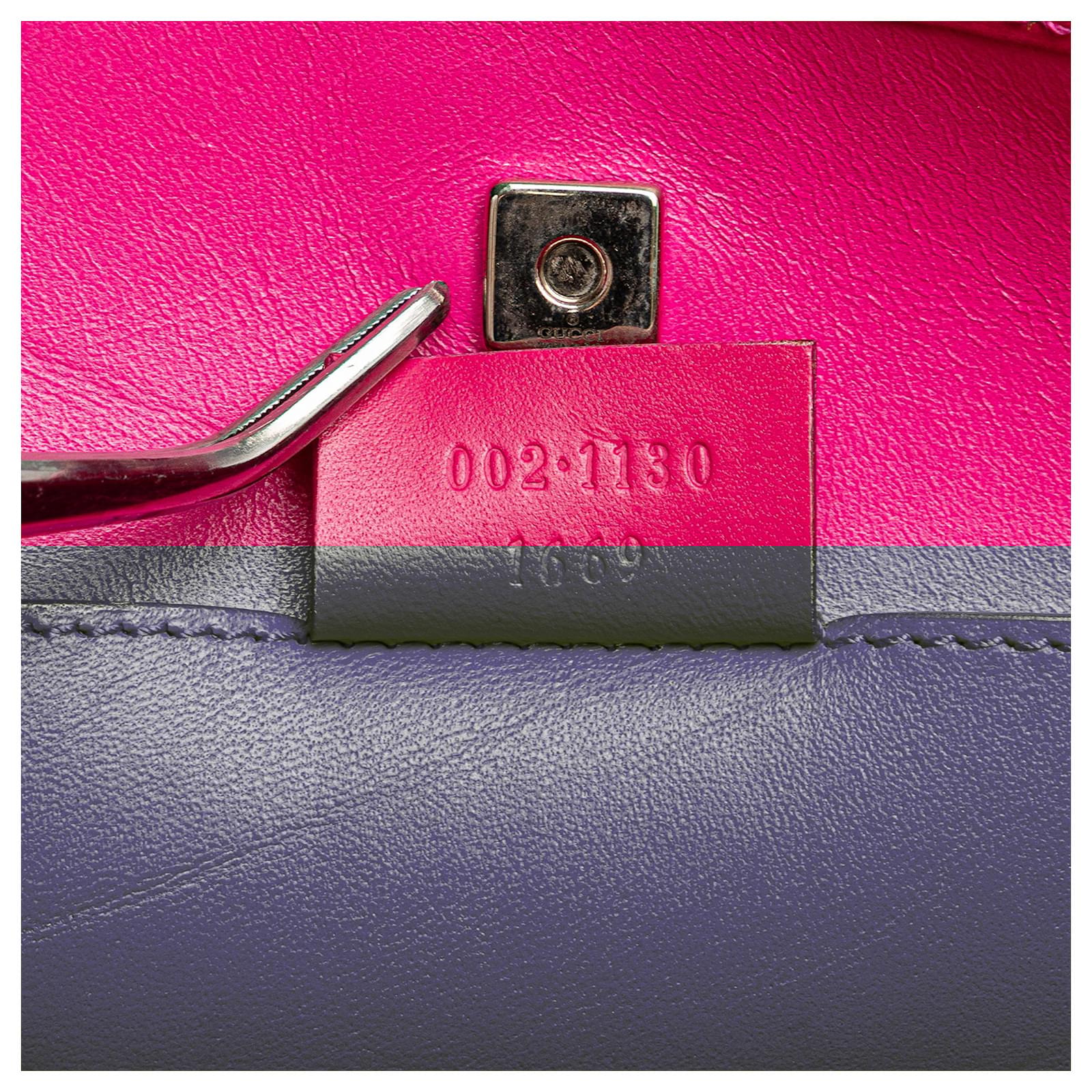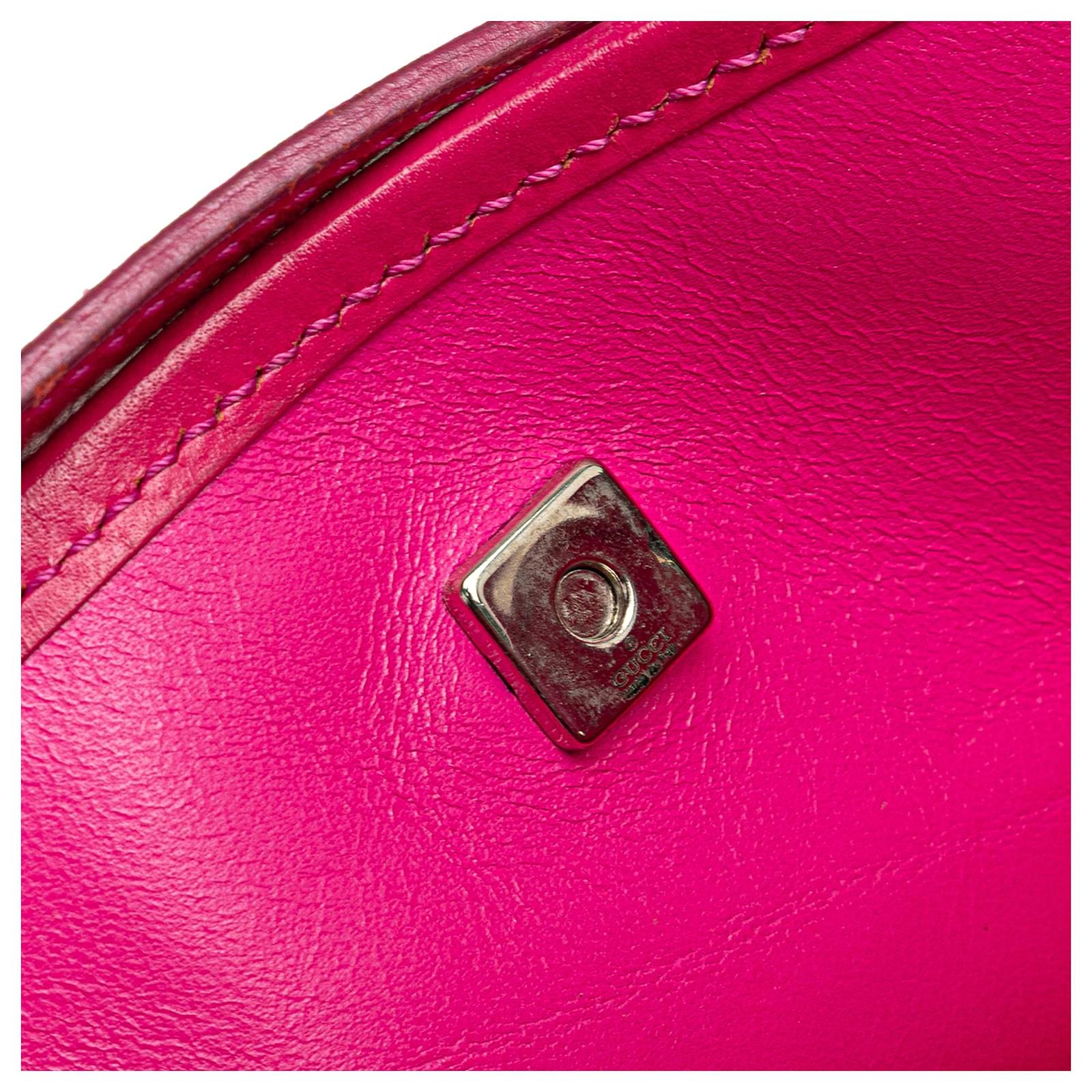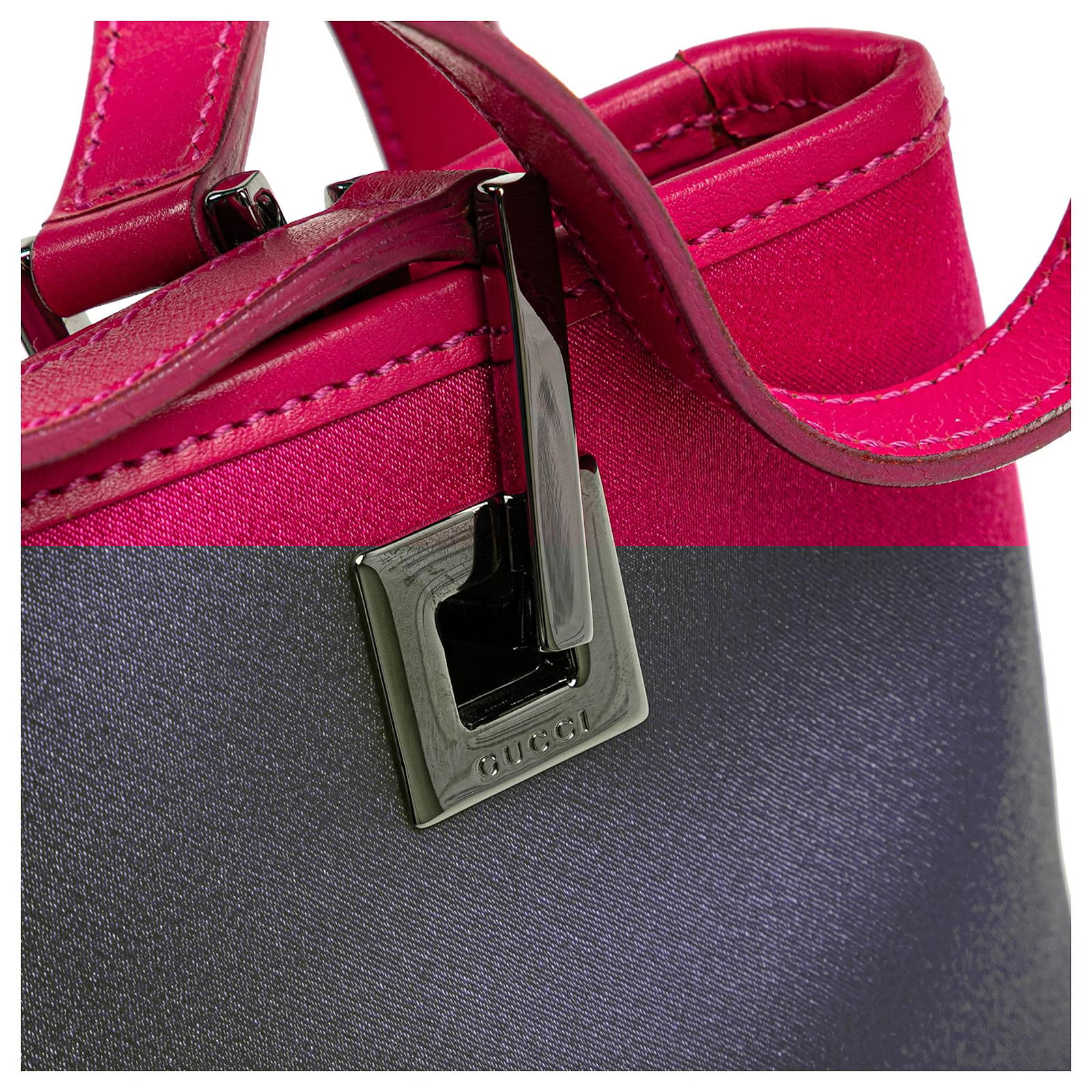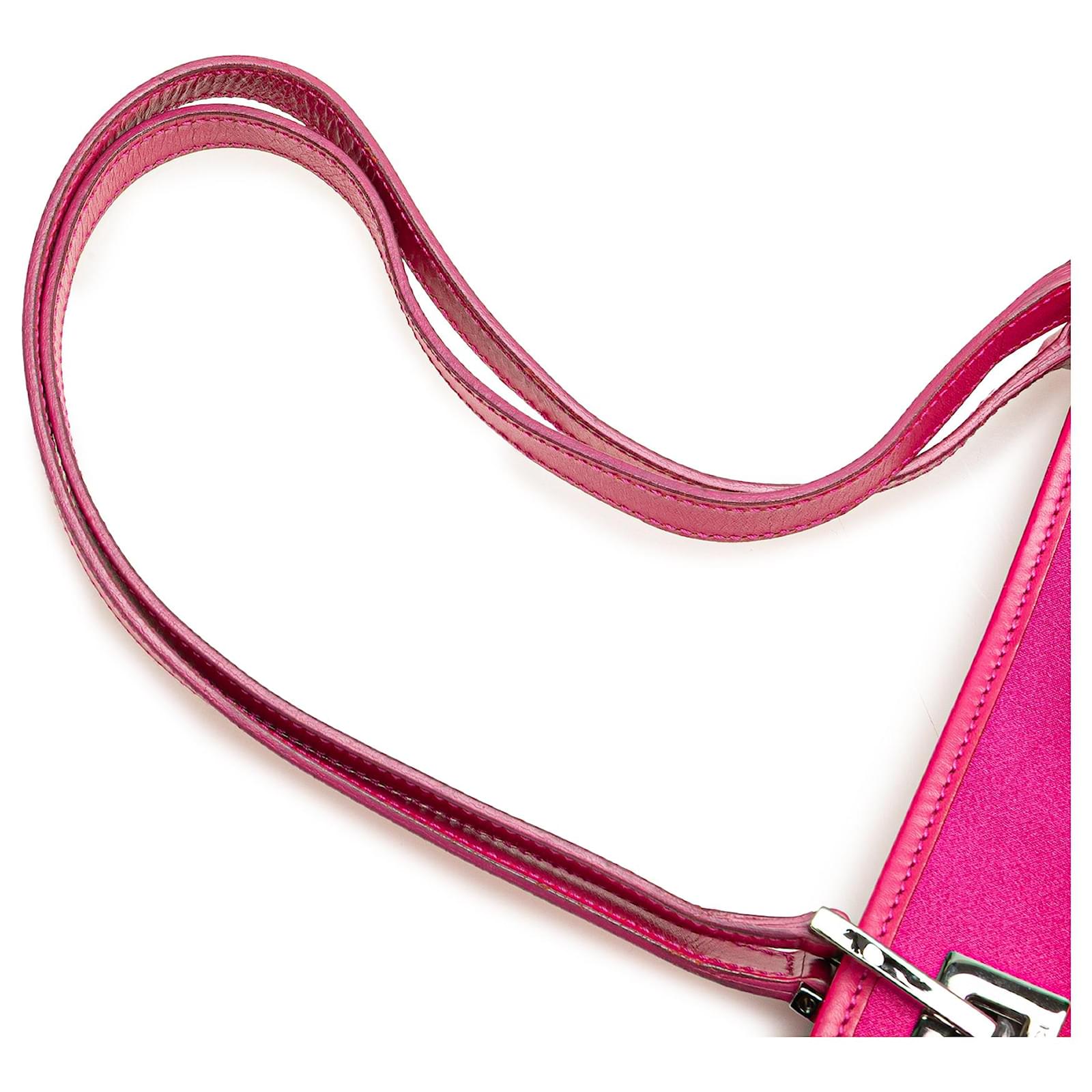 This shoulder bag features a satin body, flat leather straps, and an open top with magnetic snap closure. It carries a B+ condition rating.\r\n\r\nExterior Back stained with Other. Exterior Bottom stained with Other. Lock Scratched. Exterior Corners Worn. Embellishment Scratched. Exterior Front stained with Other. Exterior Handle Cracked, Creased, Worn. Exterior Handle stained with Other. Interior Pocket stained with Other. Interior Lining stained with Other. Practical Attachment Scratched. Exterior Top Worn. Exterior Top stained with Other. \r\n\r\nDimensions: \r\nLength: 14 cm\r\nWidth: 24 cm\r\nDepth: 8 cm\r\nDrop: 22\r\n\r\nInclusions: Dust Bag\r\n\r\nColor: Pink\r\n\r\nMaterial: Fabric x Satin\r\n\r\nCountry of Origin: Italy\r\n\r\nSerial: 002 1130 1669\r\n\r\nBoutique Reference: PJC309776F956 \r\n