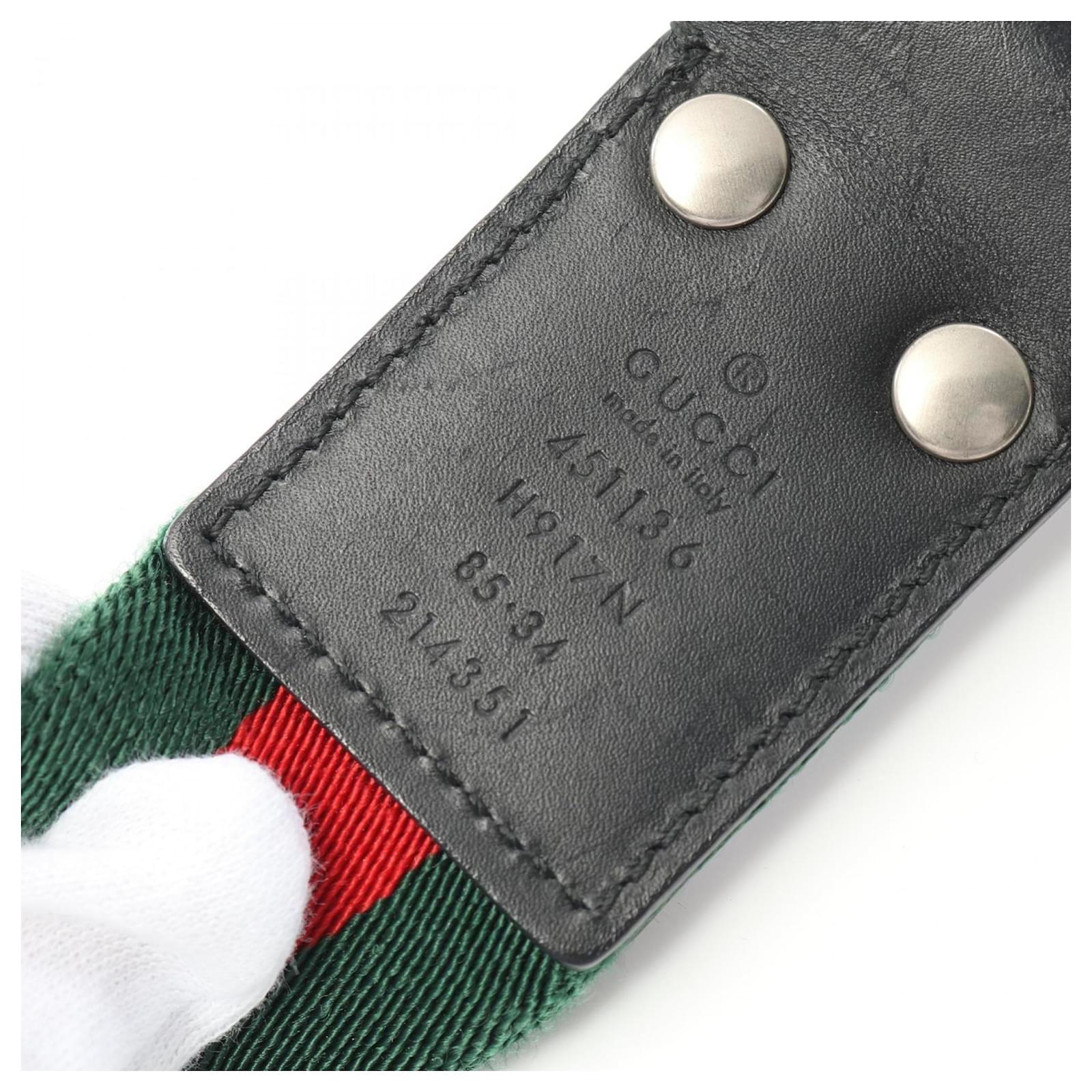 The Gucci Sherry Line Belt is a standard belt designed for women, featuring a combination of canvas and leather materials. It is available in a classic color palette of black, green, and red. The belt measures 104 cm (40.94 inches) in length. \n\nThis item is pre-owned and classified as being in very good condition, with a seller ranking of Rank A. While there are slight traces of use, including minor scratches and dirt, the overall appearance remains commendable. Potential buyers are encouraged to review the provided images for a detailed view of the item’s condition. No additional accessories are included with the belt.