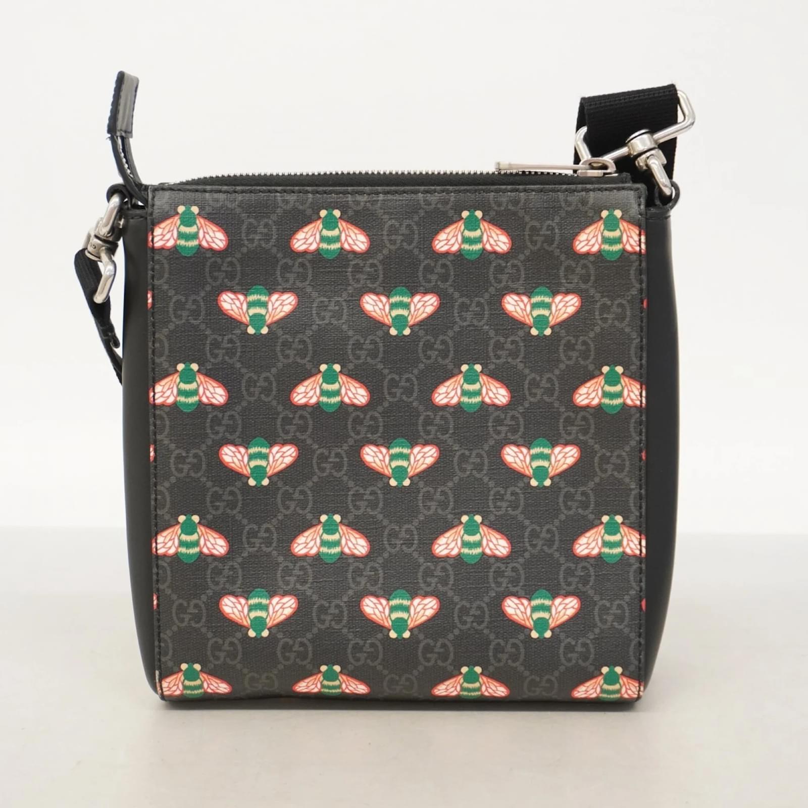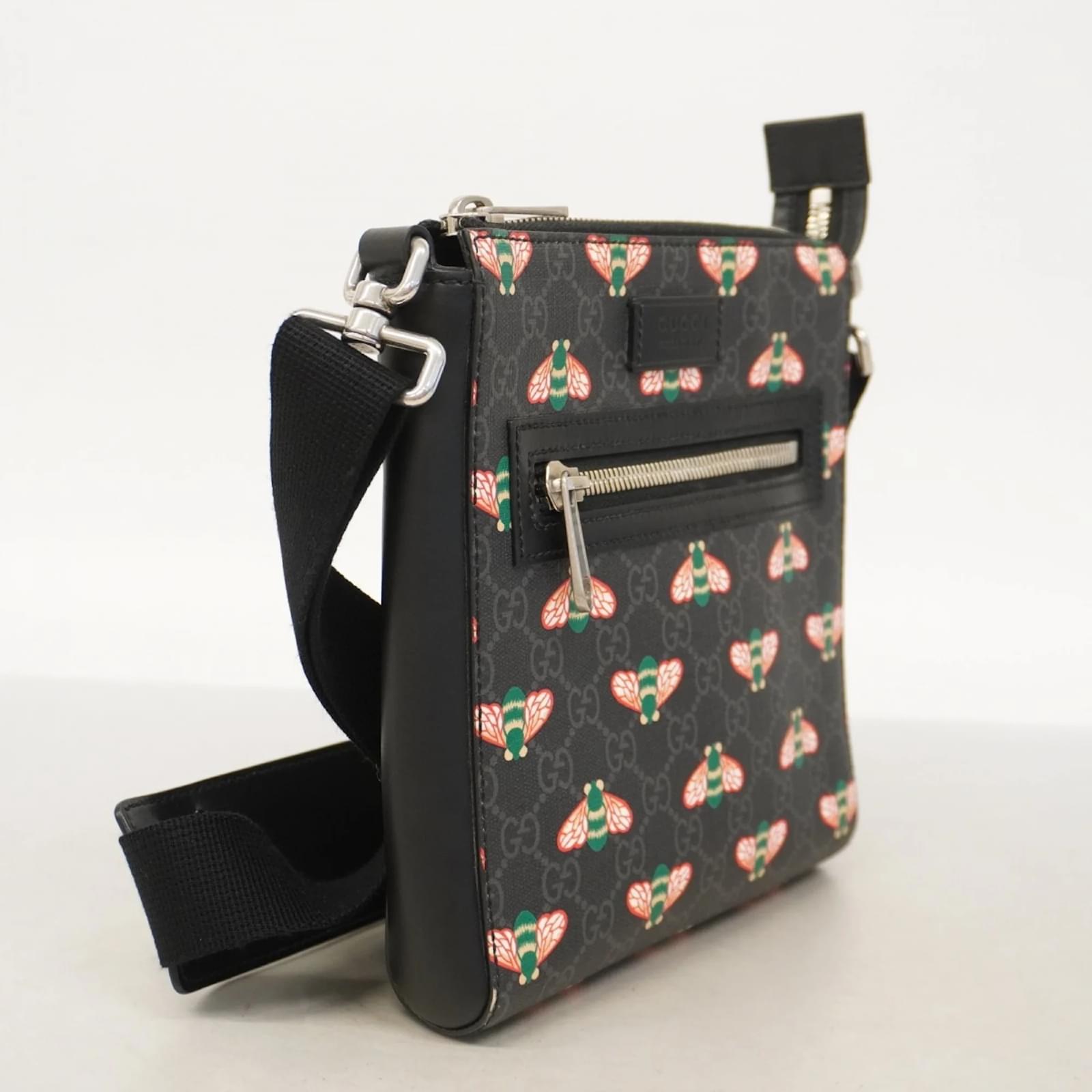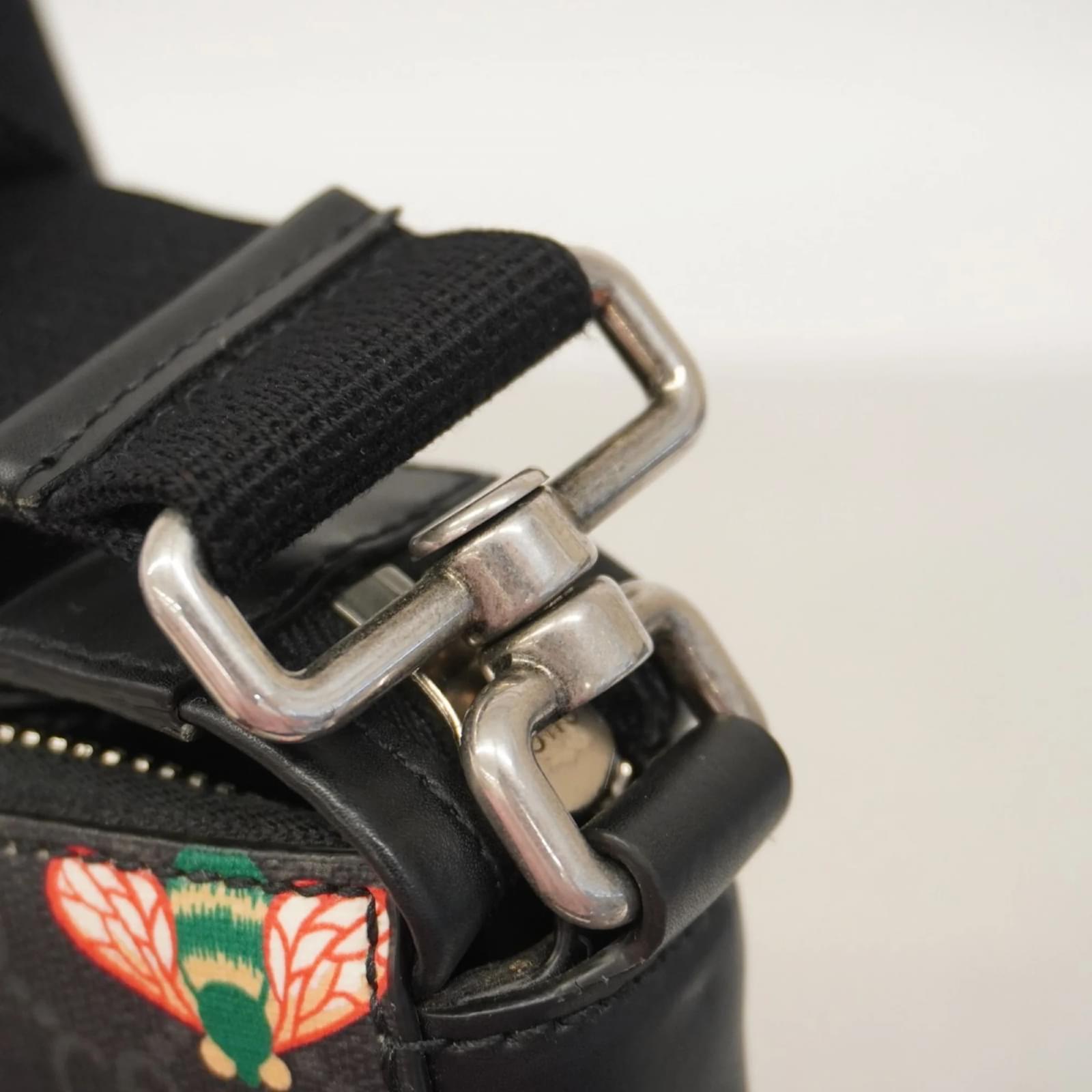 This Gucci shoulder bag features a striking black and multi-color design, crafted from durable PVC material. The bag is adorned with silver hardware, adding a touch of elegance to its overall look. Measuring 23cm in height, 20.5cm in width, and 4cm in depth, it is a practical accessory for daily use. \n\nThe bag is classified as used but remains in good condition, showing slight traces of usage, including minor scratches and dirt. It carries a seller ranking of Rank AB, indicating its overall quality. Potential buyers are encouraged to review the provided images for a detailed view of the item’s condition. No additional accessories are included with the purchase. \n\nThis item is part of the Gucci brand, known for its distinctive style and craftsmanship.