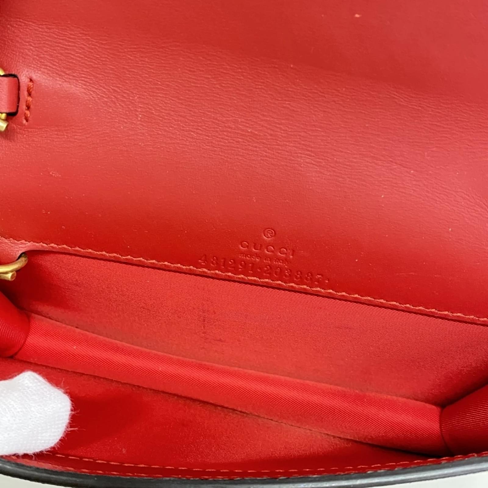 This Gucci shoulder bag features a stylish design in a combination of beige and red colors, complemented by gold hardware. Made from durable PVC, it measures 10.5cm in height, 16.5cm in width, and 3cm in depth. The bag is categorized as used but is in good condition, showing slight traces of use, scratches, and dirt. It comes with a box and a dust bag for storage. Potential buyers are encouraged to review the images for a detailed view of the item’s condition and included accessories.
