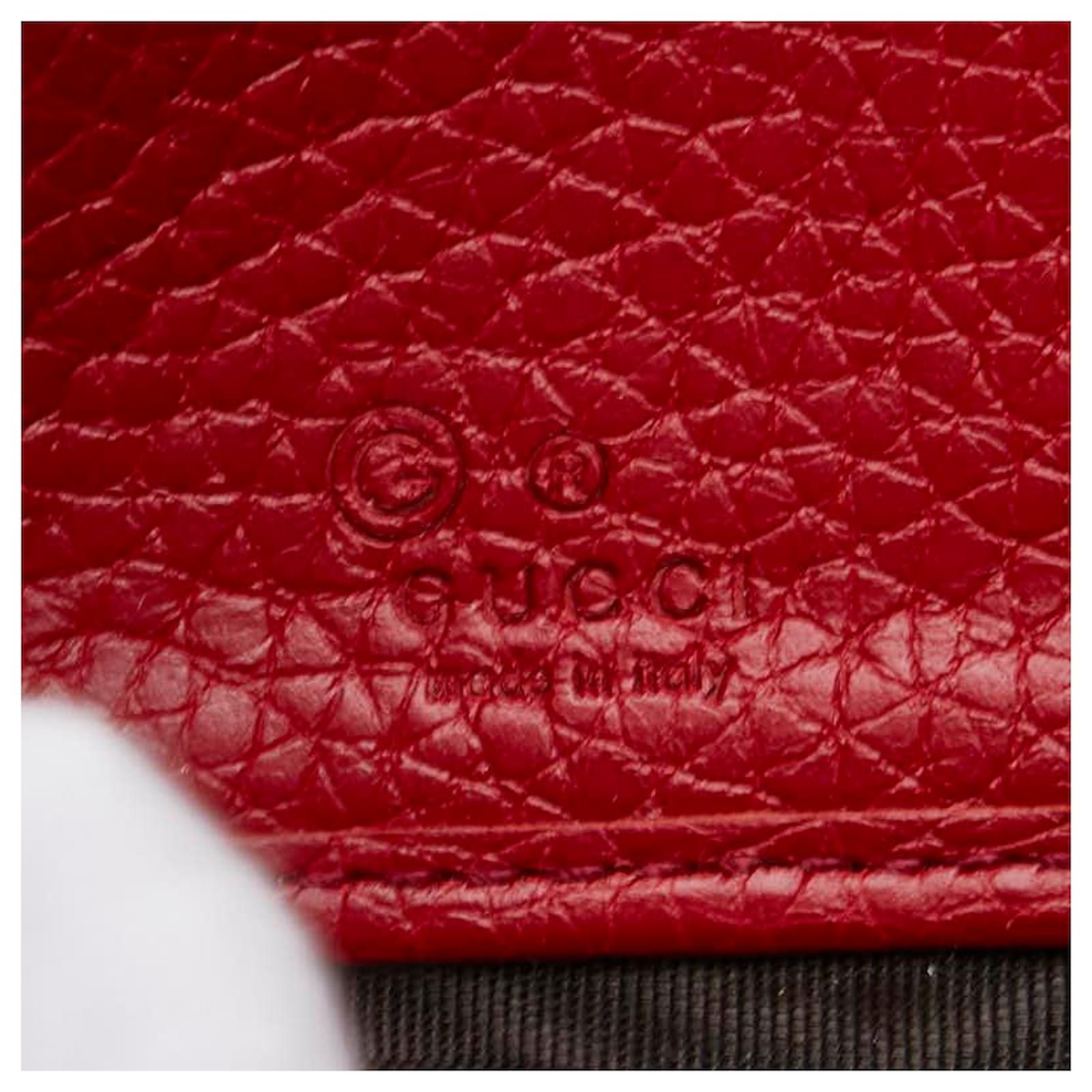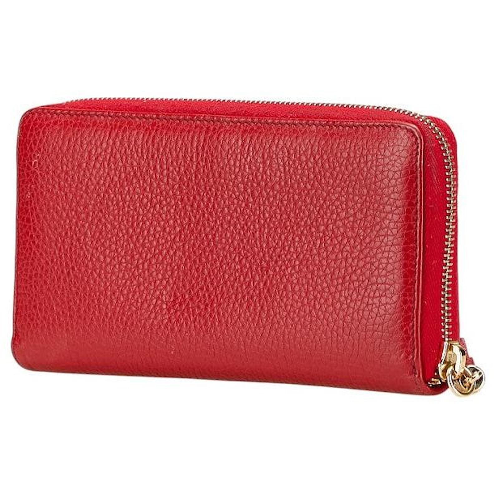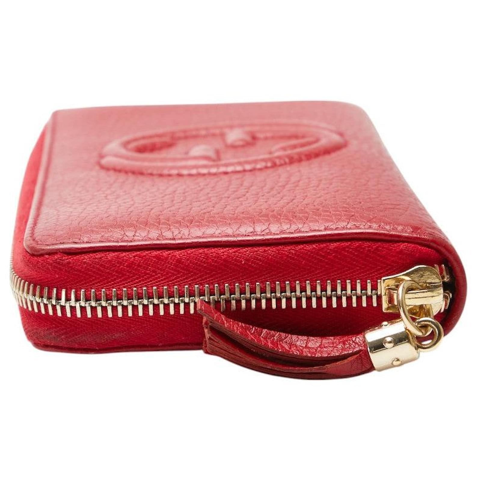 – General information -\nBrand : GucciItem name : Gucci Soho Interlocking G Leather Long WalletModel number : 598187 – Design -Type : Long WalletMaterial : LeatherColor : RedGender : Female- Size -Size : Item Material : LeatherItem Series : Soho Tassel Interlocking GItem Color : RedClosure Type : ZipperInterior : 12 card pockets, 3 bill compartments, coin pocketExterior : — Inventory -Serial Number : SKU : 120220008046000A0025798881- Included Items -Accessories : null*Before purchasing, please refer to the images of the accessories included with the item.- Condition -Condition : Very Good ConditionRank : Used A Used condition with some scratches and stains.Condition Notice : Before purchasing, please refer to the images for the exact condition of the item. Measurments: width: 1 mm length: 1 mm height: 1 mm strap length: 1 mm handle drop: 1 mm \n Product Id: 526751 \n
