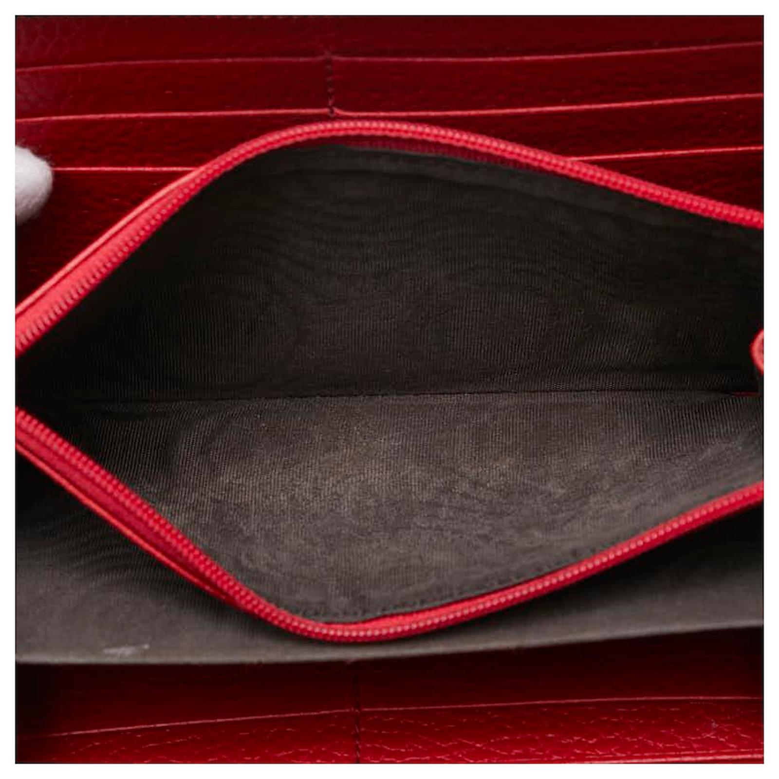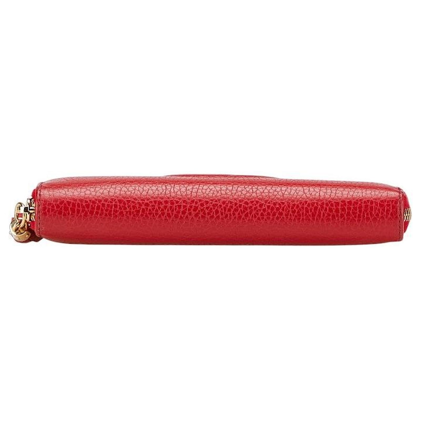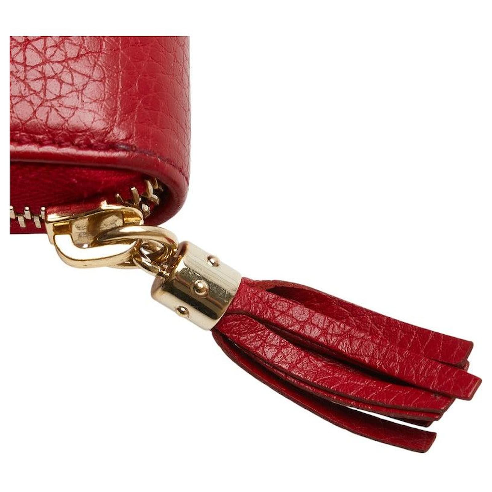 – General information -\nBrand : GucciItem name : Gucci Soho Interlocking G Leather Long WalletModel number : 598187 – Design -Type : Long WalletMaterial : LeatherColor : RedGender : Female- Size -Size : Item Material : LeatherItem Series : Soho Tassel Interlocking GItem Color : RedClosure Type : ZipperInterior : 12 card pockets, 3 bill compartments, coin pocketExterior : — Inventory -Serial Number : SKU : 120220008046000A0025798881- Included Items -Accessories : null*Before purchasing, please refer to the images of the accessories included with the item.- Condition -Condition : Very Good ConditionRank : Used A Used condition with some scratches and stains.Condition Notice : Before purchasing, please refer to the images for the exact condition of the item. Measurments: width: 1 mm length: 1 mm height: 1 mm strap length: 1 mm handle drop: 1 mm \n Product Id: 526751 \n