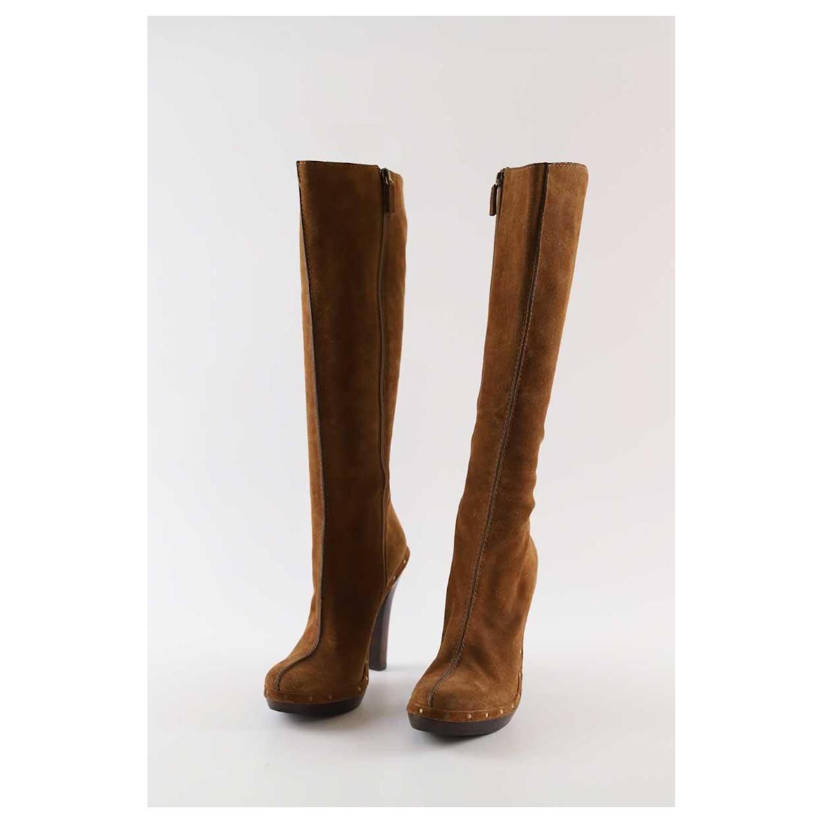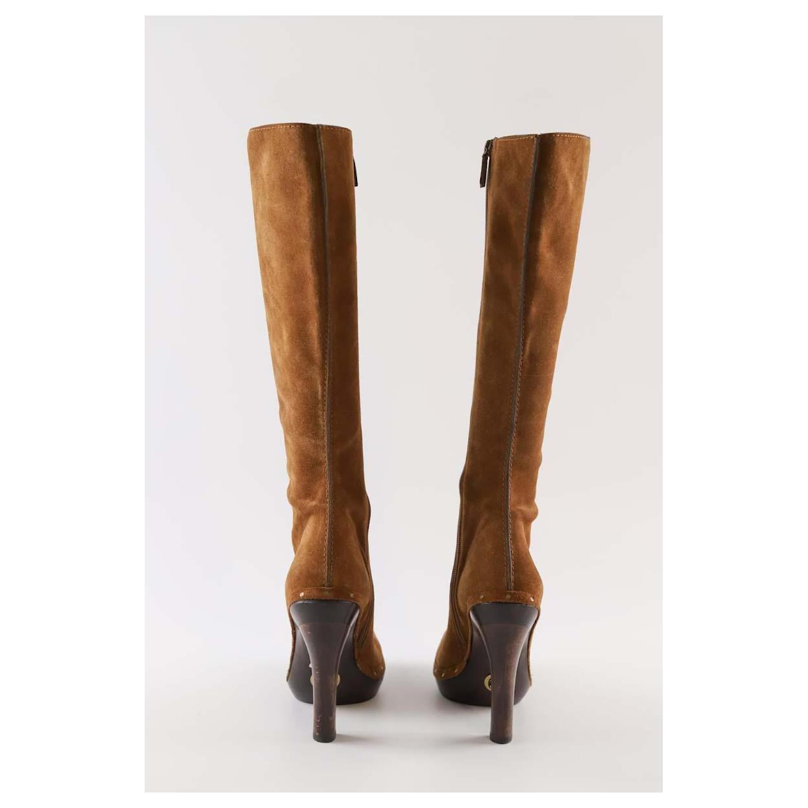 Second-hand brown Gucci boots. Main material suede. Size 35.5. Heel height: 11cm. Shaft: 47cm. Women’s Collection. Very Good Condition. Light signs of wear. Reference: 038260056.