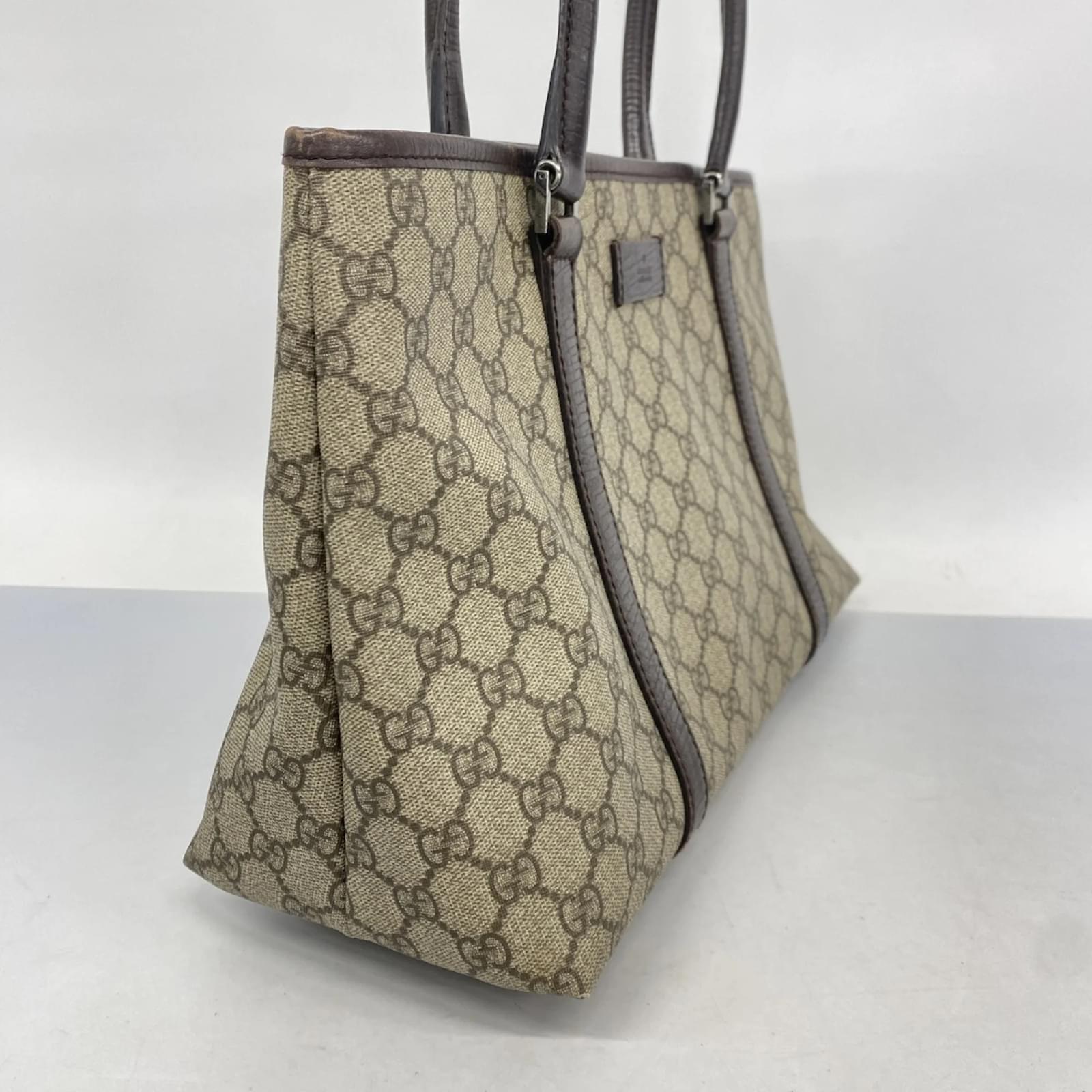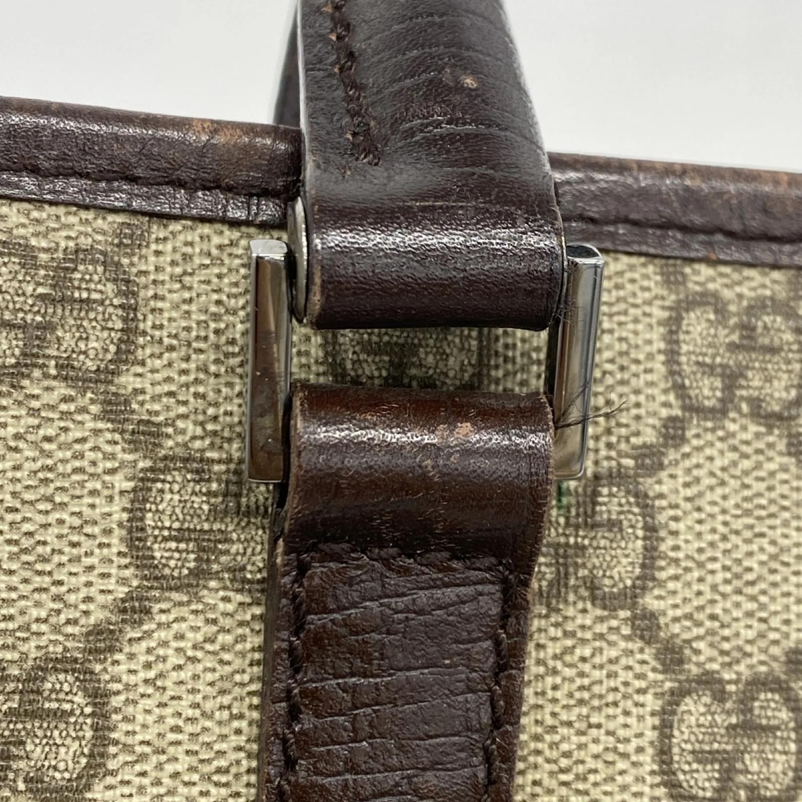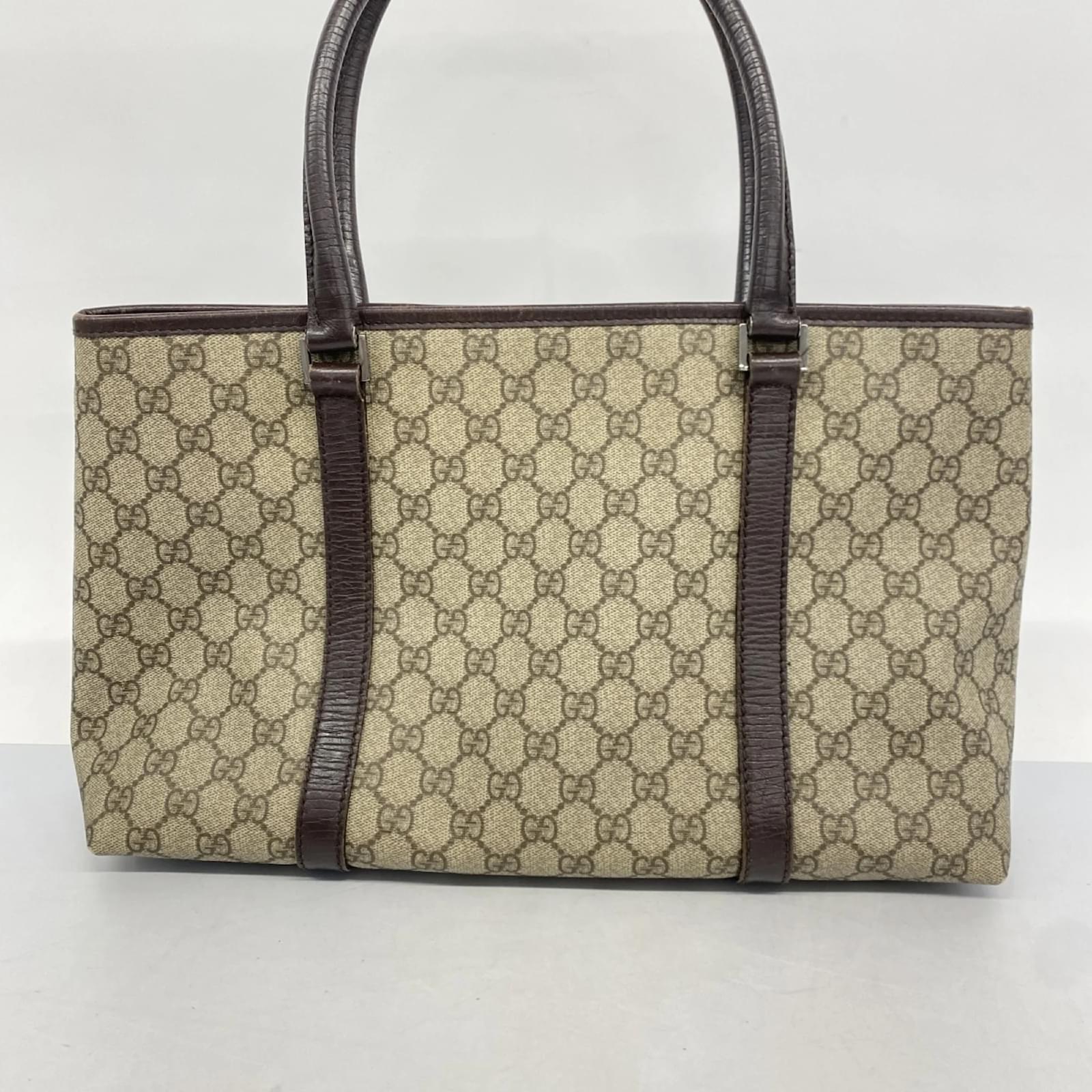 This Gucci tote bag features a classic brown color with silver hardware, crafted from durable PVC material. Measuring 25cm in height, 37cm in width, and 14cm in depth, it offers ample space for daily essentials. The bag is categorized as used but remains in good condition, showing slight traces of use, including minor scratches and dirt. It comes with a dust bag for protection. Potential buyers are encouraged to review the images for a detailed view of the item’s condition and included accessories.