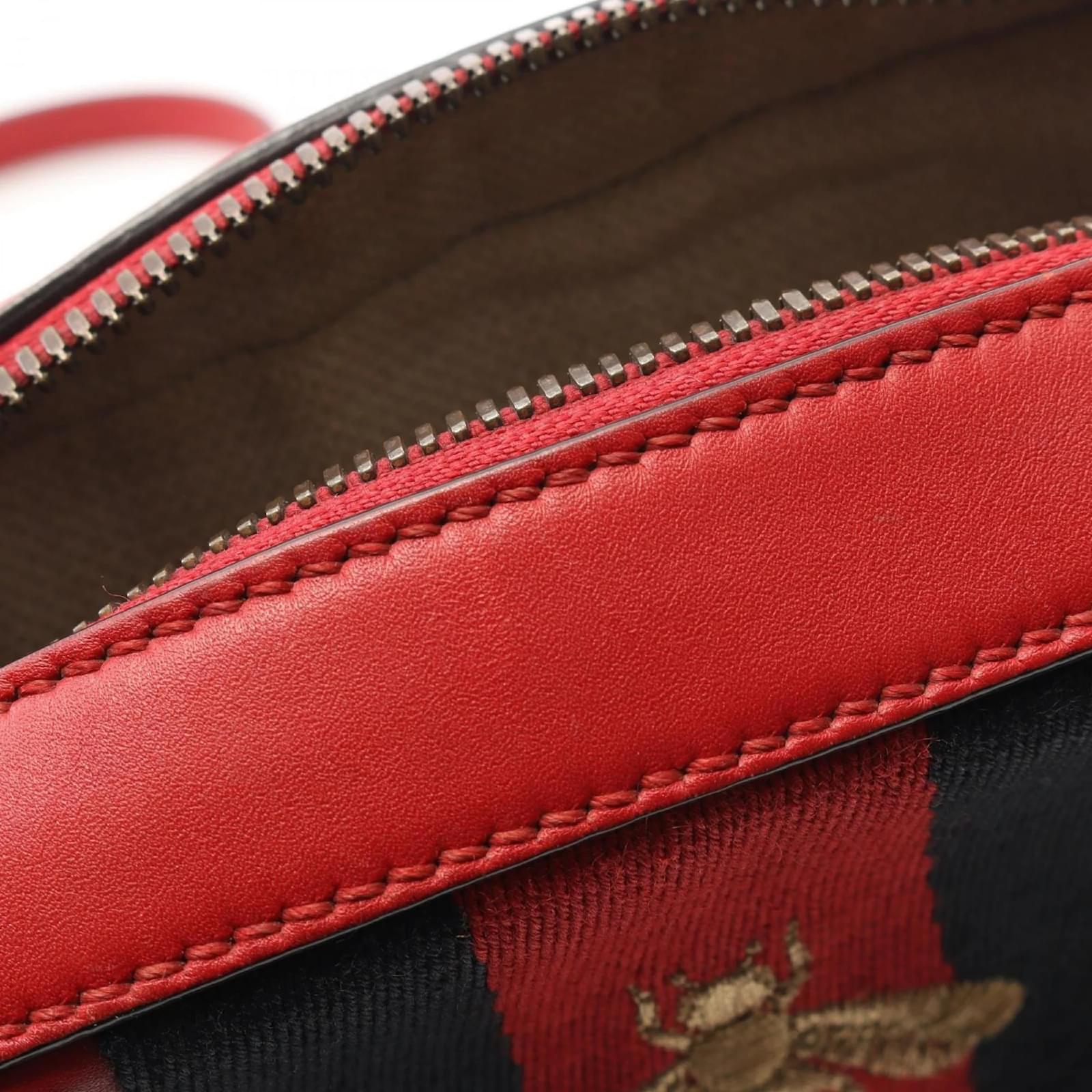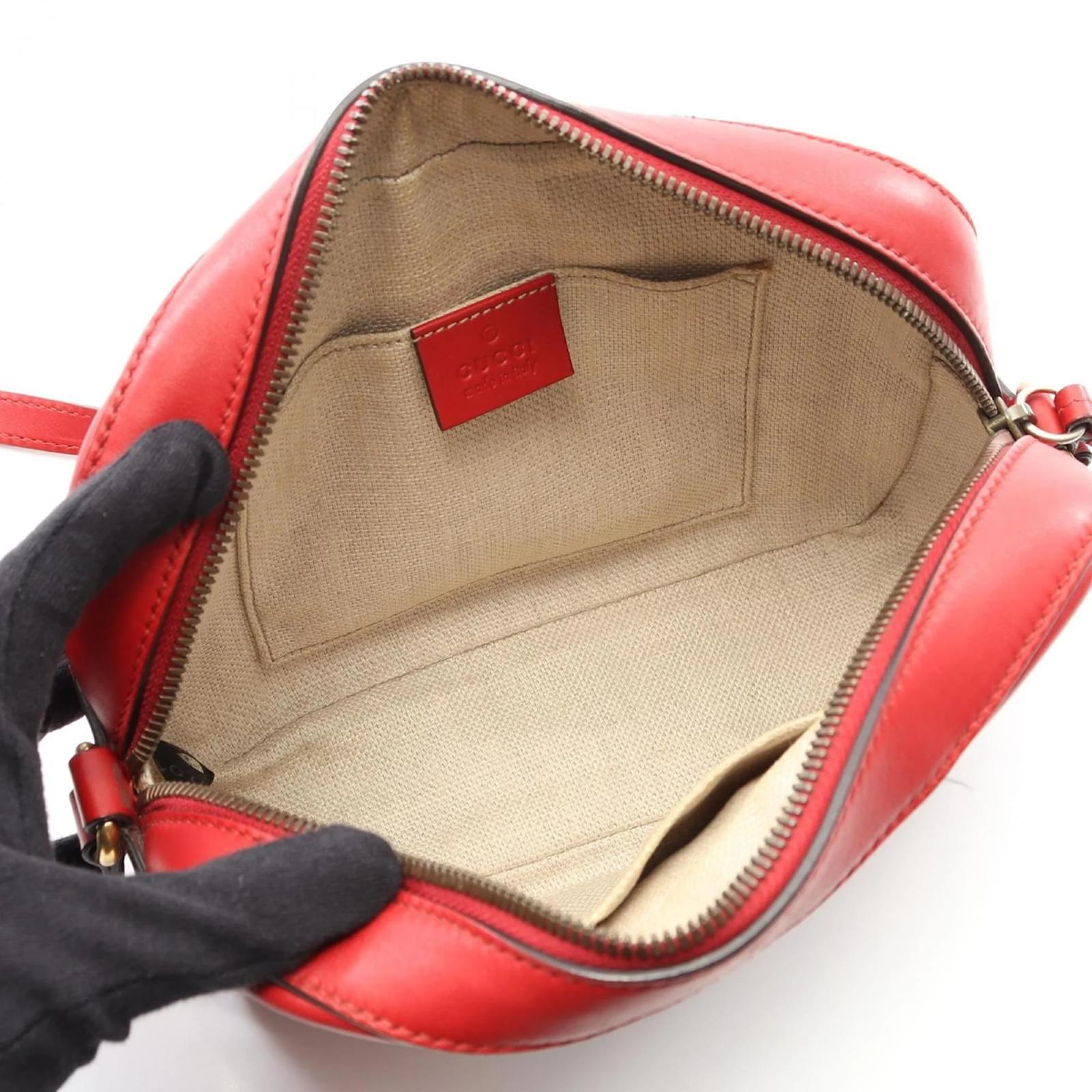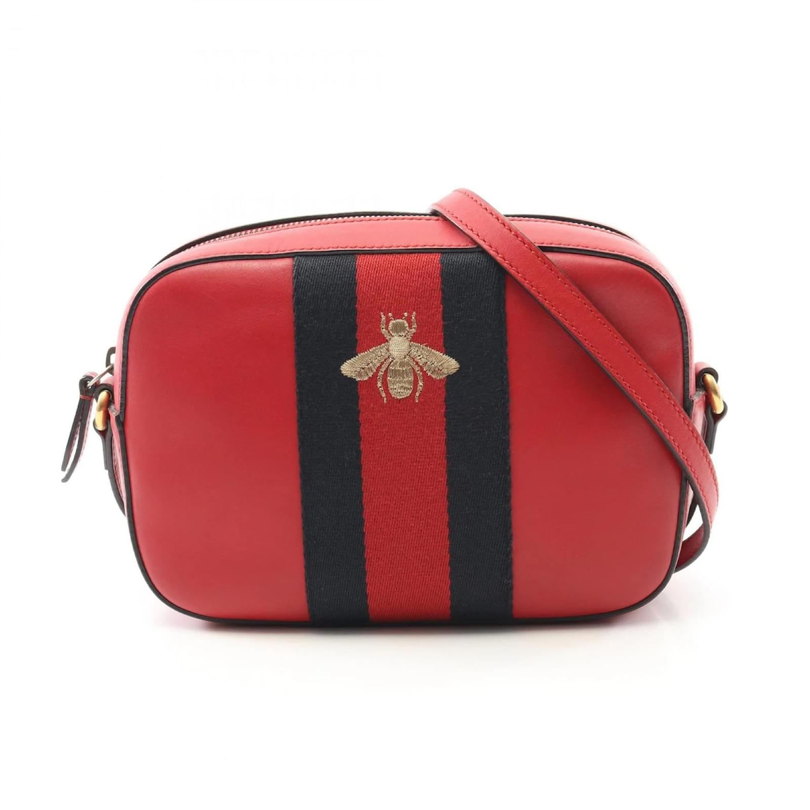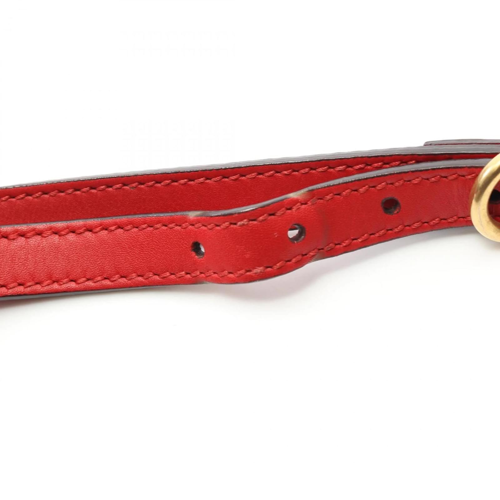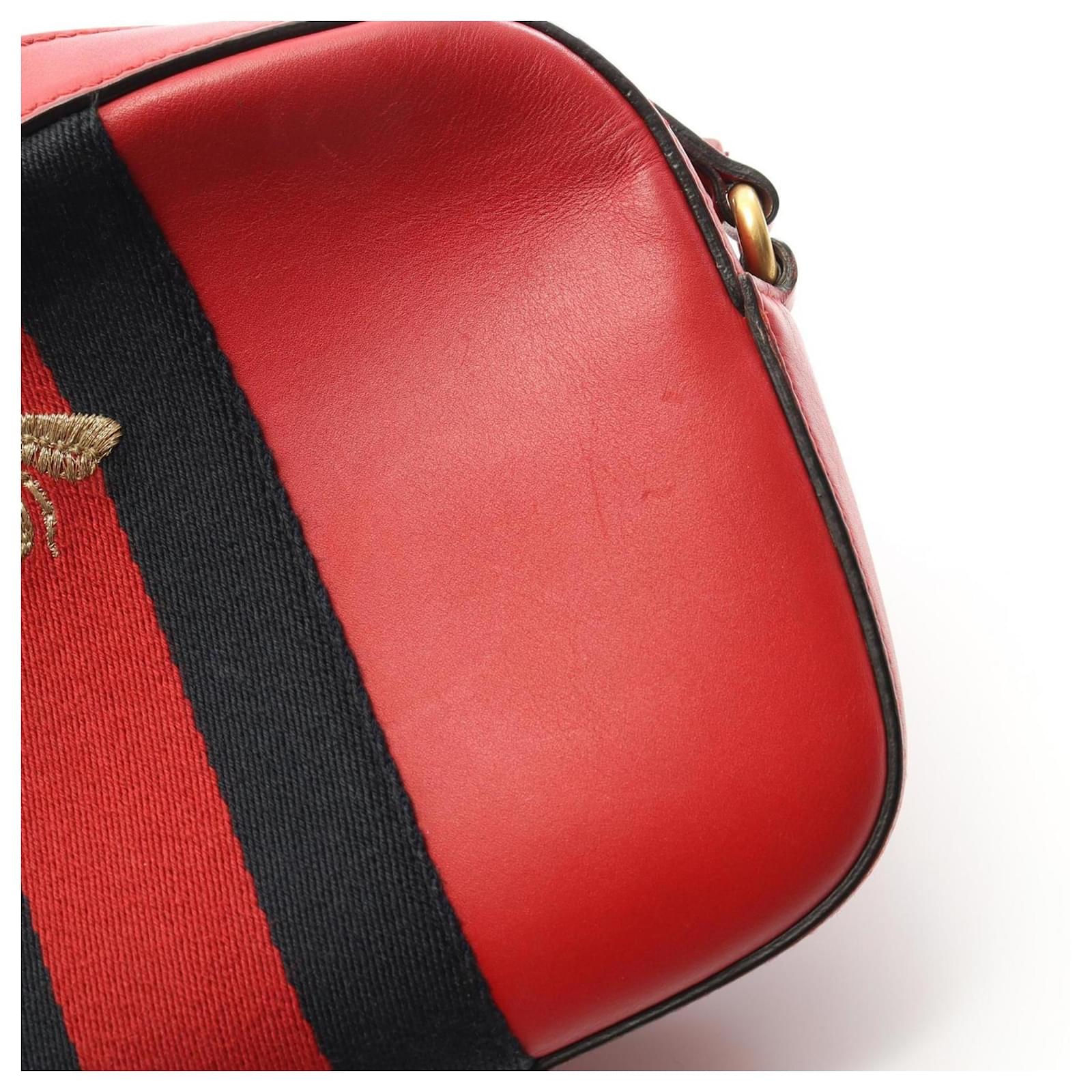 This Gucci shoulder bag features a stylish design in navy and red leather, measuring 16cm x 21cm x 6cm. The adjustable strap ranges from 118cm to 126cm, allowing for versatile wear. The bag is classified as used, with a condition ranking of B, indicating moderate traces of use, including scratches and dirt. It remains in acceptable condition for continued use. Potential buyers are encouraged to review the provided images for a detailed view of the item’s condition and included accessories. The serial number for this item is 498879.