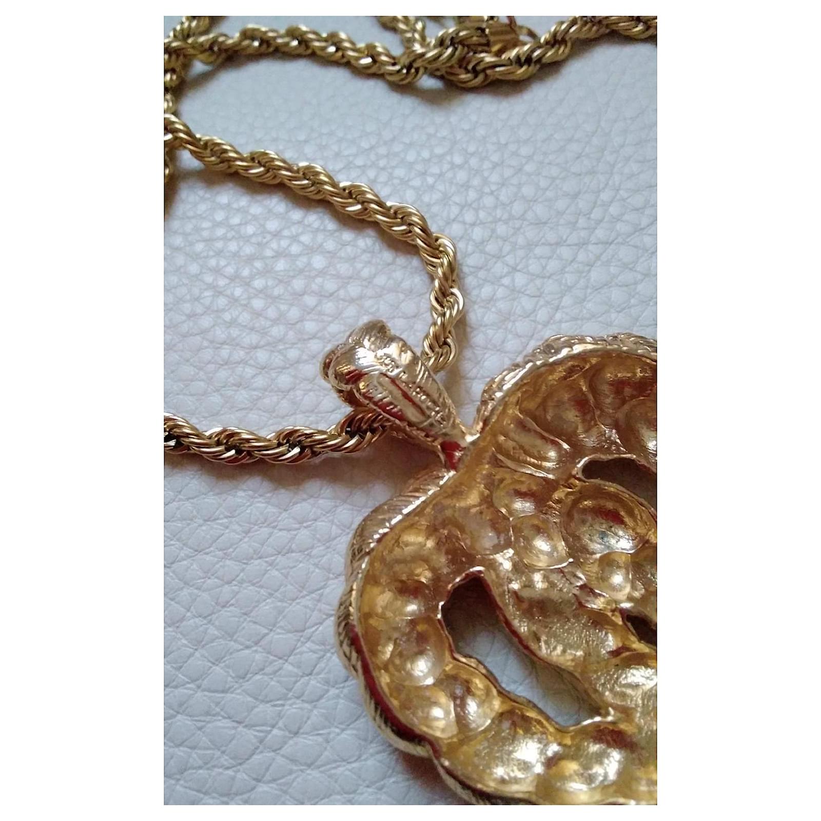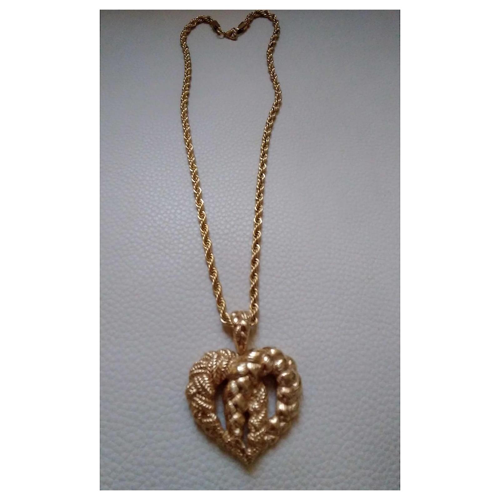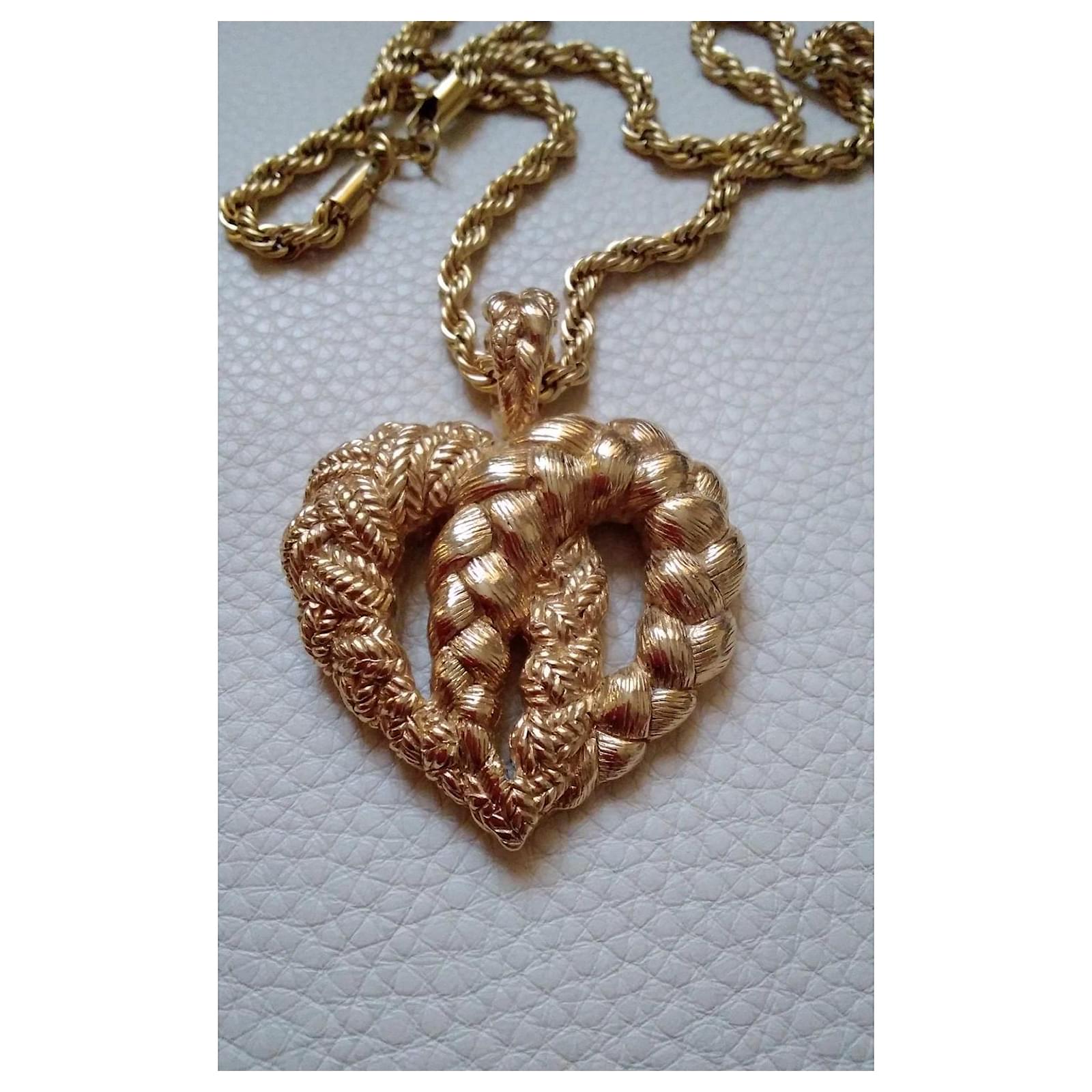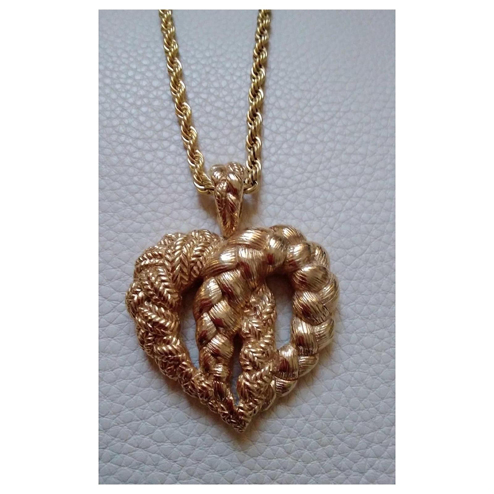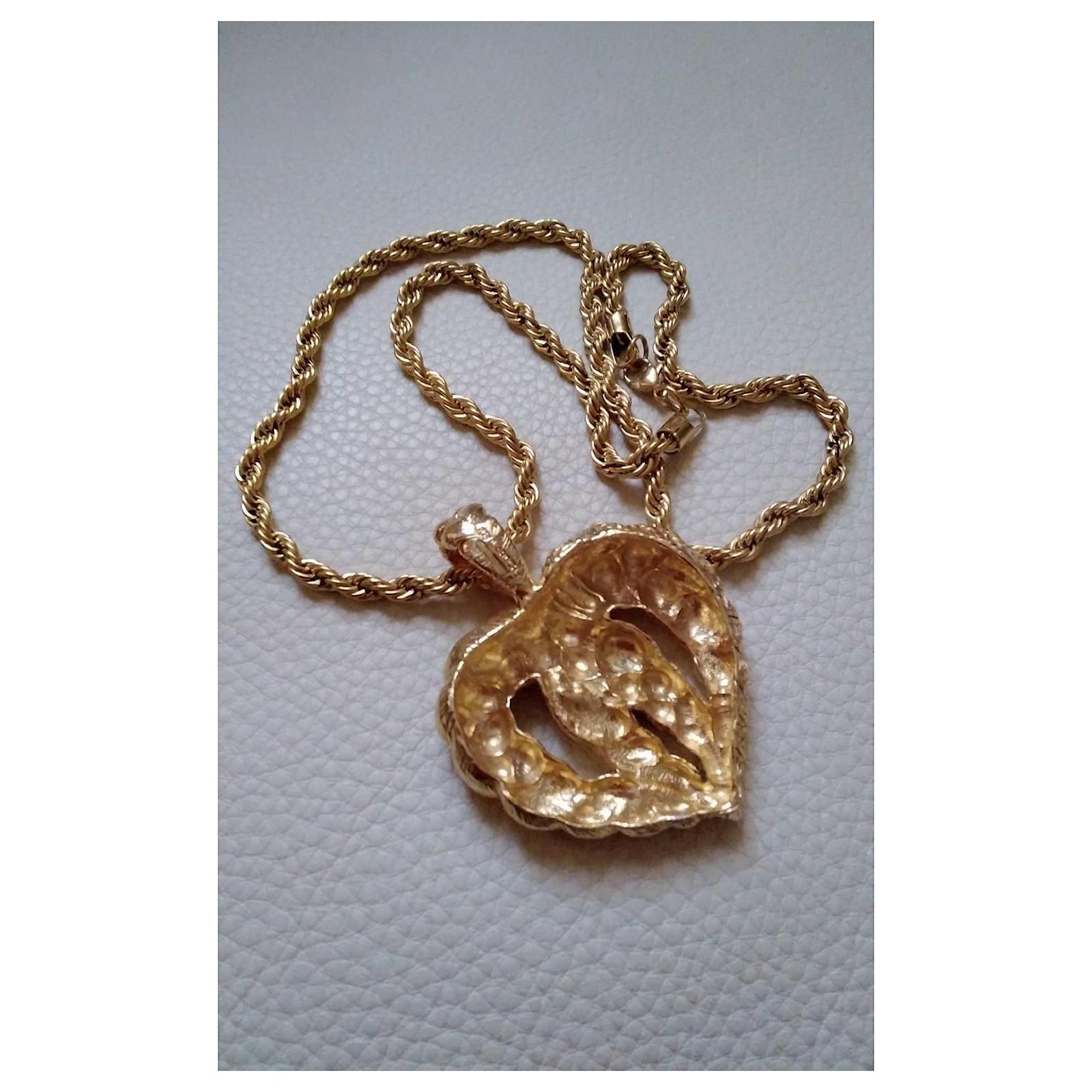 Guy Laroche Couture Vintage massive heart pendant metal plated gold tone. Signed jewelry.