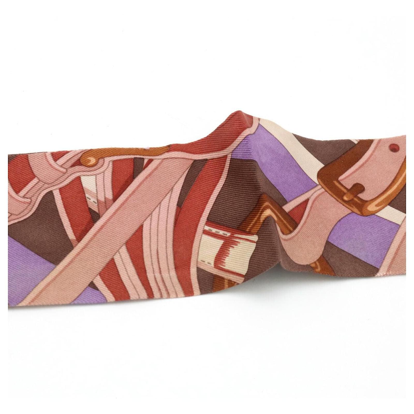 – General information -\nBrand : Hermes\nItem name : Hermes Silk Twilly Scarf Multicolor\nModel number :\n- Design -\nType : Scarf\nMaterial : Canvas\nColor : Multicolor\nGender : Female\n- Size -\nSize :\nDepth : 4.90\nLength : 86.00\nColor : Mauve/Blue/Brown/Multi-color\nMaterial : 100% Silk\n- Inventory -\nSerial Number : null\nSKU : 120250000216270A0025500771\n- Included Items -\nAccessories : null\n*Before purchasing, please refer to the images of the accessories included with the item.\n- Condition -\nCondition : Very Good Condition\nRank : Used A Used condition with some scratches and stains.\nCondition Notice : Before purchasing, please refer to the images for the exact condition of the item.