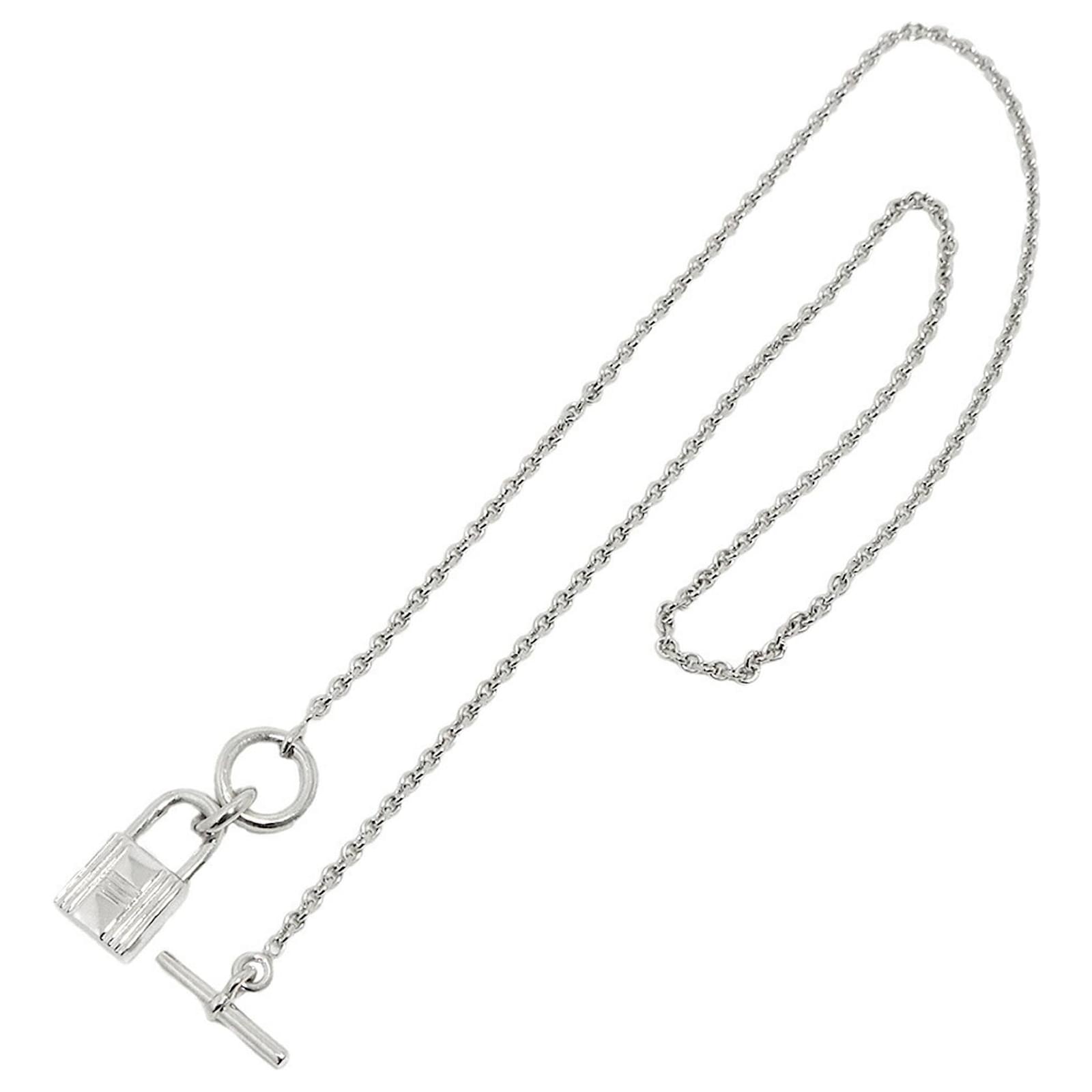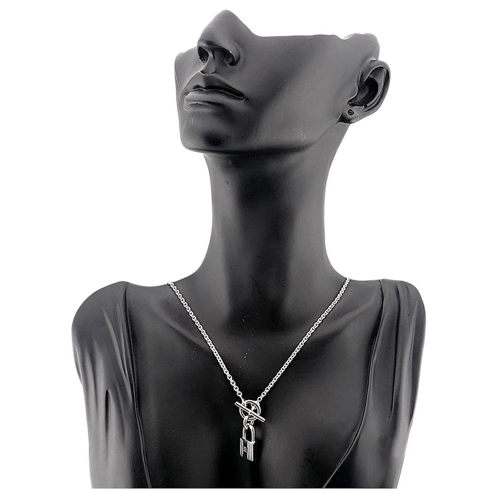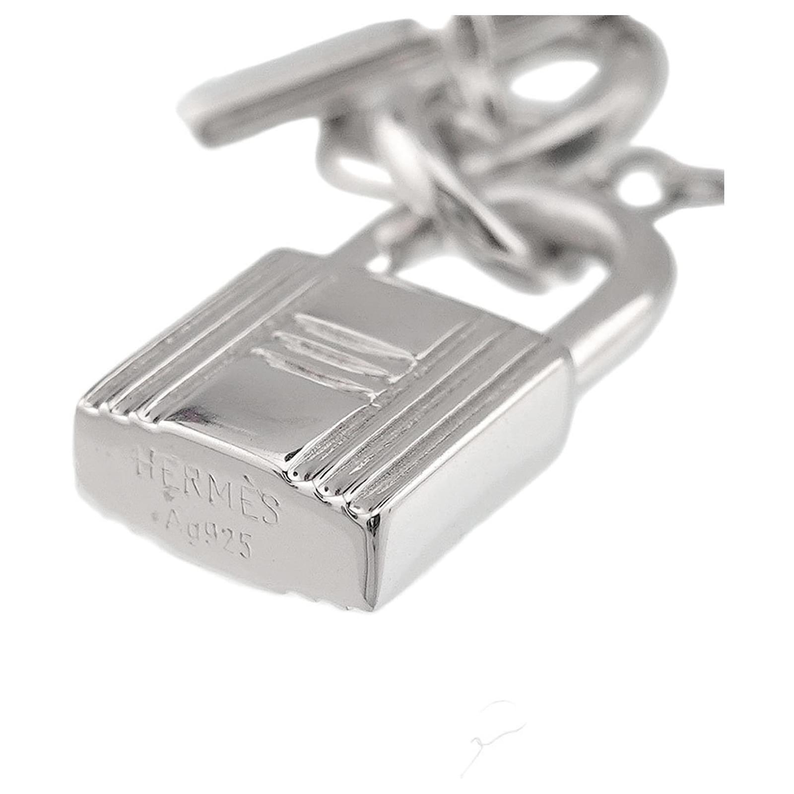 The Hermes Amulet Necklace is crafted from Silver 925 and features a pendant measuring 18.6mm x 10mm (0.73” x 0.39”). It has a neck circumference of 40 cm (15.74”) and is presented in a used condition, classified as \”like new\” with insignificant traces of use. The item has been polished and shows minimal signs of wear, making it a desirable choice for those seeking a refined accessory. Please note that no additional accessories are included, and potential buyers are encouraged to review the provided images for a clear understanding of the item’s condition.