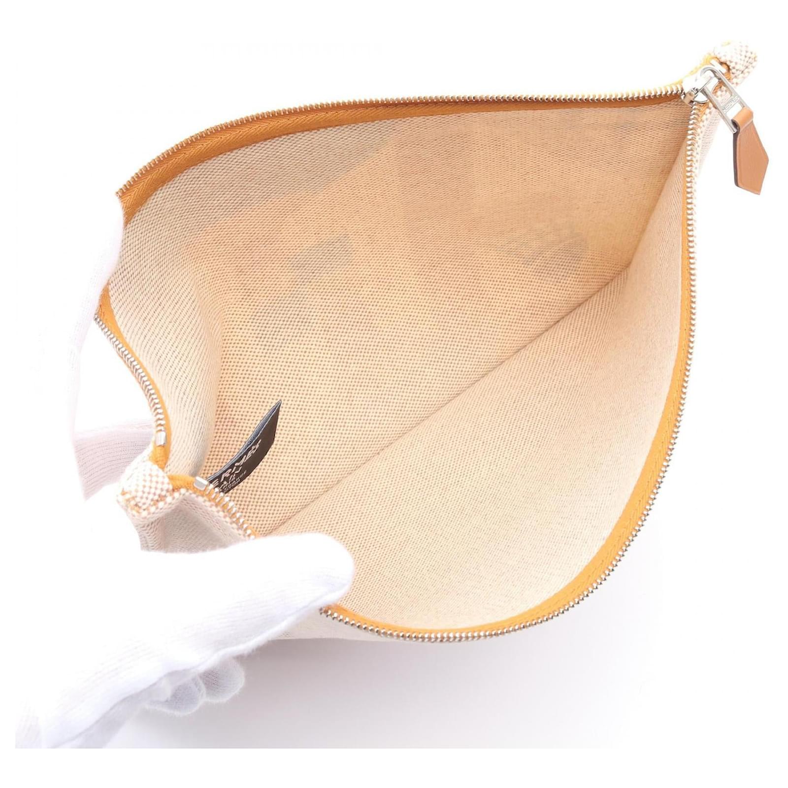 Brand Name: Hermes; Condition: Very Good; Category: Bag; SubCategory: Makeup Bag; Product Name: Hermes Balles au Bond Leather Pouch; Style: Ladies; Height (cm): 19; Length (cm): 28; Color: White; Material: Togo Leather; Origin: France; Measurments: length: 280 mm height: 190 mm \n Product Id: 523776 \n