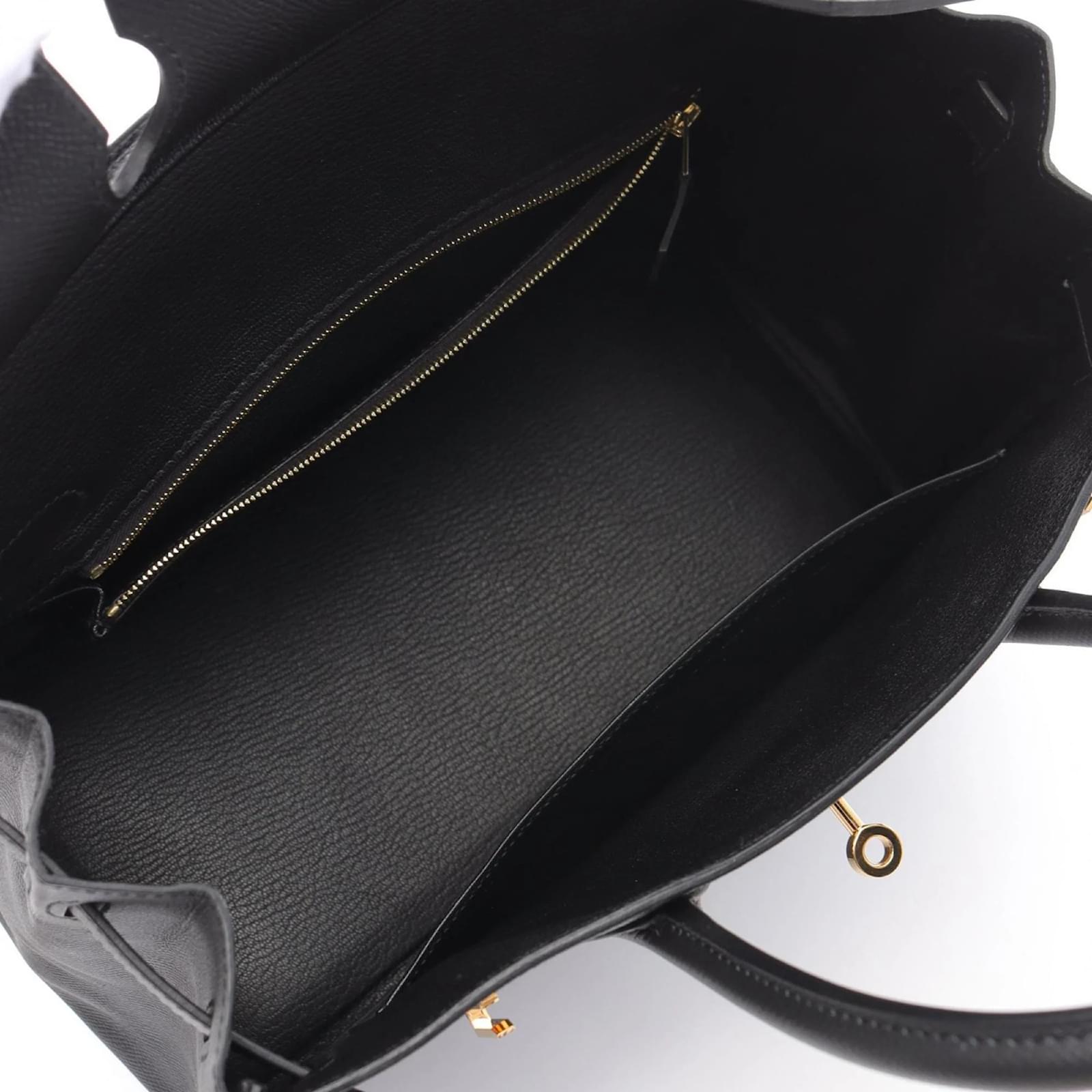 The Hermes Birkin 30 Handbag is a stylish accessory crafted from Epsom leather in a classic black color, complemented by gold hardware. This handbag measures 24cm in height, 30cm in width, and 15cm in depth, with a handle length of 33cm. \n\nThis item is pre-owned and is classified as being in good condition, with slight traces of use, including minor scratches and dirt. It is important to review the provided images for a detailed view of the handbag’s condition. \n\nIncluded with the handbag are a clochette, key, padlock, and rain cover, ensuring that you have all the necessary accessories. This piece is part of the esteemed Hermes brand and belongs to the iconic Birkin line.