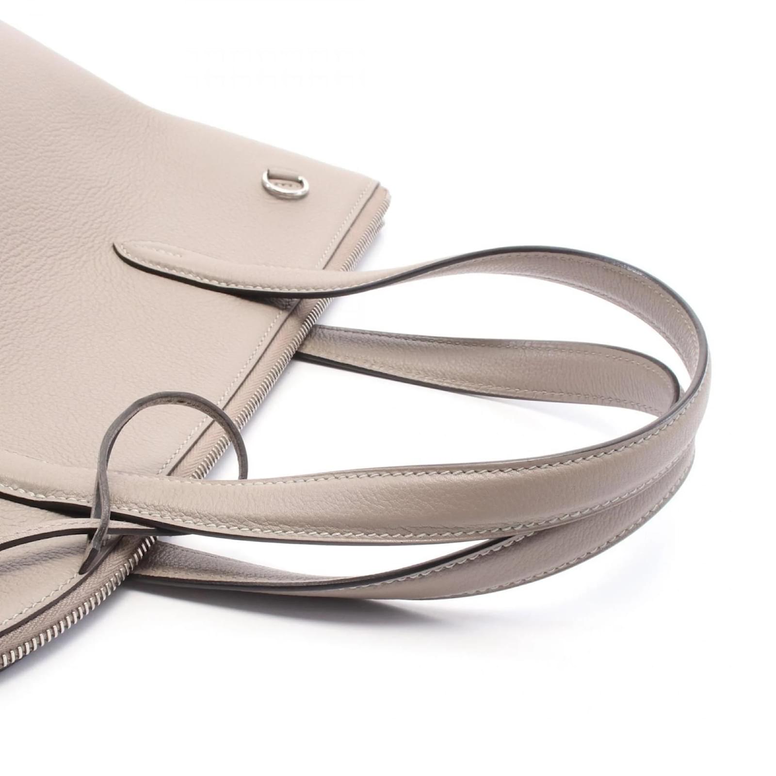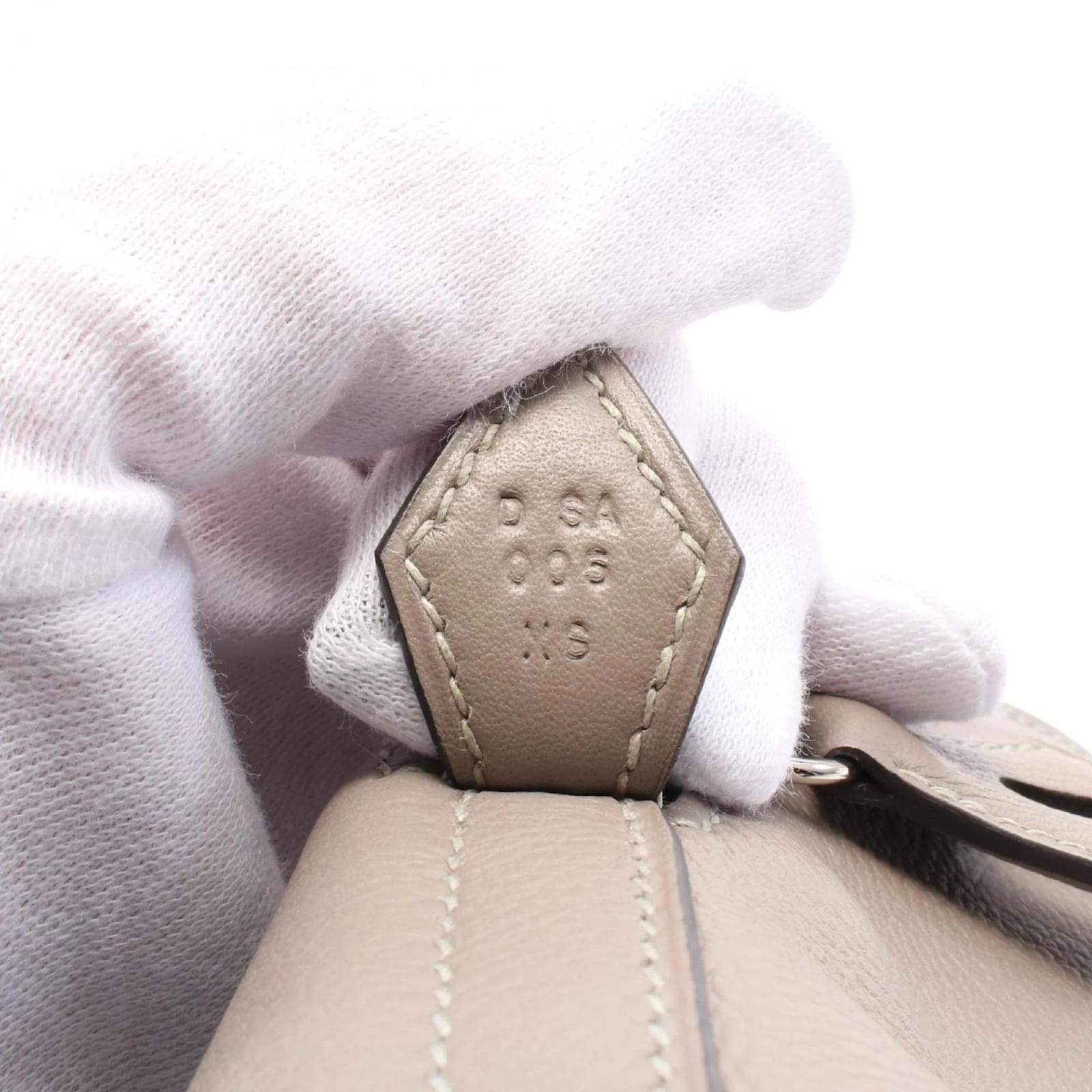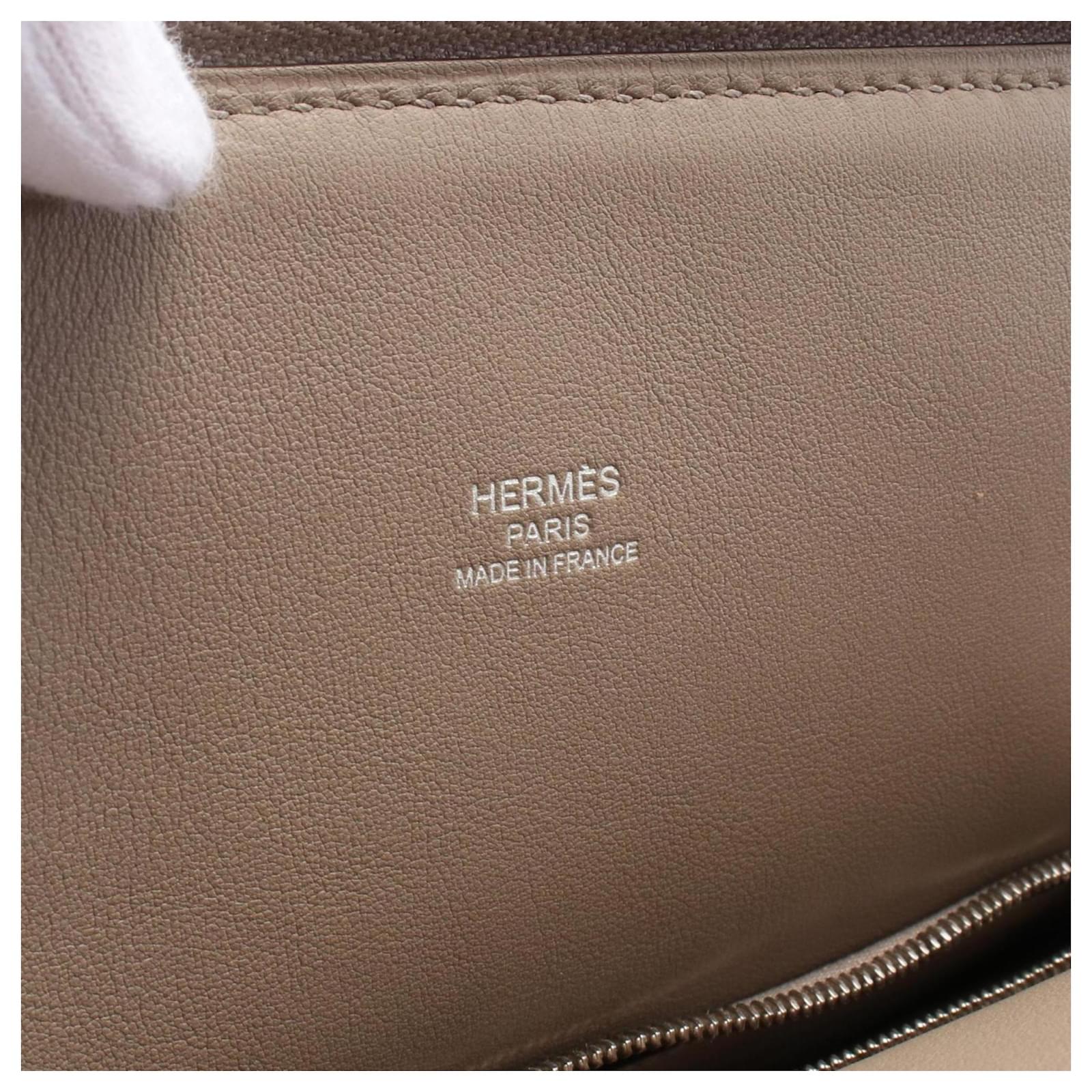 The Hermes HERMES Transat Handbag is crafted from leather in a rich brown color, complemented by silver hardware. This handbag measures 28cm in height, 25cm in width, and 14cm in depth, with a handle length of 40cm. It is a pre-owned item in good condition, showing slight traces of use, including minor scratches and dirt. The handbag comes with a serial number, DSA006XS, and potential buyers are encouraged to review the images for a detailed view of its condition and included accessories.