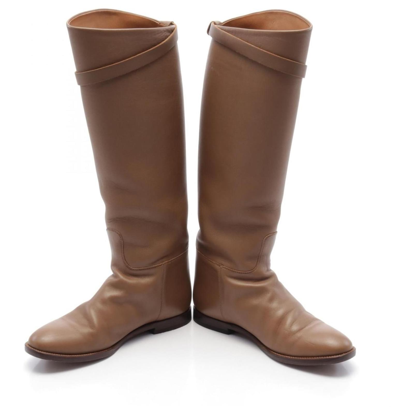 – General information – Brand : HermesItem name : Hermes Jumping Kelly Leather BootsModel number : – Design -Type : ShoesMaterial : LeatherColor : BrownGender : Female- Size -Size : Shoe size(JP) : 37.5Shaft height : 39Material : leatherColor : brown- Inventory -Serial Number : SKU : 120250002282250A0025566717- Included Items -Accessories : Dust Bag*Before purchasing, please refer to the images of the accessories included with the item.- Condition -Condition : Good ConditionRank : Used A Used condition with obviously scratches and stains.Condition Notice : Before purchasing, please refer to the images for the exact condition of the item.