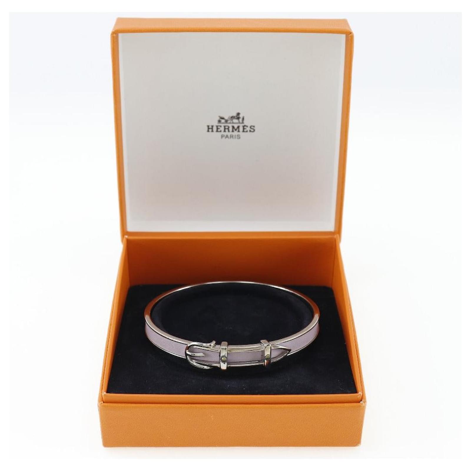 – General information -\nBrand : Hermes\nItem name : Hermes Metal Bangle Bracelet\nModel number :\n- Design -\nType : Bangle\nMaterial : Metal\nColor : Silver\nGender : Female\n- Size -\nSize :\nWeight : 21.2\nSize : 19.0\n- Inventory -\nSerial Number : null\nSKU : 120240000537300A0025504342\n- Included Items -\nAccessories : null\n*Before purchasing, please refer to the images of the accessories included with the item.\n- Condition -\nCondition : Good Condition\nRank : Used A Used condition with obviously scratches and stains.\nCondition Notice : Before purchasing, please refer to the images for the exact condition of the item.