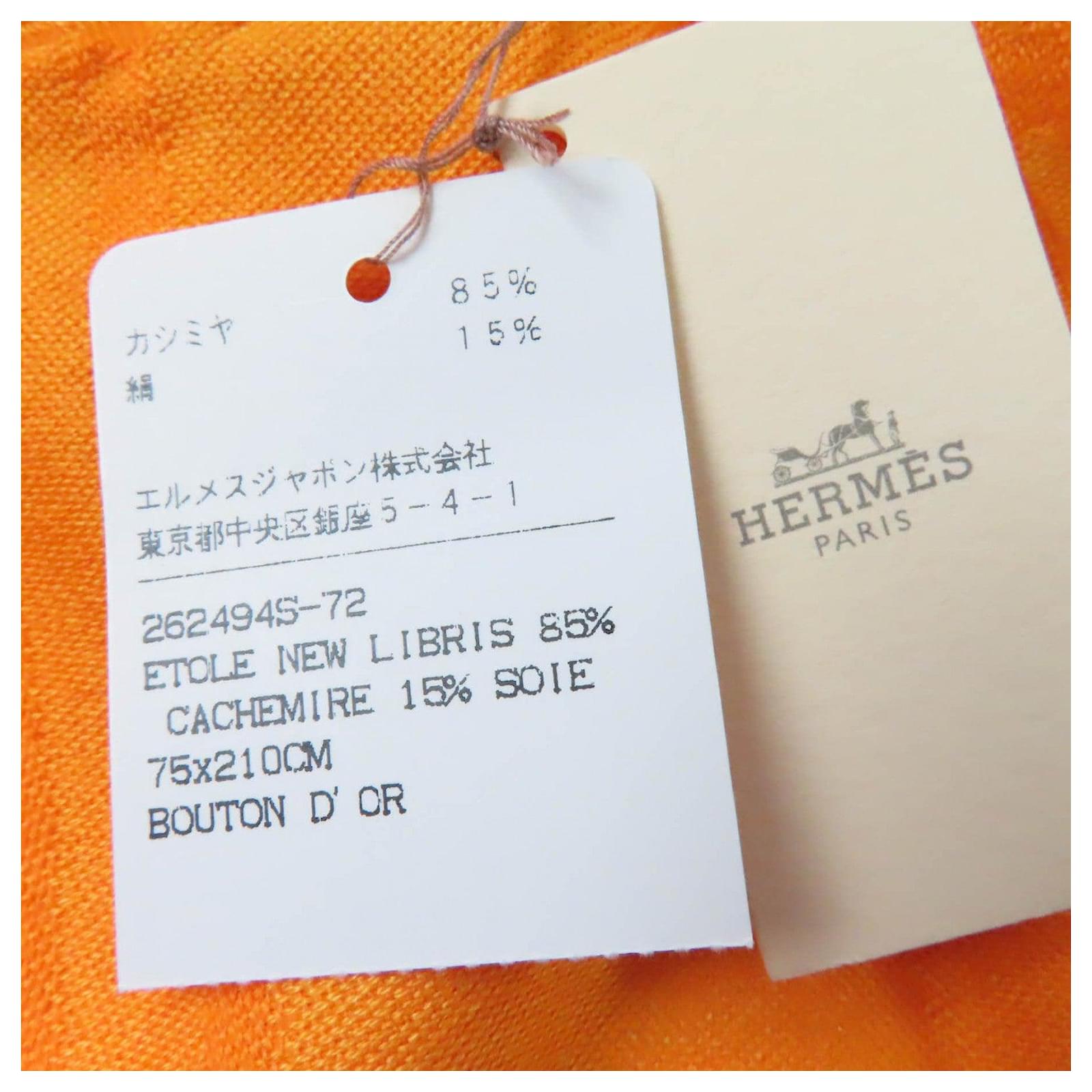 – General information – Brand : Hermes Item name : Hermes New Libris Cashmere Silk Shawl Model number : H262494S – Design – Type : Shawl Material : Canvas Color : Orange Gender : Female – Size – Size : Depth : 73.00 Length : 204.00 Color : Orange Material : Cashmere 85%, Silk 15% – Inventory – Serial Number : null SKU : 120250001452000A0025473692 – Included Items – Accessories : null *Before purchasing, please refer to the images of the accessories included with the item. – Condition – Condition : Pristine Condition Rank : Used A Unused. Storefront display. Condition Notice : Before purchasing, please refer to the images for the exact condition of the item.