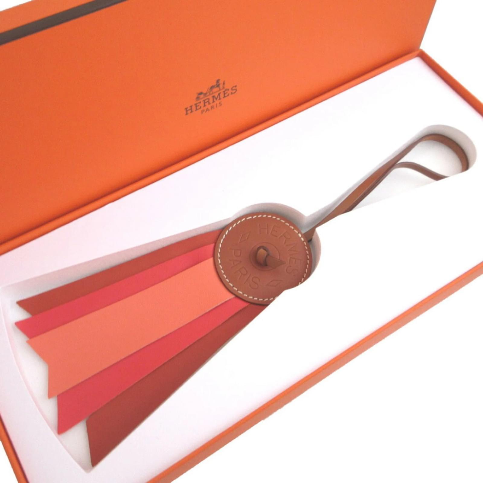 This Hermes keyring, model number 064271CA-AH, features a design crafted from Agneau Milo leather in a Capucine color. Measuring 27cm x 8cm (10.62” x 3.14”), it is an elegant accessory that showcases the brand’s commitment to quality. \n\nThe keyring is in opened but never used condition, classified as Rank N, indicating it has been a display item with insignificant traces of use, scratches, or dirt. It comes with its original box, and potential buyers are encouraged to review the provided images for a detailed view of the item and its accessories. \n\nManufactured in France, this keyring reflects the luxury and craftsmanship associated with the Hermes brand.