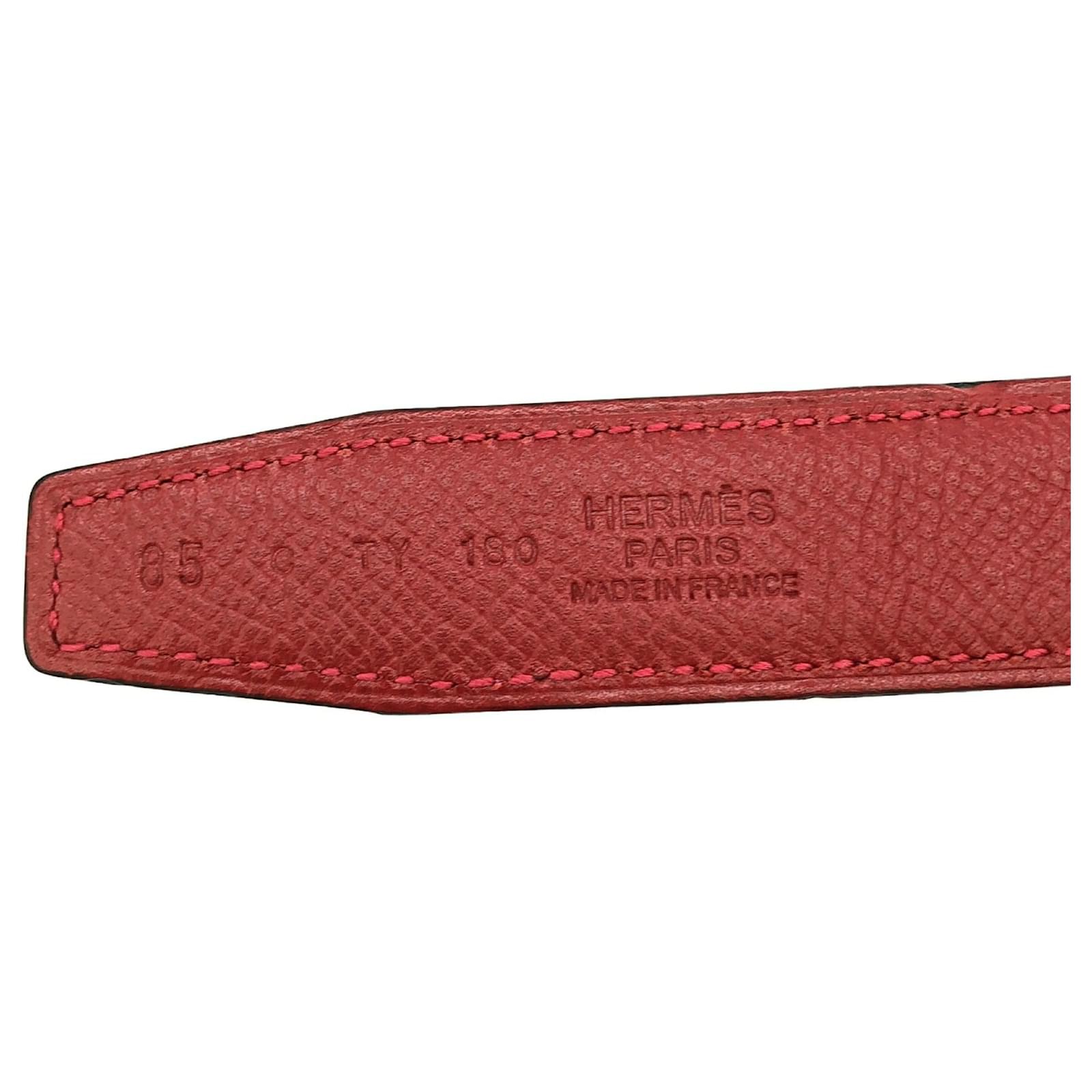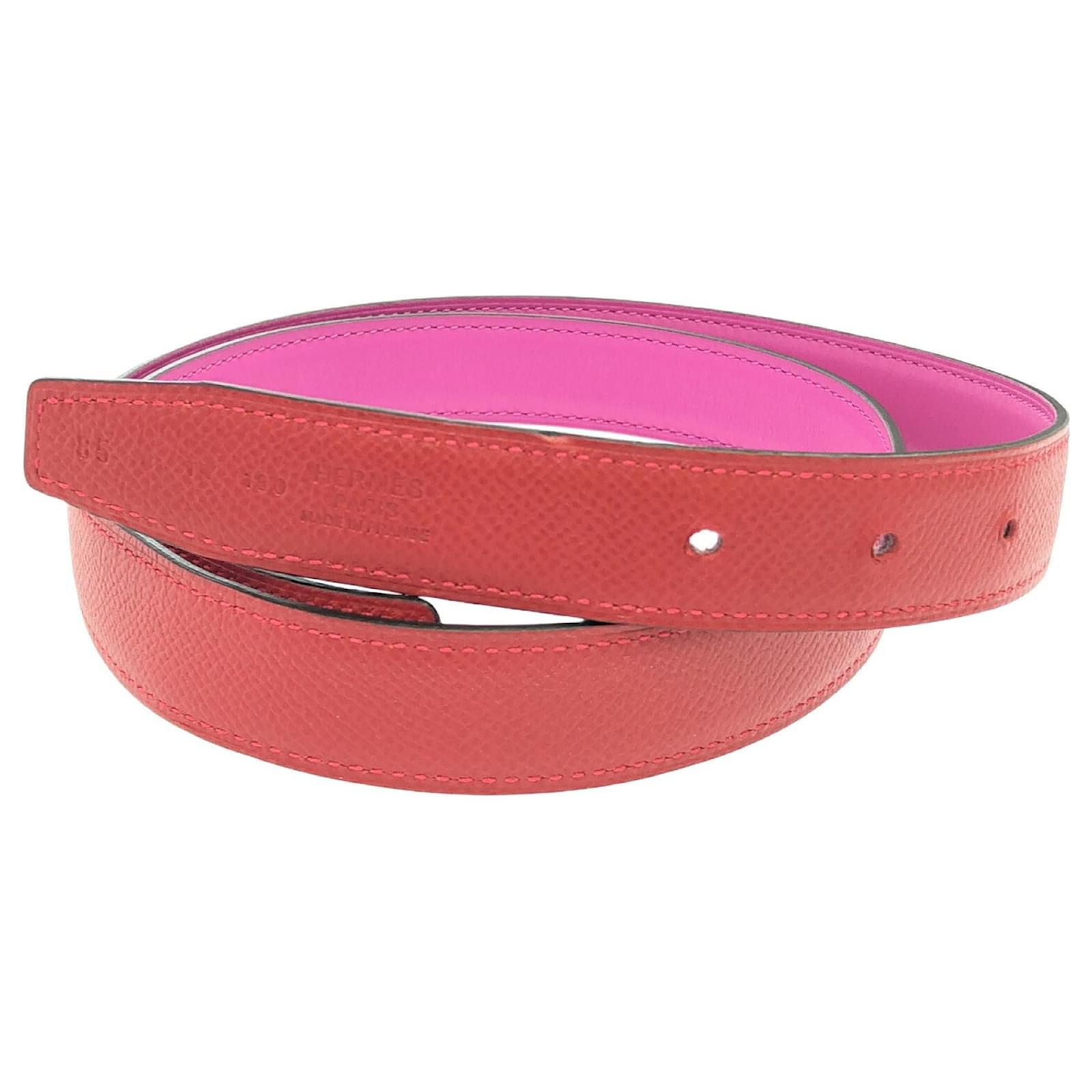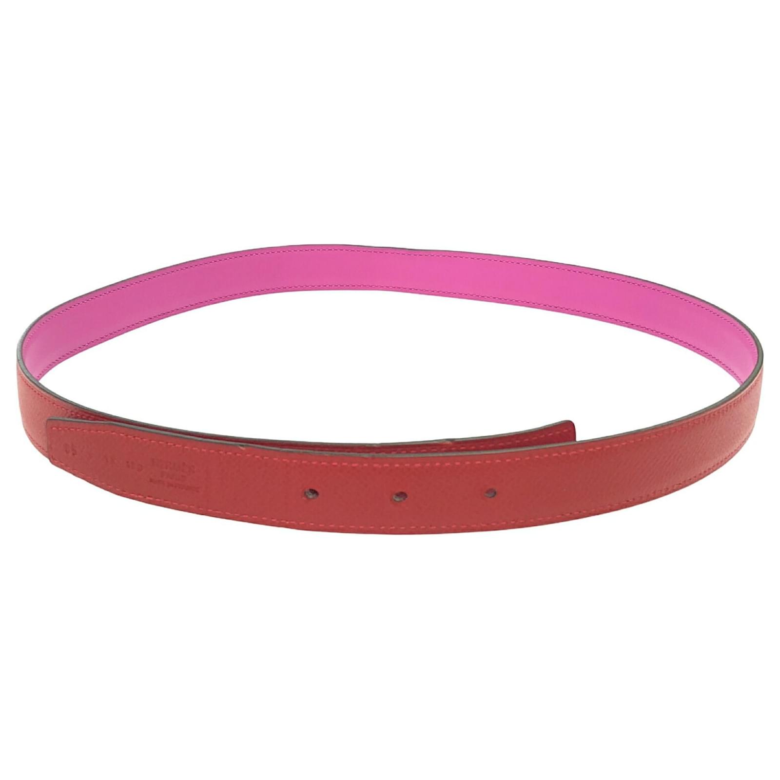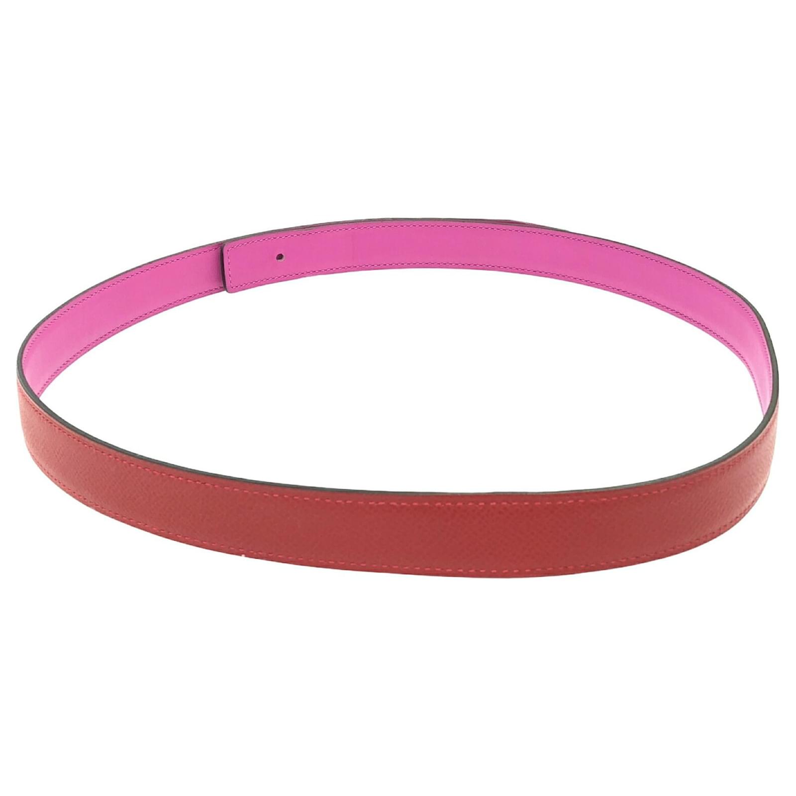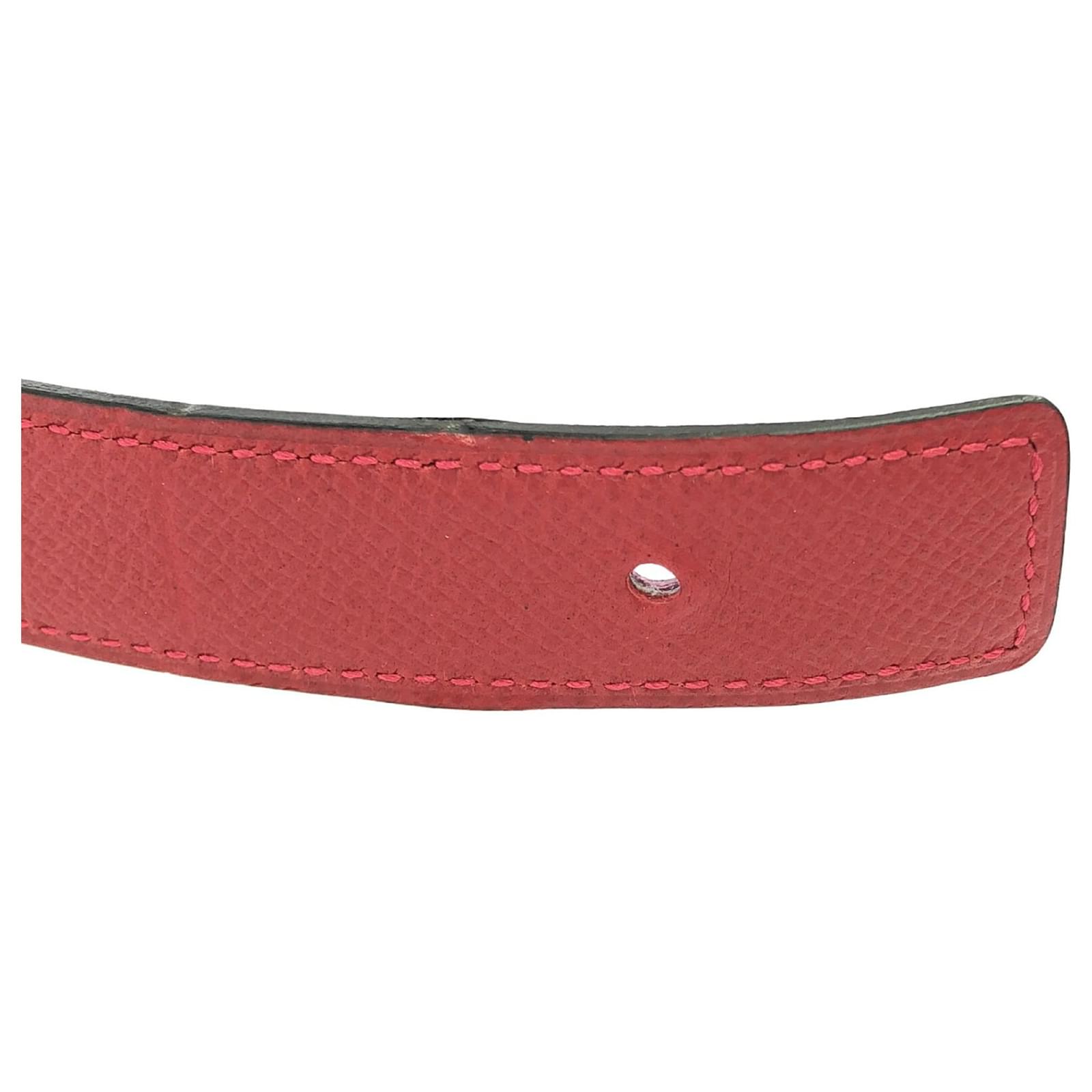 This Hermes belt is crafted from leather and features a standard design in a vibrant red color. It measures 100.5 cm in length and 2.3 cm in width, making it a versatile accessory for various outfits. \n\nThe belt is classified as used and is in acceptable condition, with noticeable traces of use, including moderate scratches and dirt. It is ranked as Rank B, indicating that while there are visible signs of wear, it remains suitable for continued use. Potential buyers are encouraged to review the provided images for a clear understanding of the item’s condition. \n\nNo additional accessories are included with this belt.