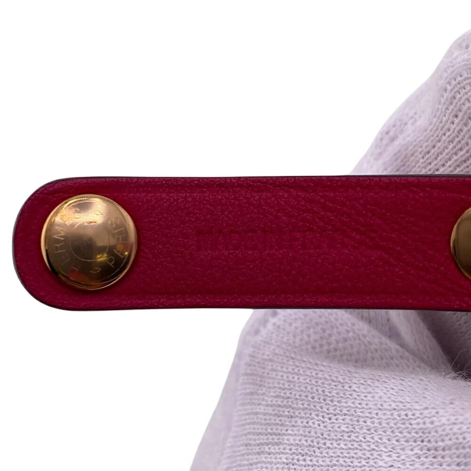 The Hermes Rival Pink glove holder is crafted from swift leather, offering a stylish and functional accessory for organizing gloves. Measuring 1.2cm in height and 15cm in width, this item is designed to be both practical and elegant. \n\nThis particular piece is in very good used condition, classified as Rank A, with only minor traces of usage, including some scratches and dirt. Notable details include edge peeling and a haze on the neck chain, but overall, the wear is insignificant. \n\nIncluded with the glove holder is its original box, and potential buyers are encouraged to review the provided images for a clear understanding of the item’s condition.