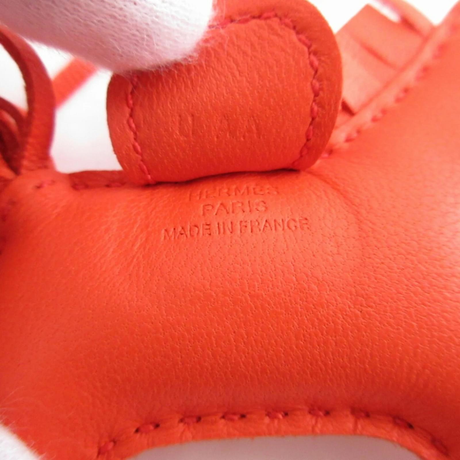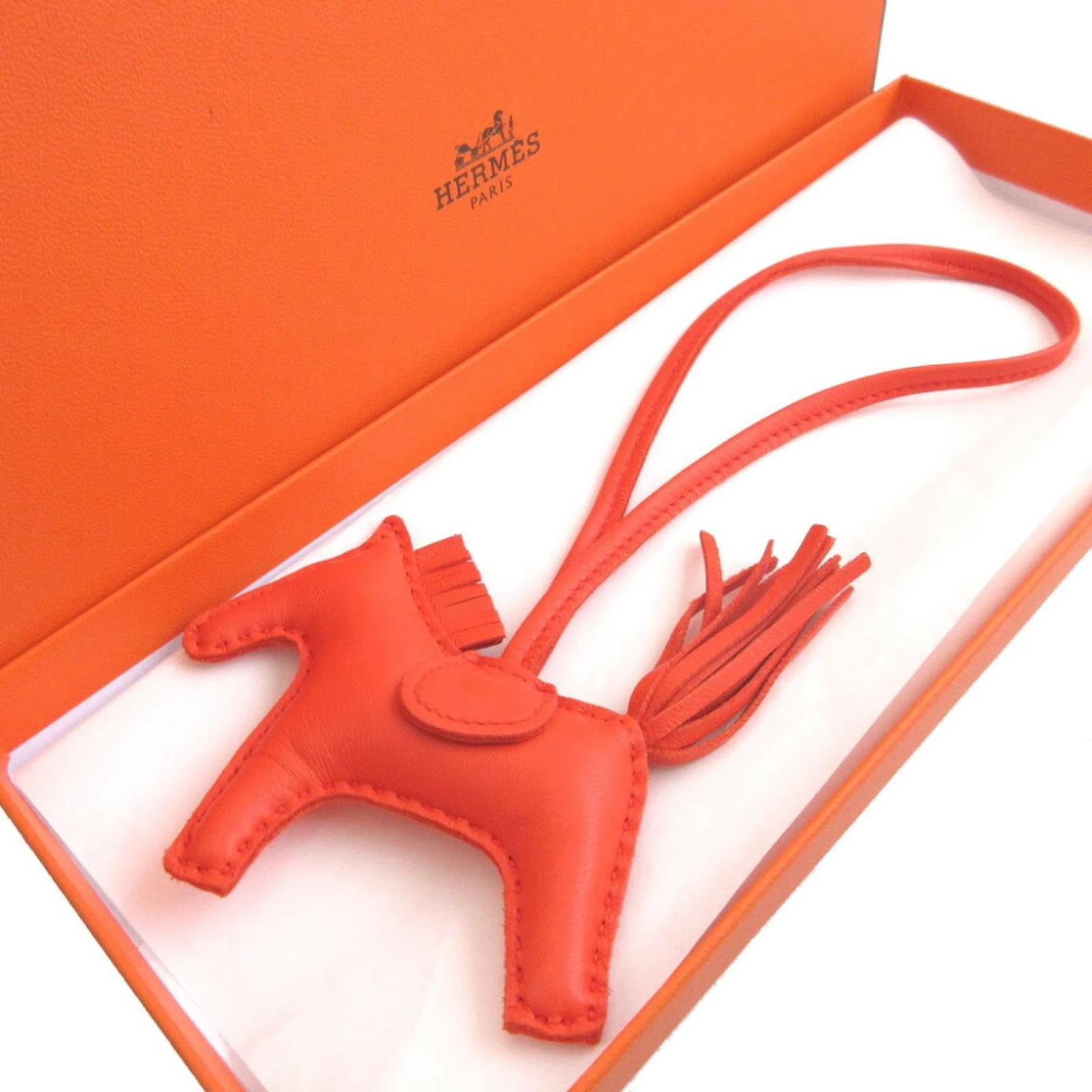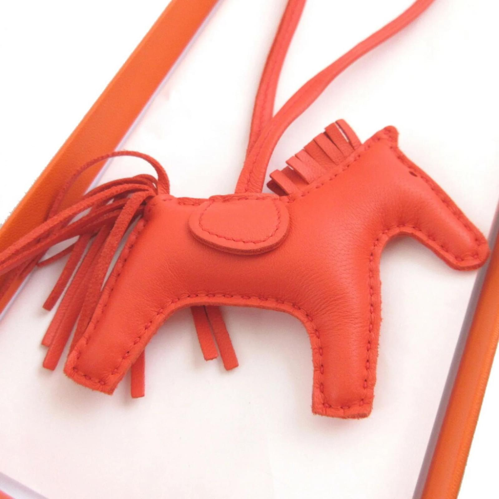 This Hermes Rodeo Charm PM keyring is crafted from Agneau Milo leather in a vibrant orange poppy color. Measuring 7.5cm x 9cm (2.95” x 3.54”), it is designed to complement your bags with a touch of elegance. The item is in used condition, rated as Rank S, indicating it is in mint condition with insignificant traces of use, including minor creases and scratches. The keyring comes with its original box, and potential buyers are encouraged to review the images for a detailed view of its condition.