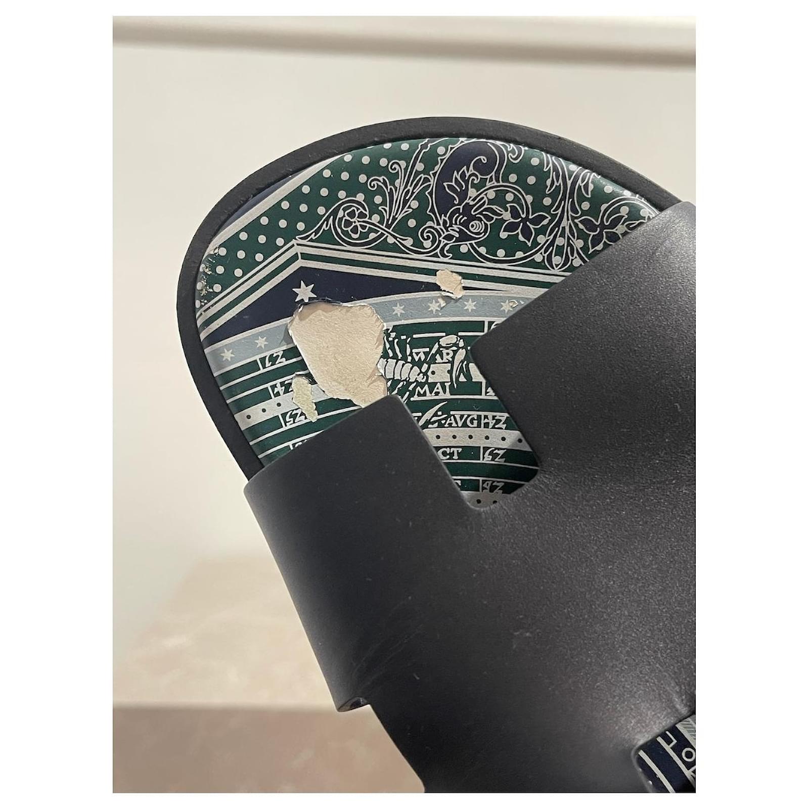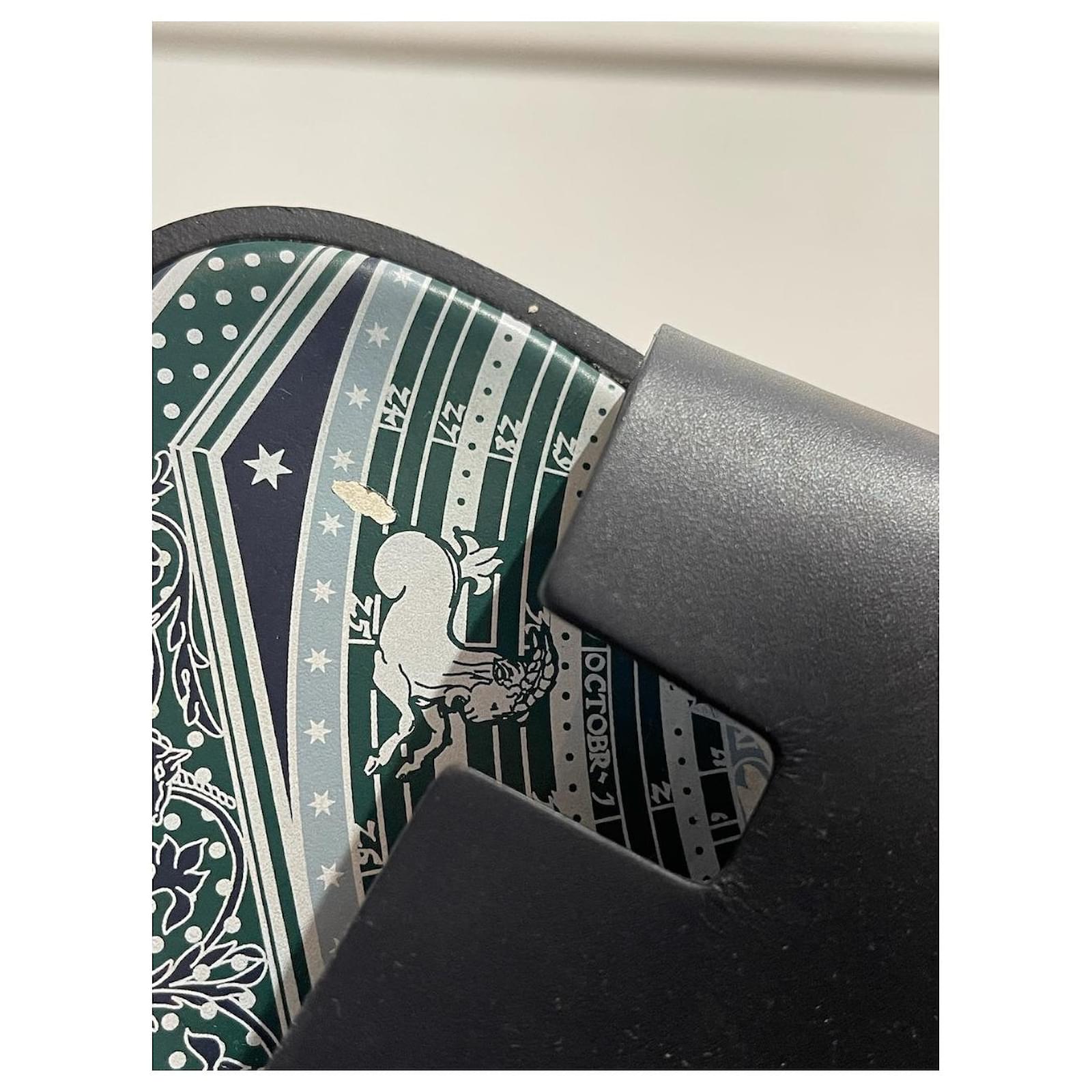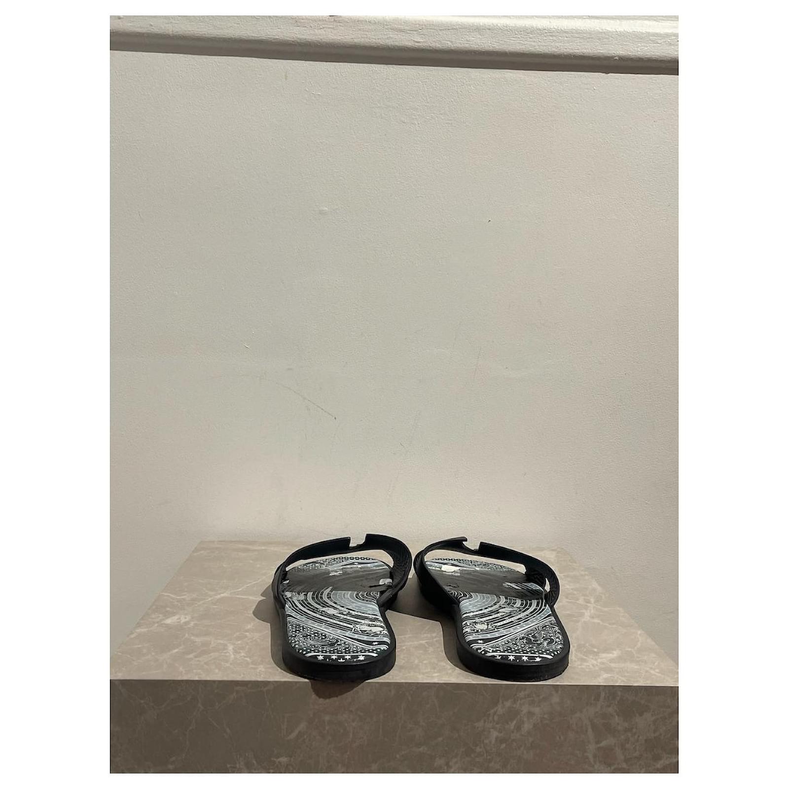 Hermès Izmir model sandals. Size 44 5.\nIconic mules in black navy blue leather with printed leather sole.\nGood condition, note that the leather on the insole is peeling off (see photos). With box. \n