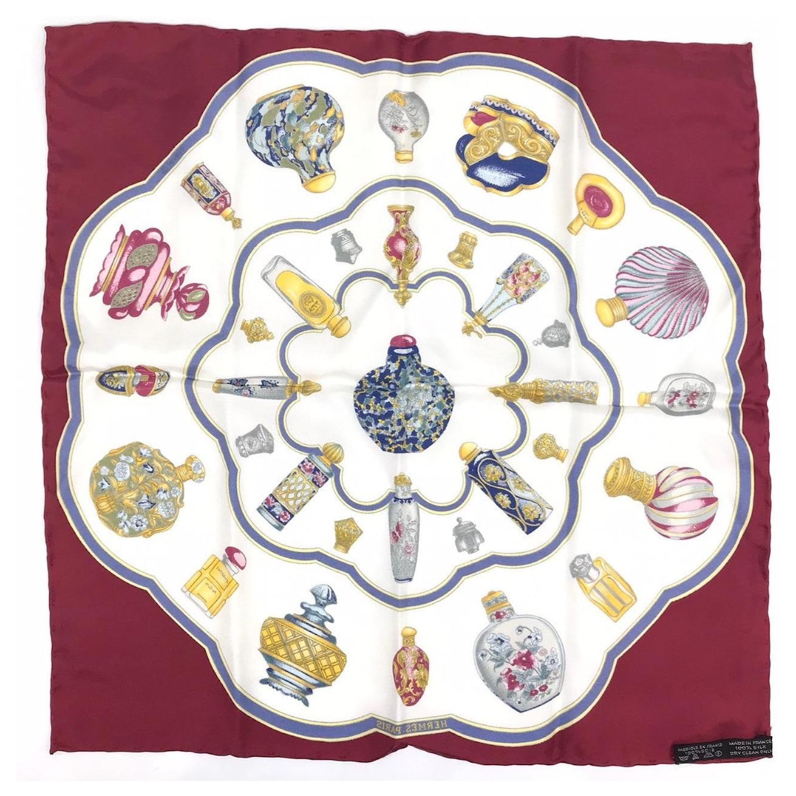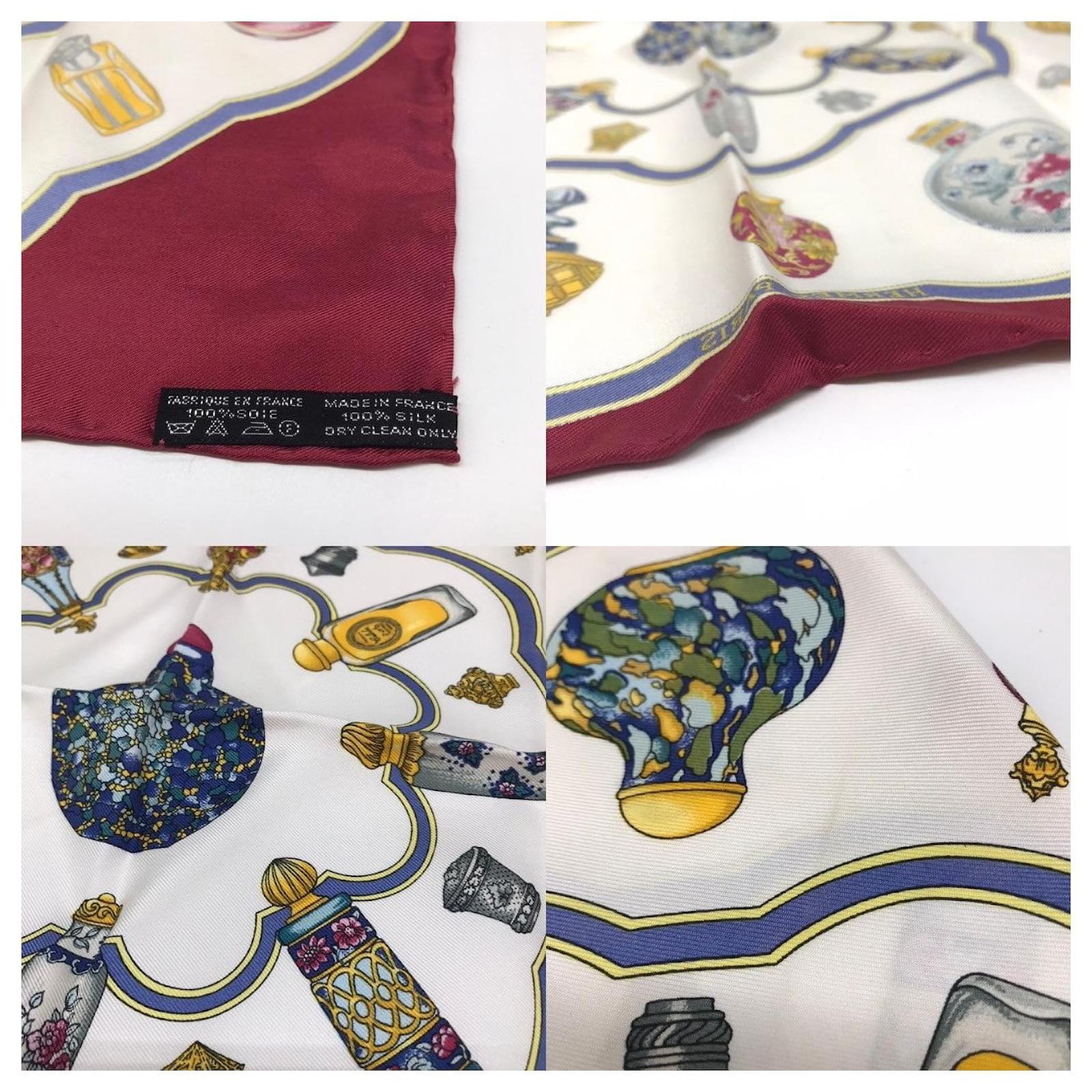 – General information -\nBrand : Hermes\nItem name : Hermes Silk Scarf Qu importe le flacon\nModel number :\n- Design -\nType : Scarf\nMaterial : Canvas\nColor : Red\nGender : Female\n- Size -\nSize :\nLength : 40.00\nColor : Red\nMaterial : Silk\n- Inventory -\nSerial Number : null\nSKU : 120250000244200A0025483413\n- Included Items -\nAccessories : null\n*Before purchasing, please refer to the images of the accessories included with the item.\n- Condition -\nCondition : Very Good Condition\nRank : Used A Used condition with some scratches and stains.\nCondition Notice : Before purchasing, please refer to the images for the exact condition of the item.