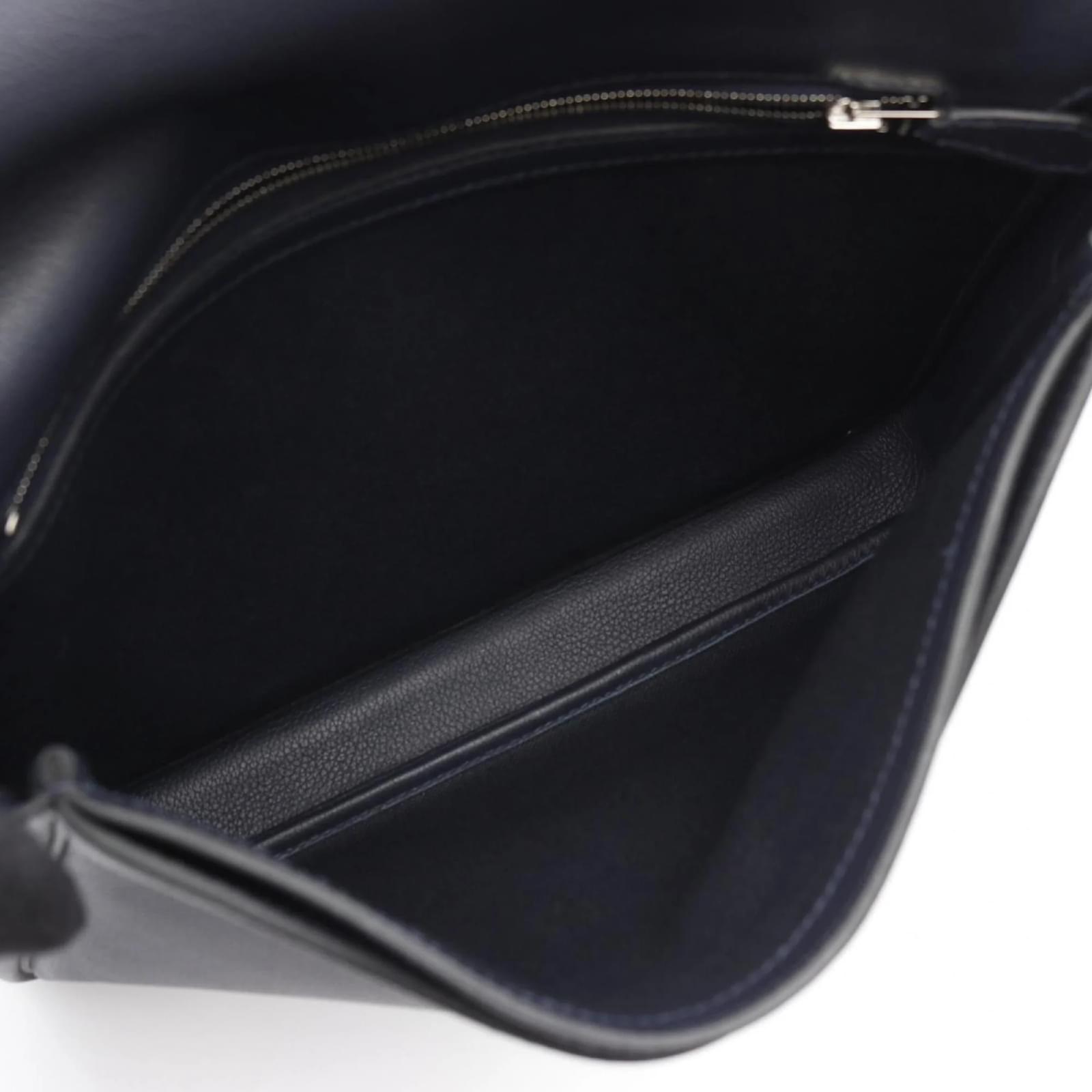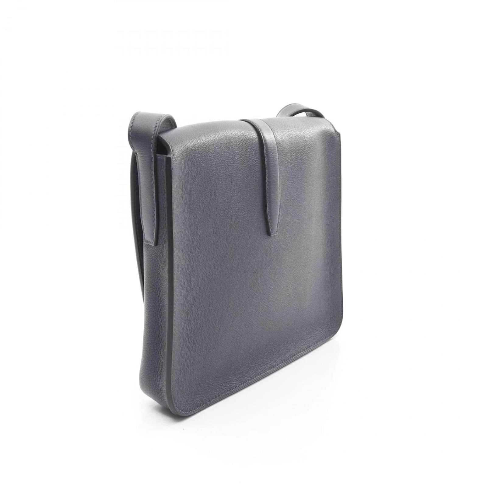 The Hermes Steve Wright Junior Bleu Nuit Shoulder Bag is a stylish accessory designed for men. This shoulder bag features a navy color with silver hardware, offering a classic look suitable for various occasions. \n\nMeasuring 22cm in height, 27cm in width, and 4cm in depth, it provides ample space for essentials while maintaining a sleek profile. The bag is in good used condition, classified as Rank AB, with slight traces of usage, including minor scratches and dirt. \n\nPlease refer to the images for a detailed view of the item’s condition and note that no additional accessories are included.