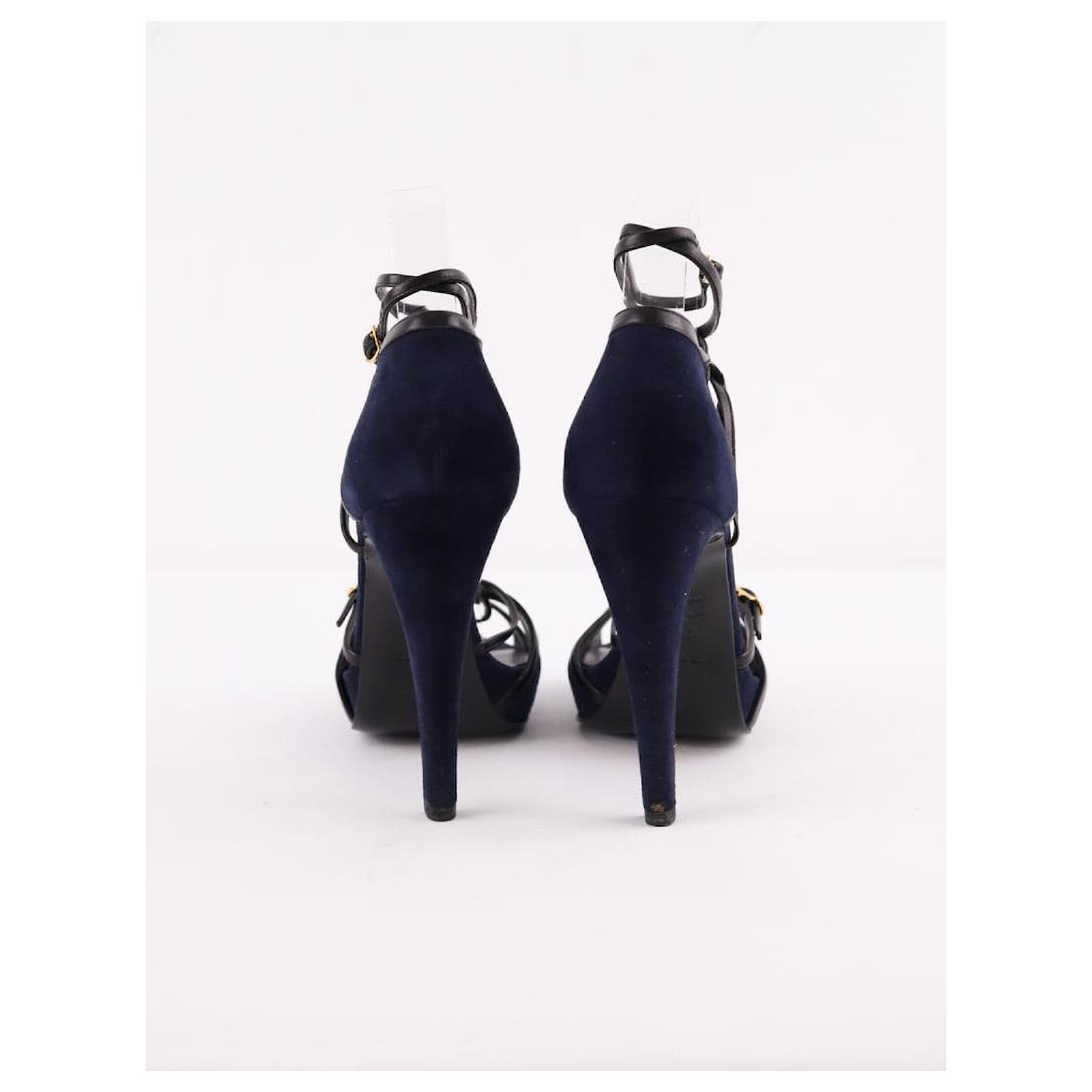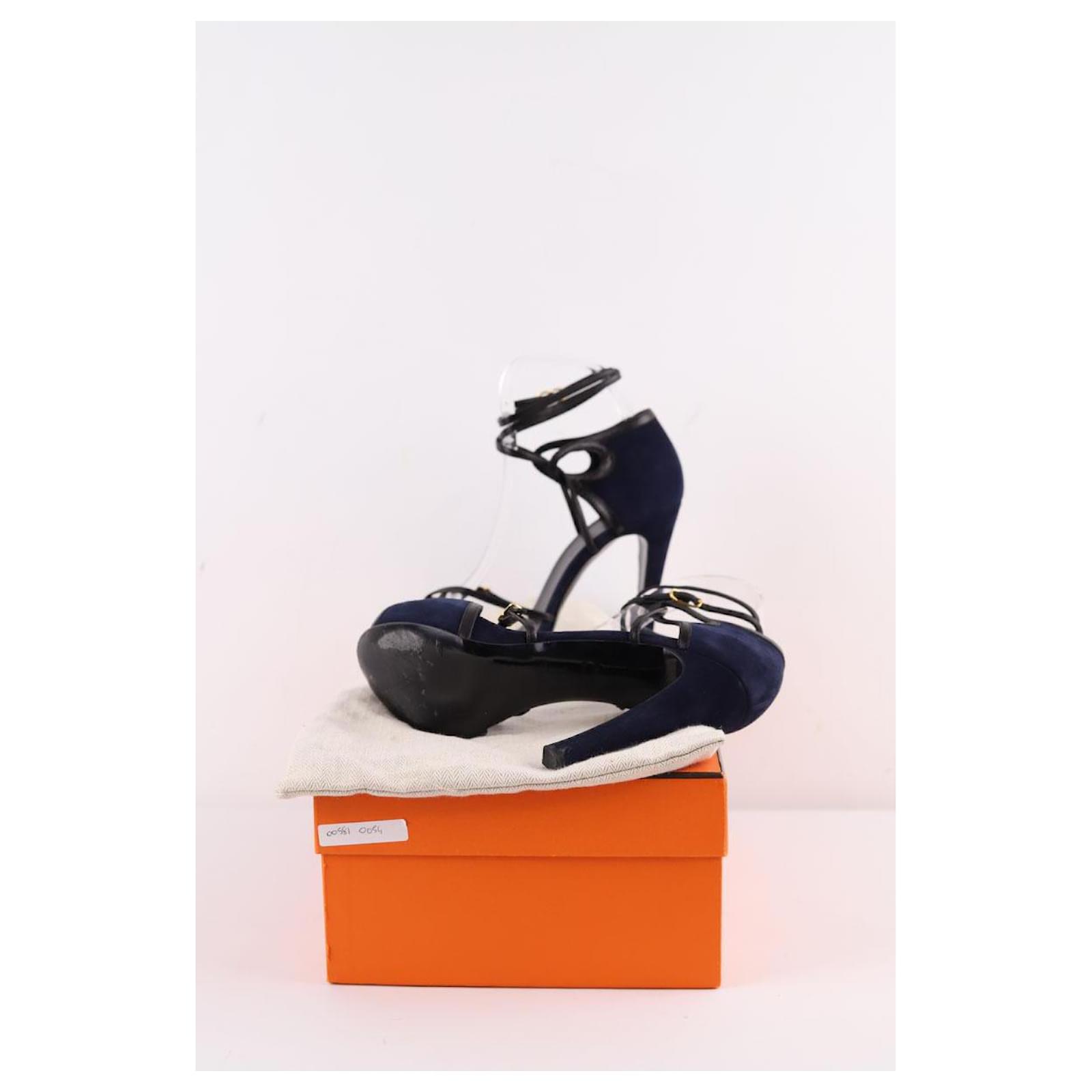 Second-hand Hermès blue heels. Main material leather. Size 37. Label size: 37.5. Heel height: 10cm. With box. Women’s collection. Good condition. Signs of wear. Reference: 005810054.