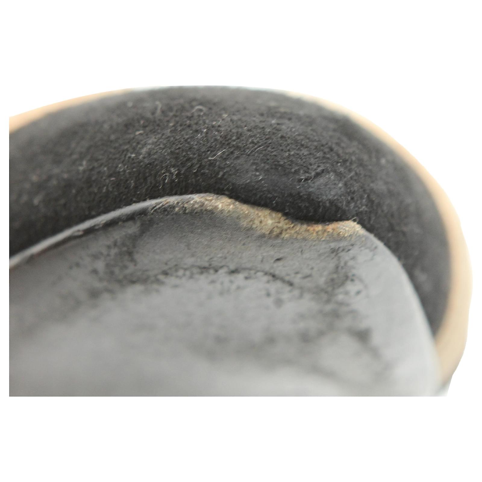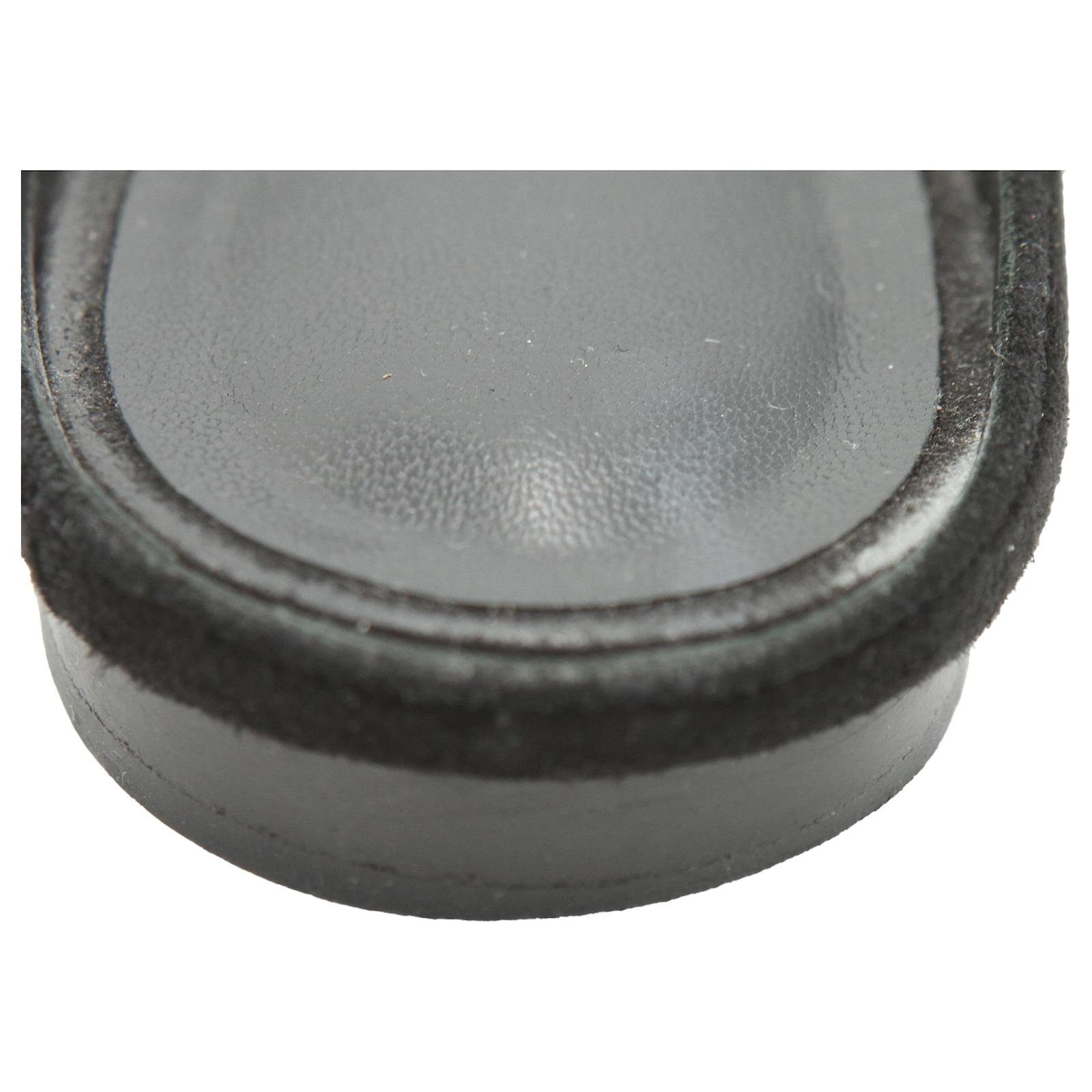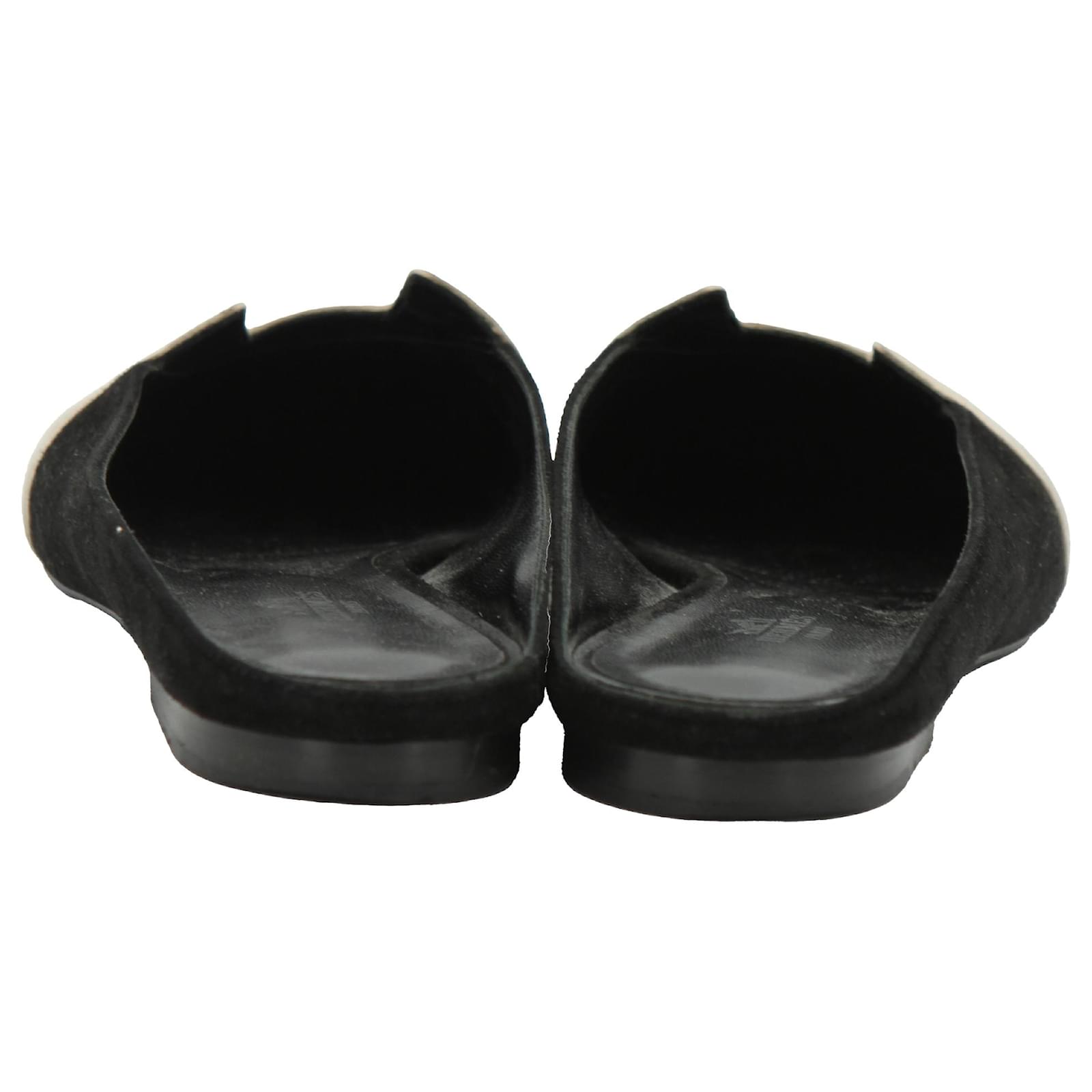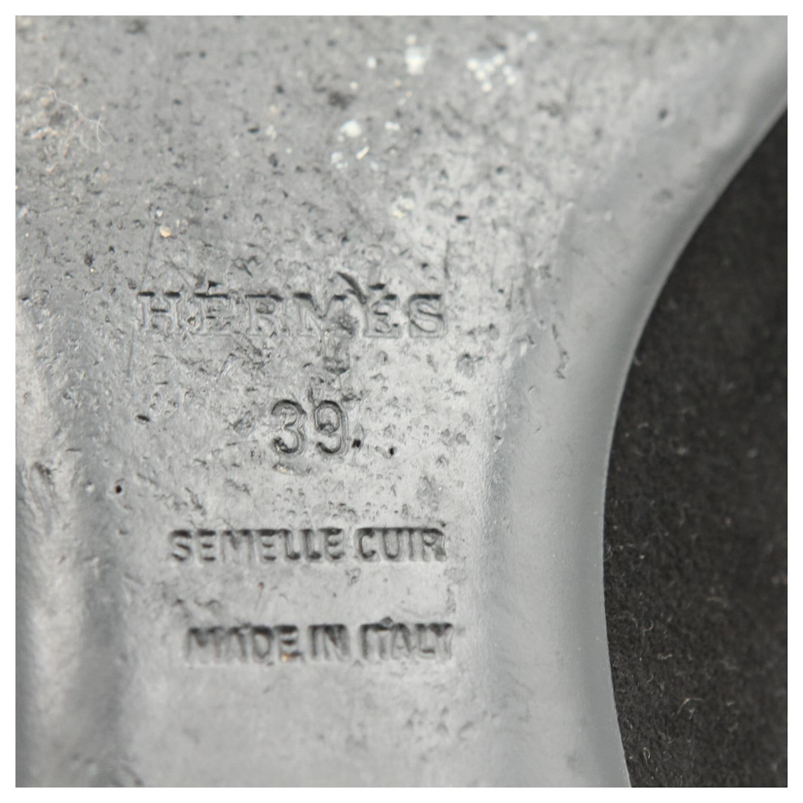 HERMES Tricolor Suede Roxane Flat Mules in Suede.\nBlack suede leather upper with contrast beige and tan H logo.\nHeel height : 1 cm.\nSize: EU 39.\nCondition: Very good condition.\nDetails: Marks and scuffs. Lightly wearing.\nOriginal Packaging: With dust bag.\nIN: 2020250.\n38691YH \n Product Id: 466793 \n