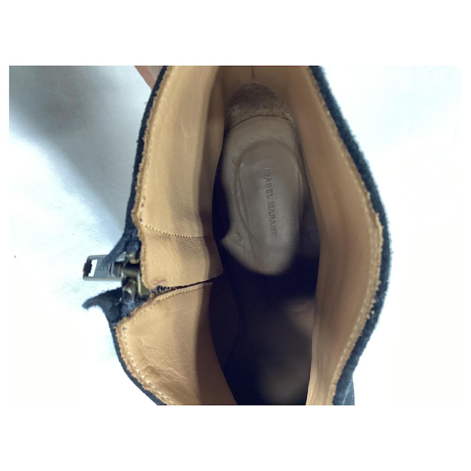 The Isabel Marant Dicker Booties in black suede are your new ride-or-die ankle boots. With lightly weathered leather for a lived-in luxe feel, a comfy low heel, and classic Western-inspired lines, these are the boots you’ll wear on repeat. From flowy dresses to cuffed denim, they pair with everything—season after season.\n\n\nwith Box, Dust bag\n\nIsabel Marant Dicker Booties in Black Suede\nCondition: very good\nSigns of wear: No visible sign of wear. No Mark at insole., Unused or used once, but as good as new. Very light mark at soles.\nPackaging: Box, Dust bag\nColor: black\nMaterial: Suede | suede\nSize: EU | 41\nMeasurements: Heel height: 70mm; Insole length: 270mm\nSKU: NAPPUUSSH470746W \n Product Id: 470746 \n