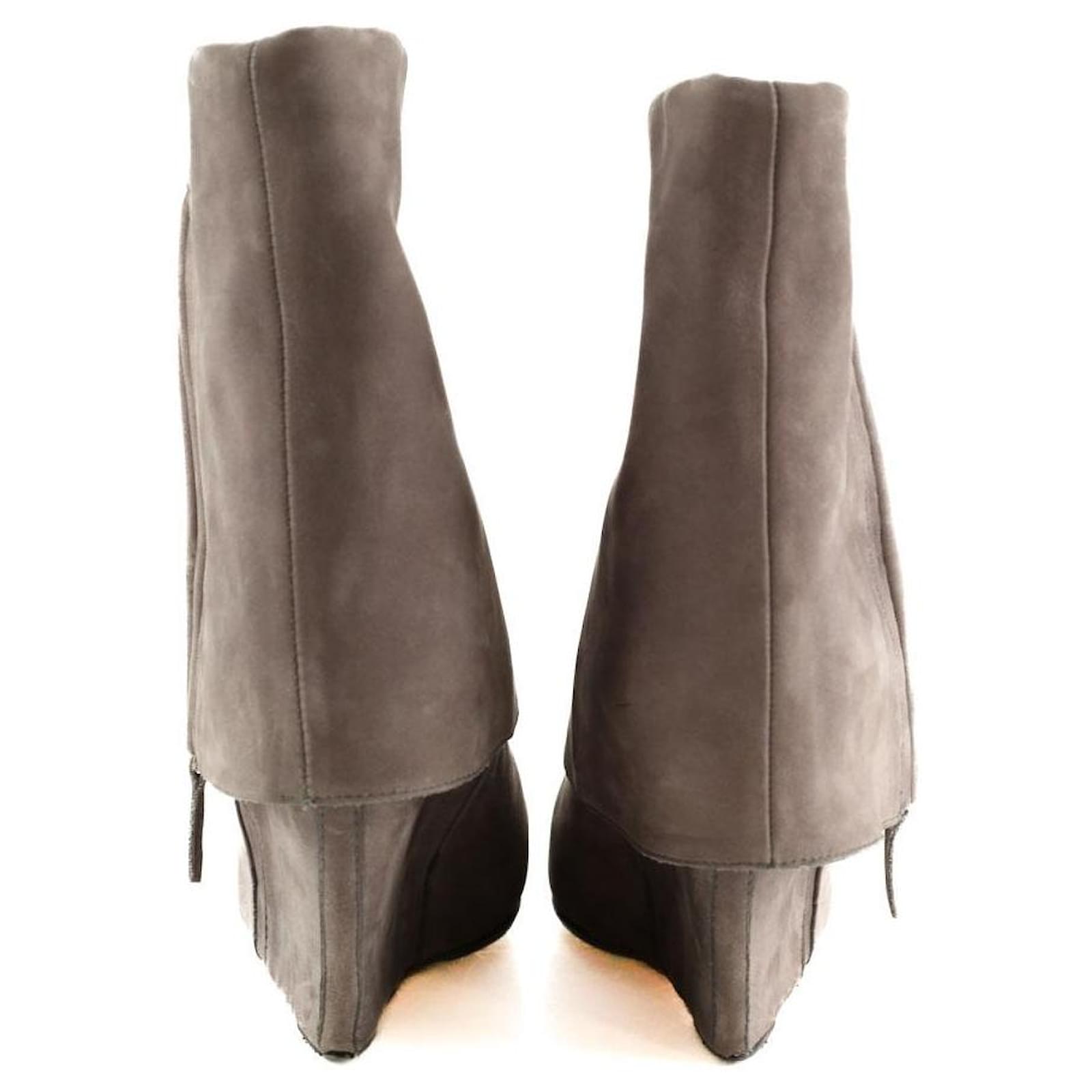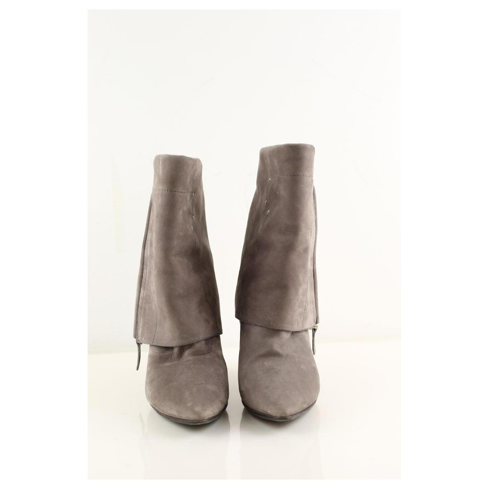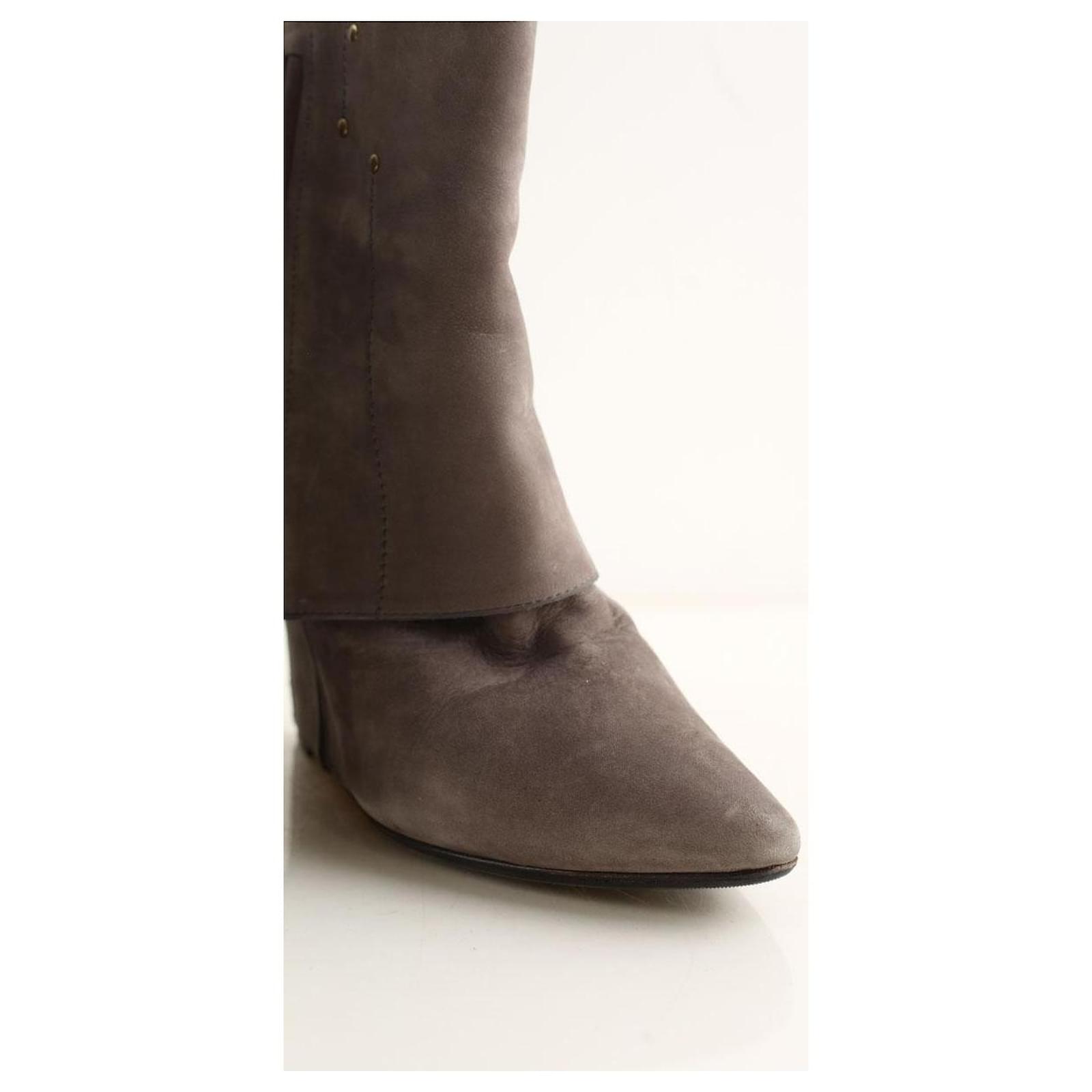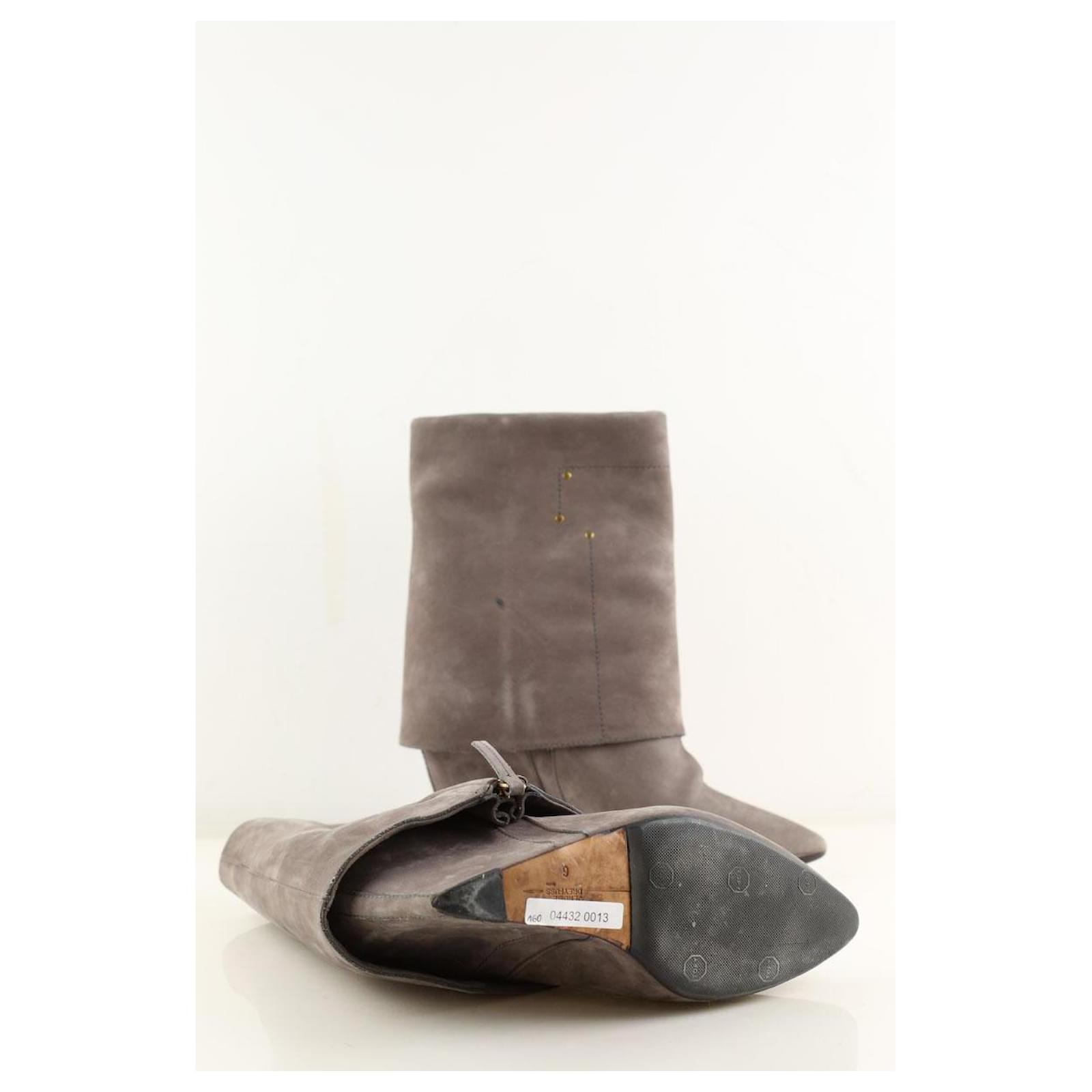 Second-hand Jérôme Dreyfuss boots in gray. Main material is suede. Size 39.5. Heel height: 10cm. Shaft: 18cm. Women’s collection. Very good condition. Reference: 044320013.