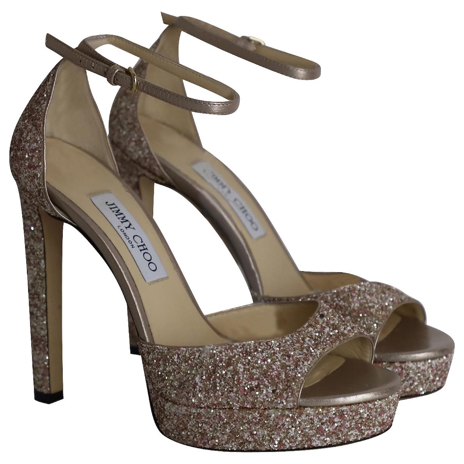 Perfect for a night of cocktails and dancing, this pair of Jimmy Choo Platform Sandals are a must-have! With their eye-catching pink glitter and high heel, these shoes look great with any outfit.\n*with box and dust bag\n\nJimmy Choo Platform Sandals in Pink Glitter\nMaterial: Glitter\nSize: IT39\nCondition: Very good\nSign of wear: Moderate wear on soles and insoles\nSKU: 290148 \n \n Product Id: 290148 \n