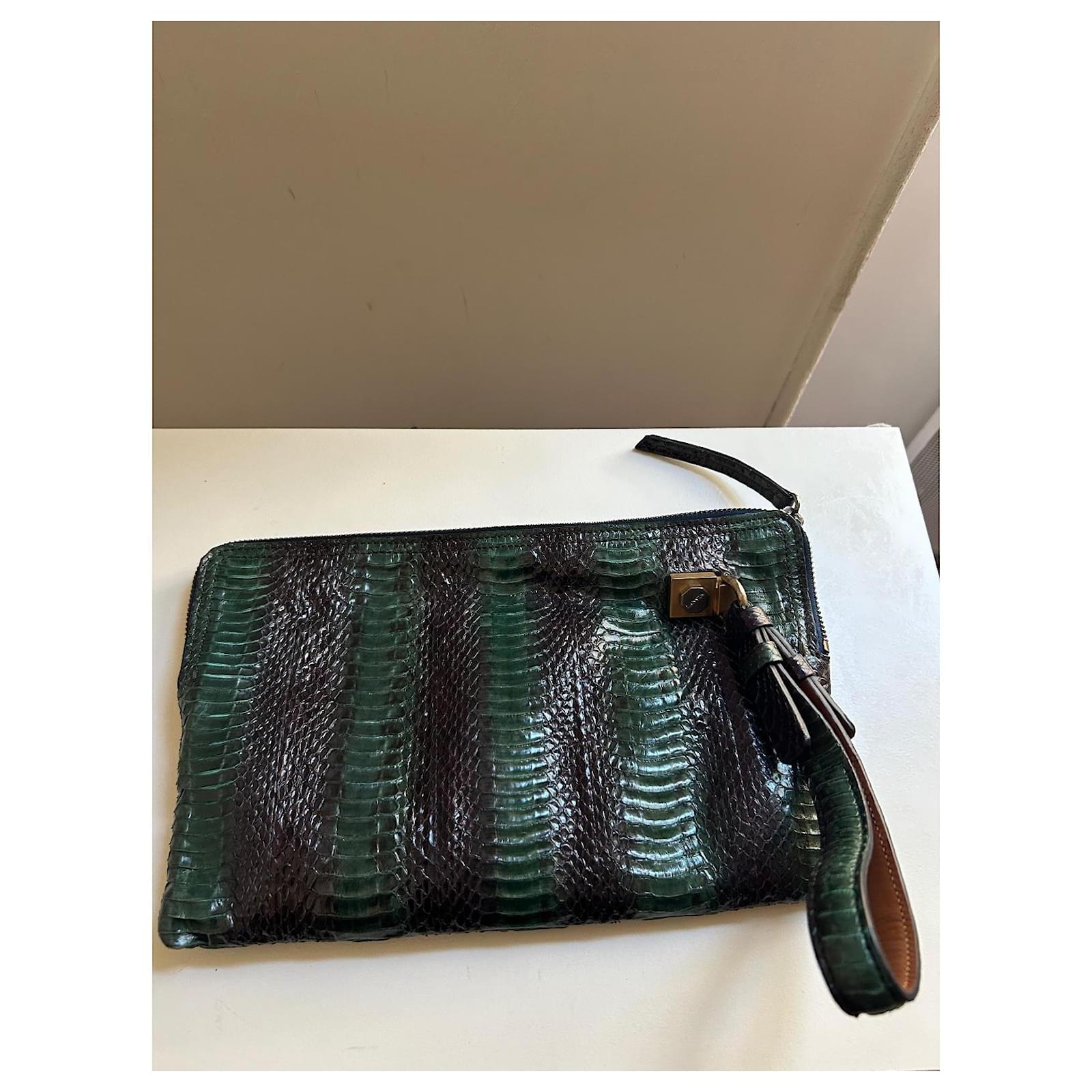 Green python leather Lanvin clutch, combining refinement and elegance. This timeless model is ideal for an evening, a special event, or to add a sophisticated touch to a casual outfit.