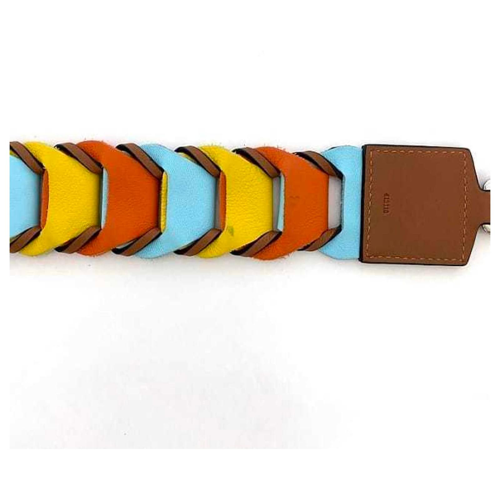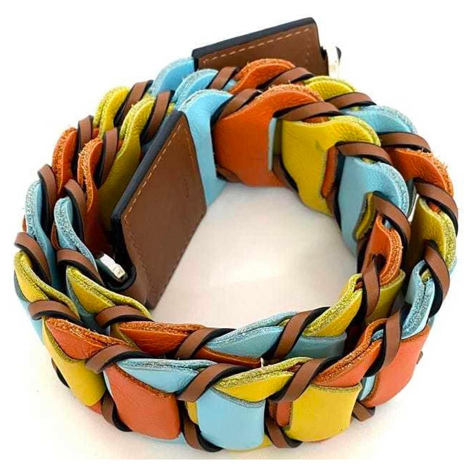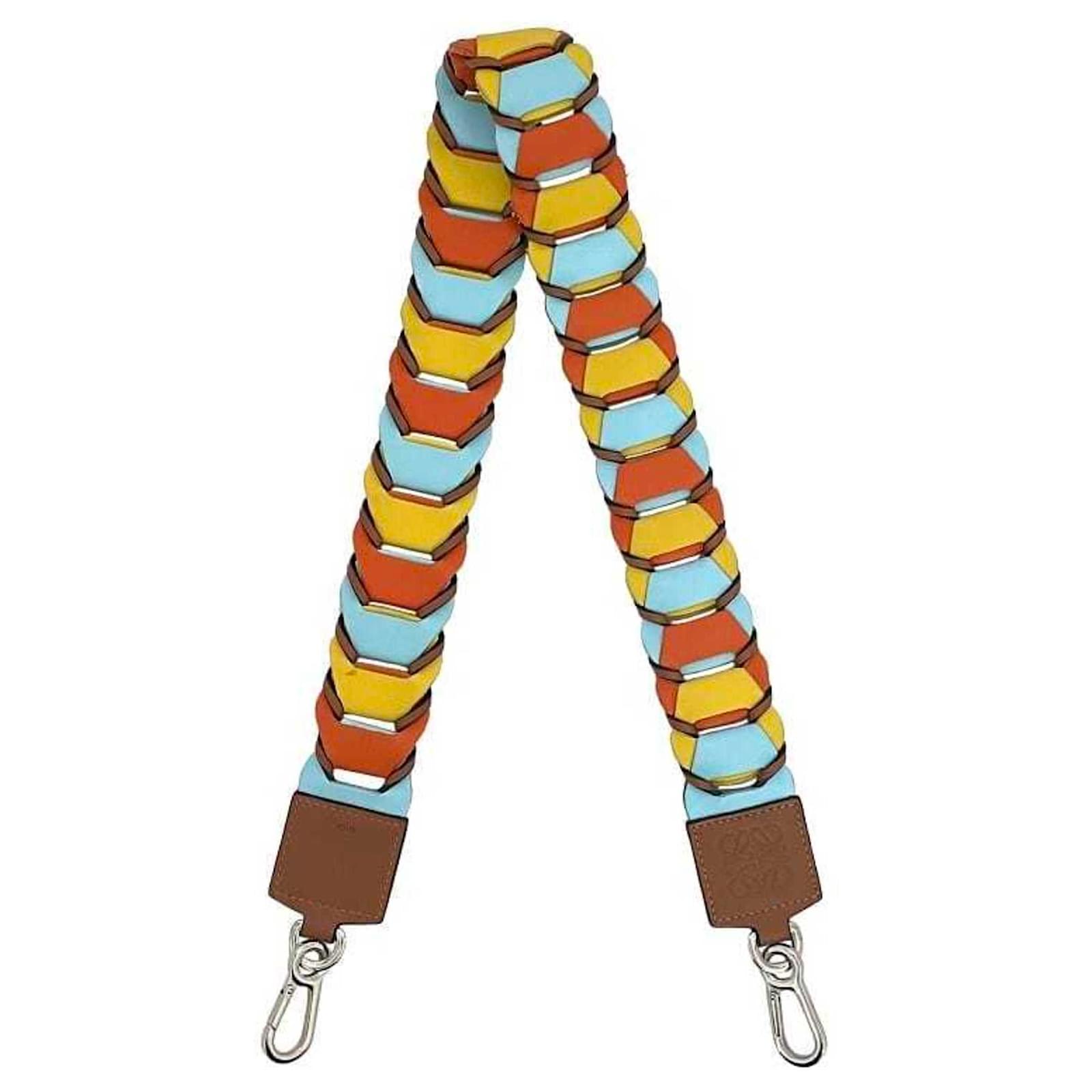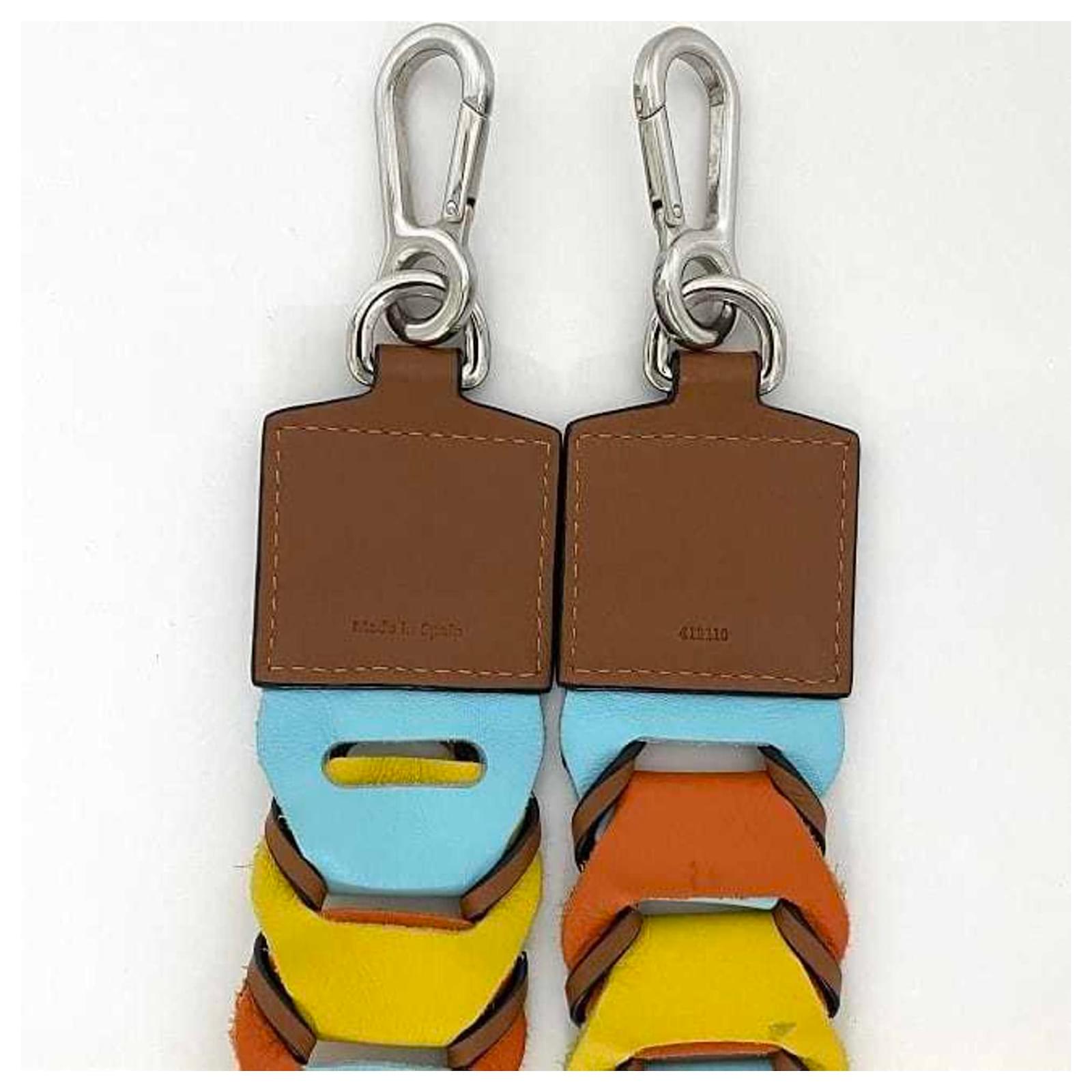 This Loewe shoulder strap features a vibrant combination of blue, brown, orange, yellow, and multi-color leather, designed to enhance your bag’s style. Measuring 5cm in height, 91cm in width, and 1cm in depth, it is a practical accessory for those looking to add a touch of color to their collection. \n\nThe strap is classified as used but remains in good condition, showing slight traces of usage, scratches, and dirt. It comes with a box and dust bag for protection. Potential buyers are encouraged to review the images for a detailed view of the item’s condition. \n\nThis genuine add-on strap is a versatile choice for any Loewe bag.
