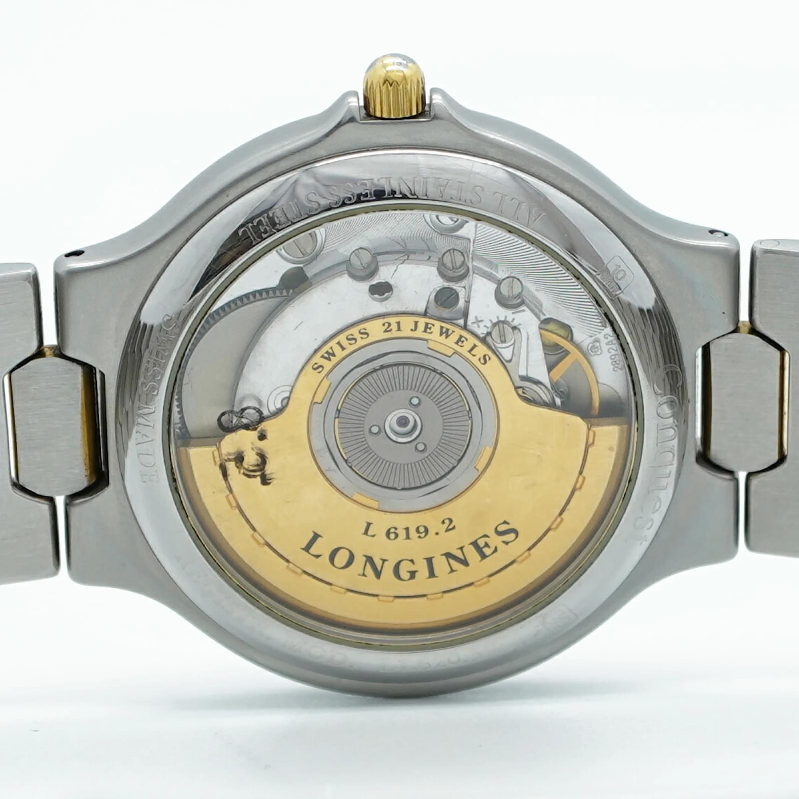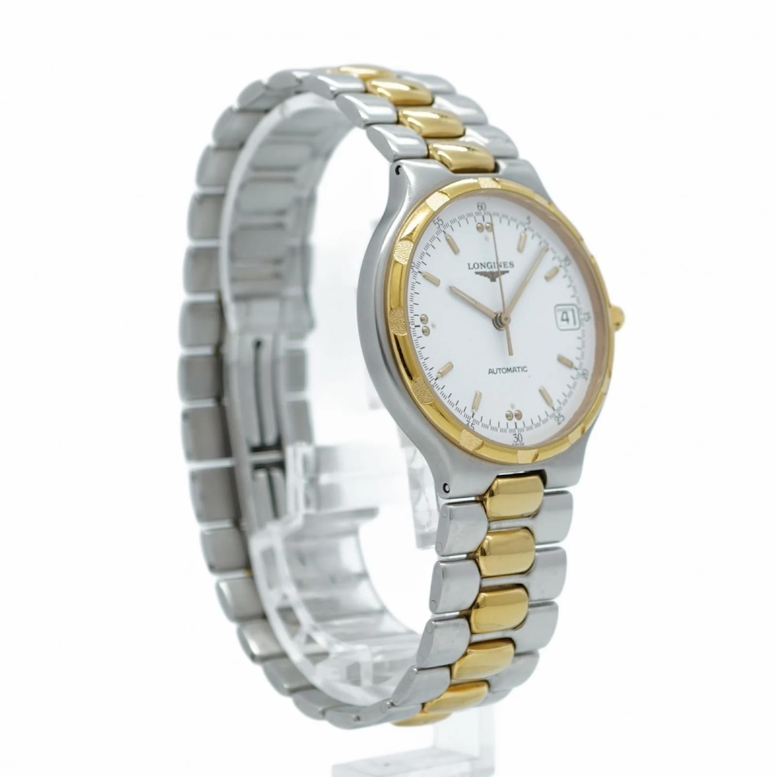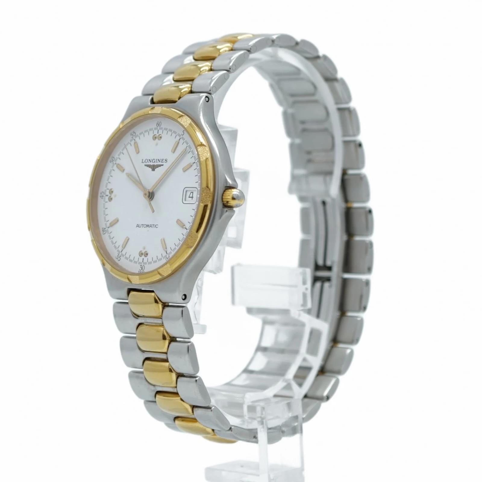 The Longines Conquest L1.620.3 is a men’s wristwatch featuring a white dial and a stainless steel band. This self-winding automatic timepiece has a case diameter of 35.7mm and is suitable for a wrist size of 18.5cm (7.28 inches). \n\nThis watch is in good used condition, with slight scratches on the bezel, case back, dial, glass, and crown, as well as minor signs of wear on the band. It is classified as Rank AB, indicating traces of usage are visible, but the overall condition remains satisfactory. \n\nPlease refer to the images for a detailed view of the watch’s condition and note that no accessories are included with the purchase.