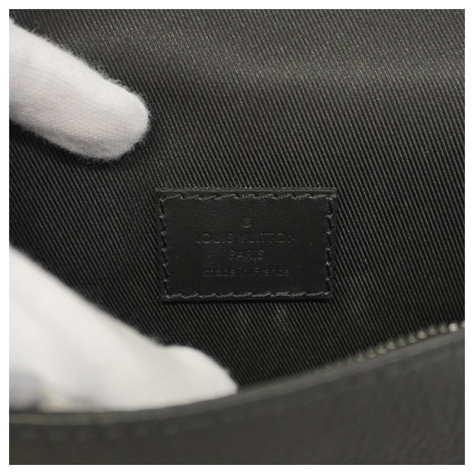 This Louis Vuitton shoulder bag, model Aerogram Fast Line, is designed in a classic Noir color, making it a versatile accessory for any wardrobe. It is categorized as a wearable wallet, ideal for carrying essentials with style. \n\nThe bag is in used but very good condition, classified as Rank A, with only insignificant traces of use, scratches, or dirt. It features initials \”S\” inscribed, adding a personal touch. \n\nIncluded with the bag is a name tag, and potential buyers are encouraged to review the images for a detailed view of the item’s condition and included accessories.