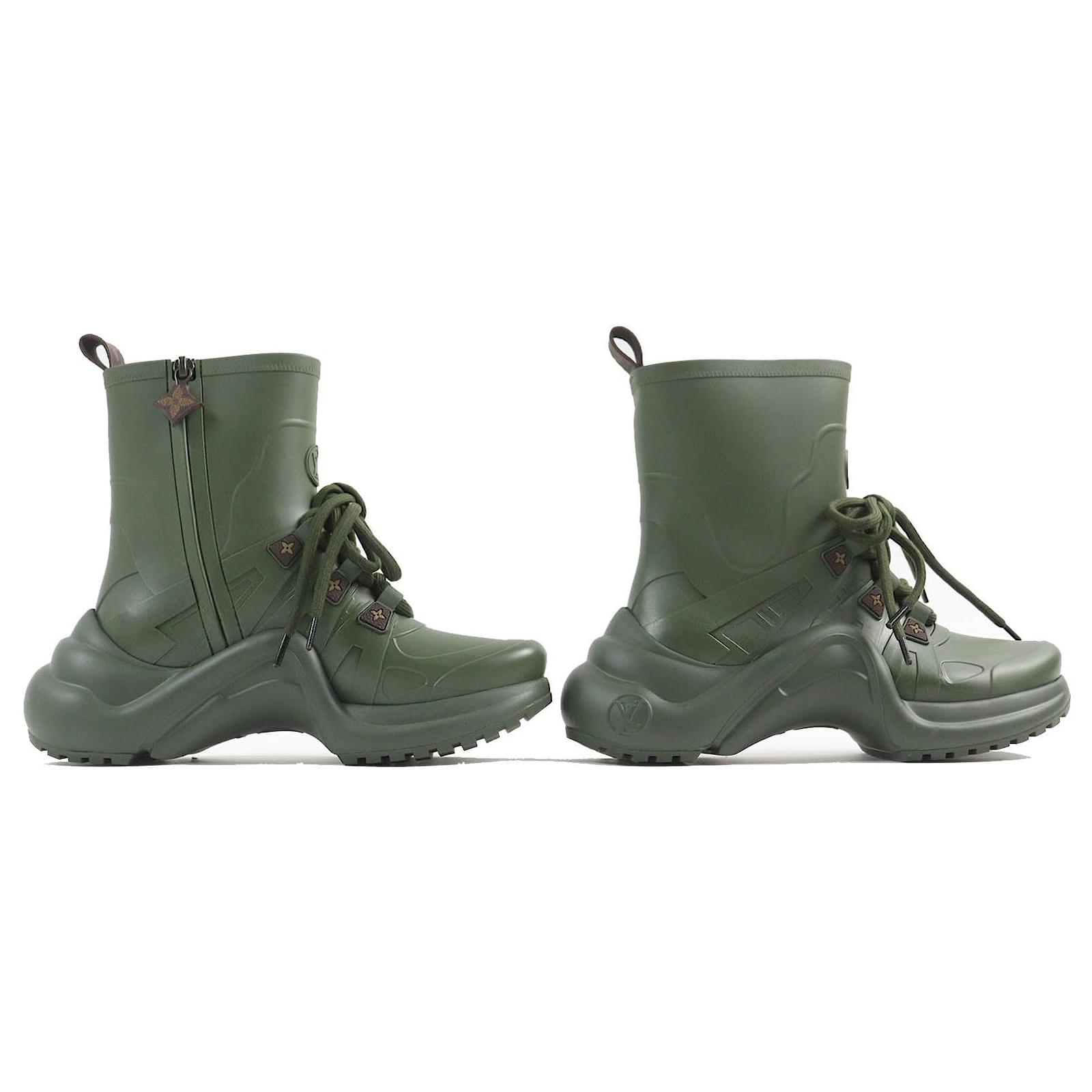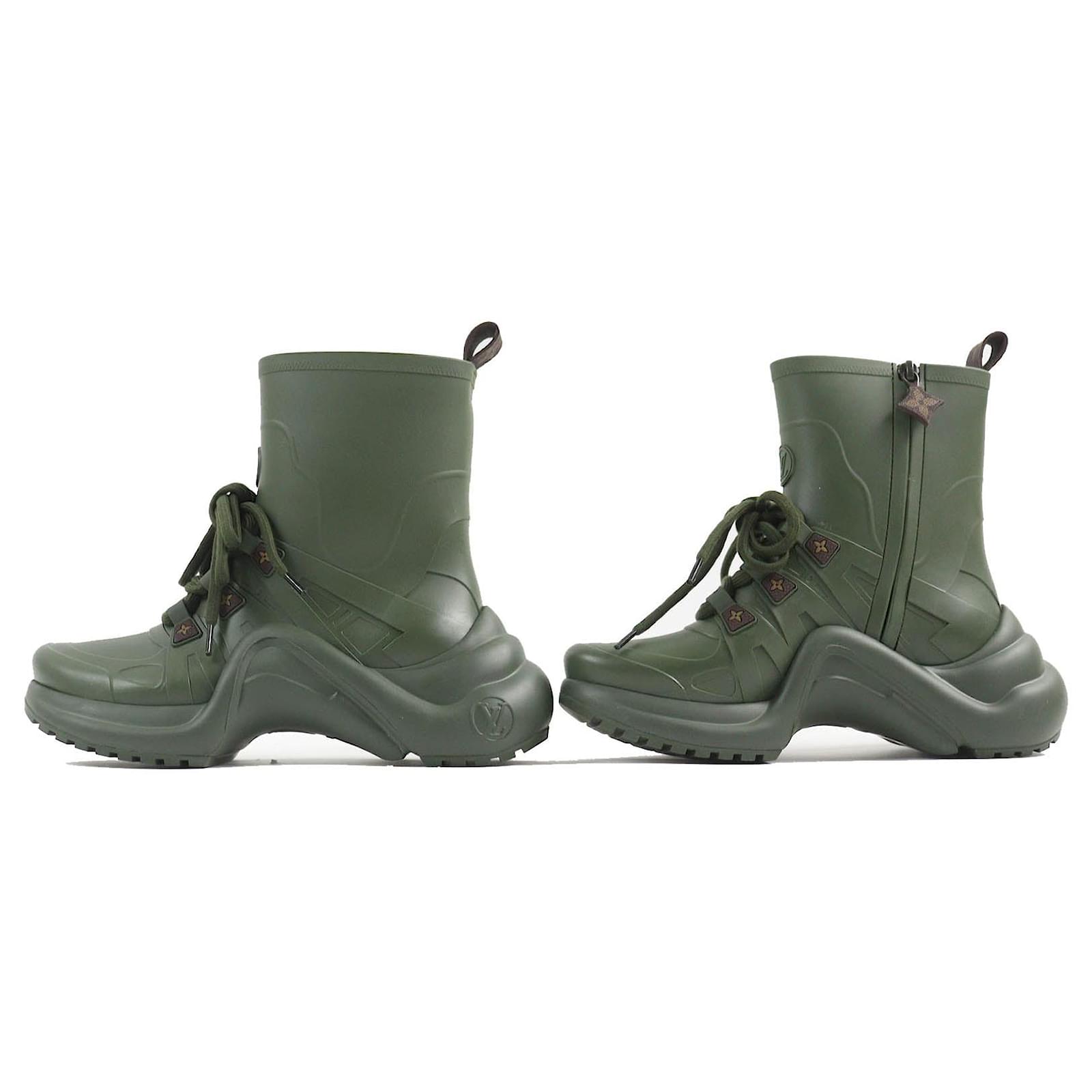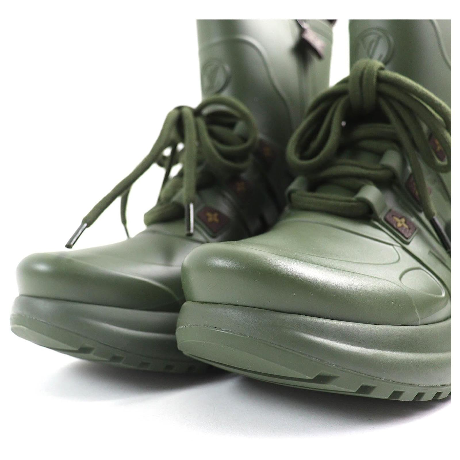 – General information – Brand : Louis VuittonItem name : Louis Vuitton Arclight Monogram Rain Boots KhakiModel number : MN1119 – Design -Type : ShoesMaterial : PlasticColor : GreenGender : Female- Size -Size : Shaft height : 20.5Opening circumference : 27Instep width : 9.5Insole total length : 27.5Heel : 7.5Shoe size(JP) : 36Color : khakiMaterial : rubber- Inventory -Serial Number : nullSKU : 120250000842160A0025578622- Included Items -Accessories : null*Before purchasing, please refer to the images of the accessories included with the item.- Condition -Condition : Excellent ConditionRank : Used A Slightly used condition, no visible wear.Condition Notice : Before purchasing, please refer to the images for the exact condition of the item.