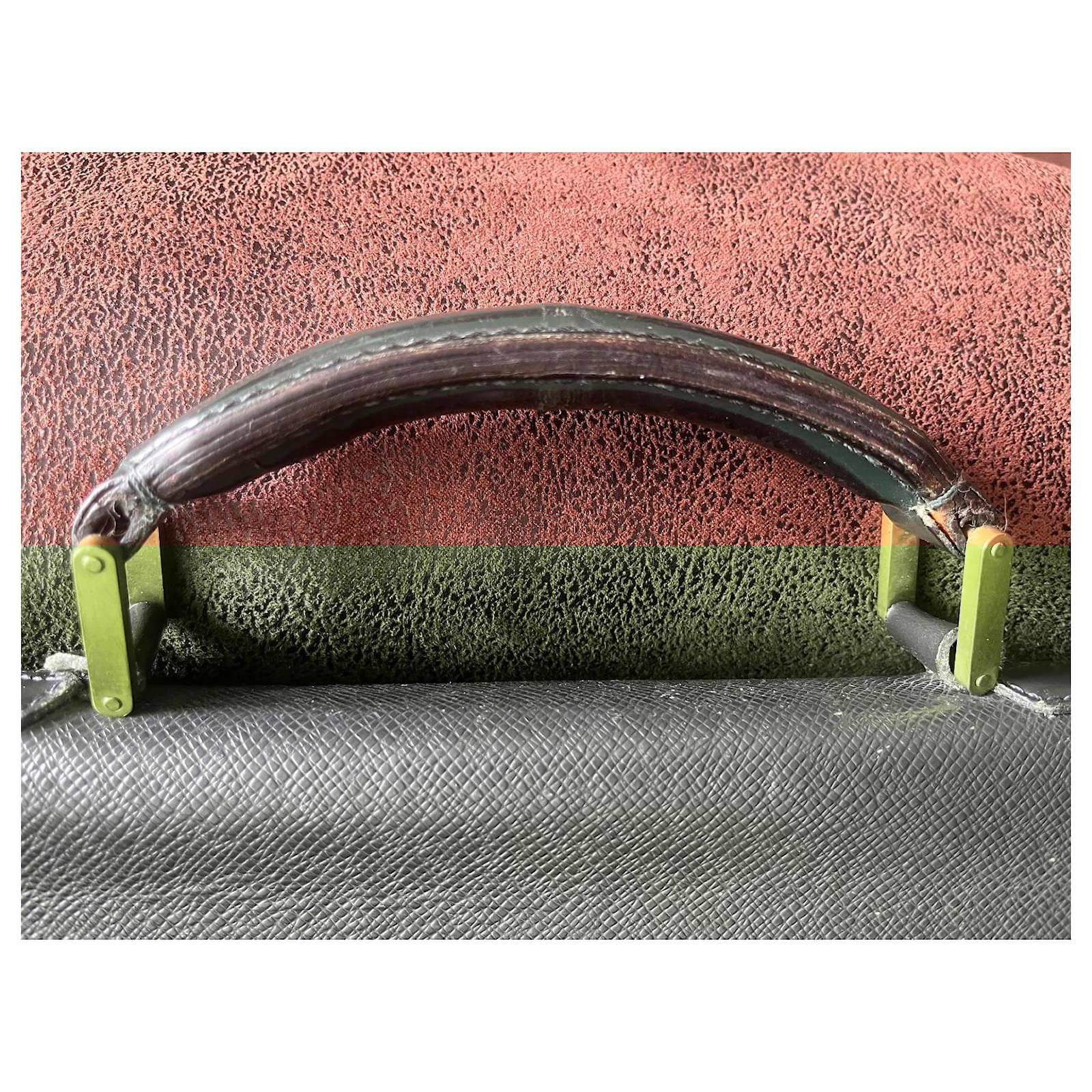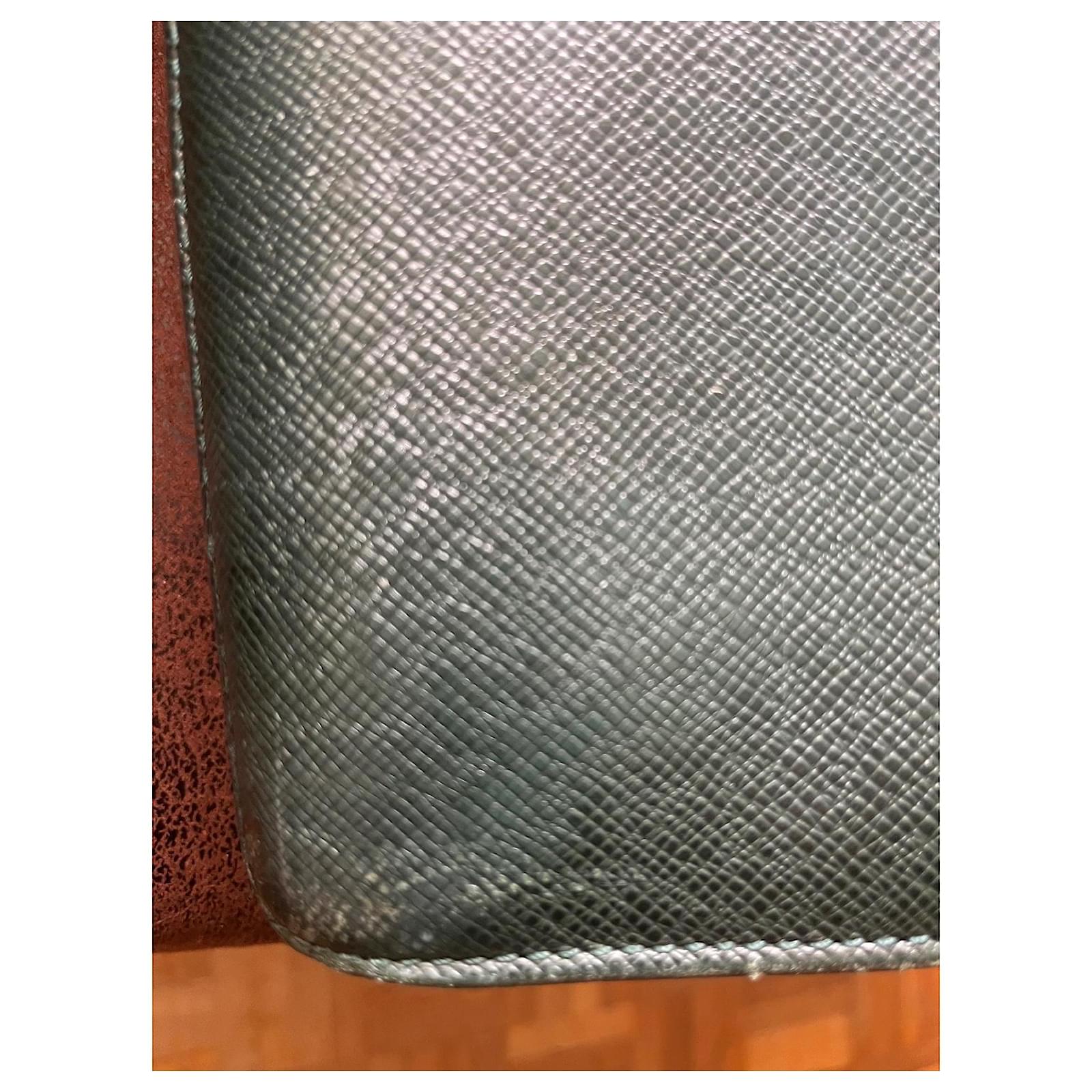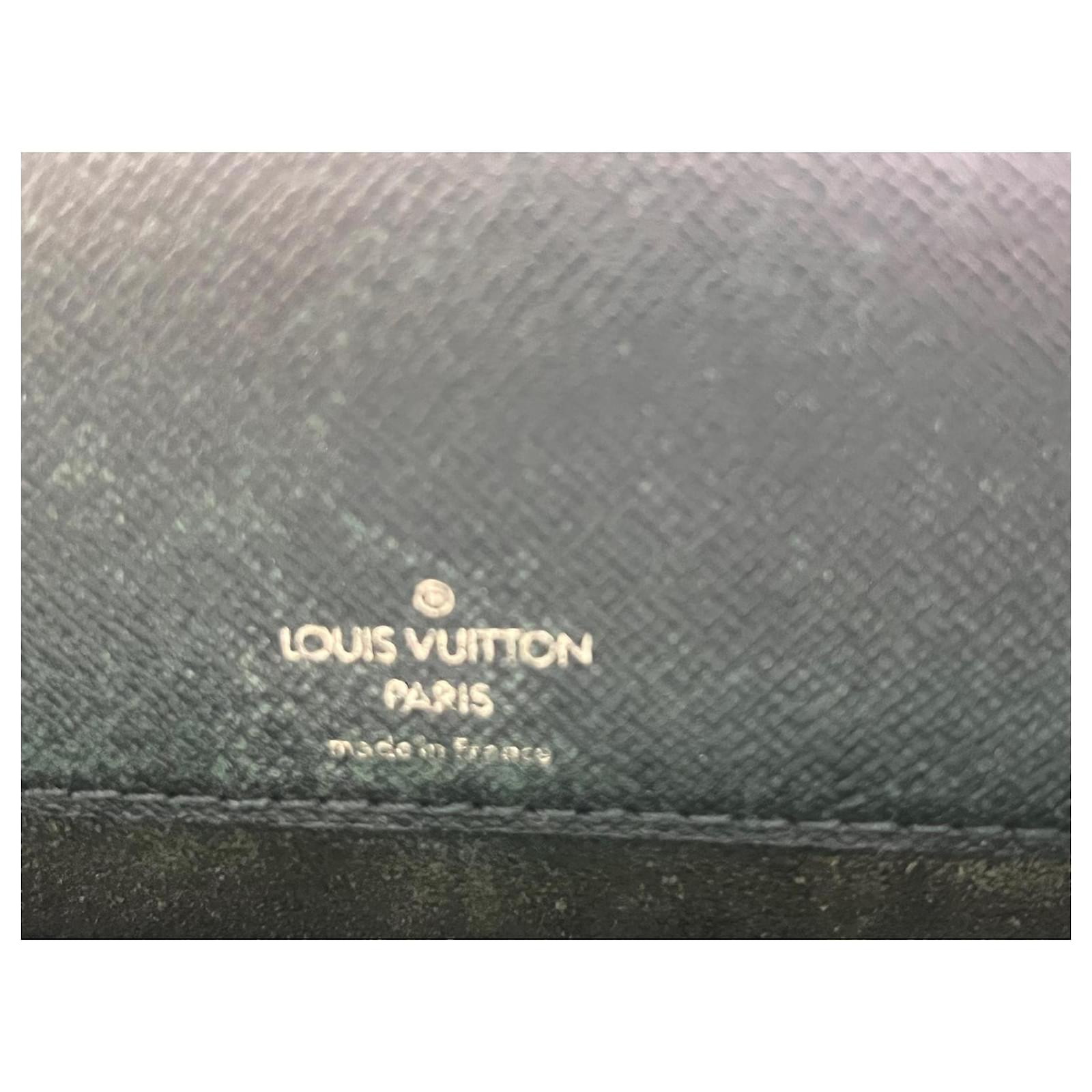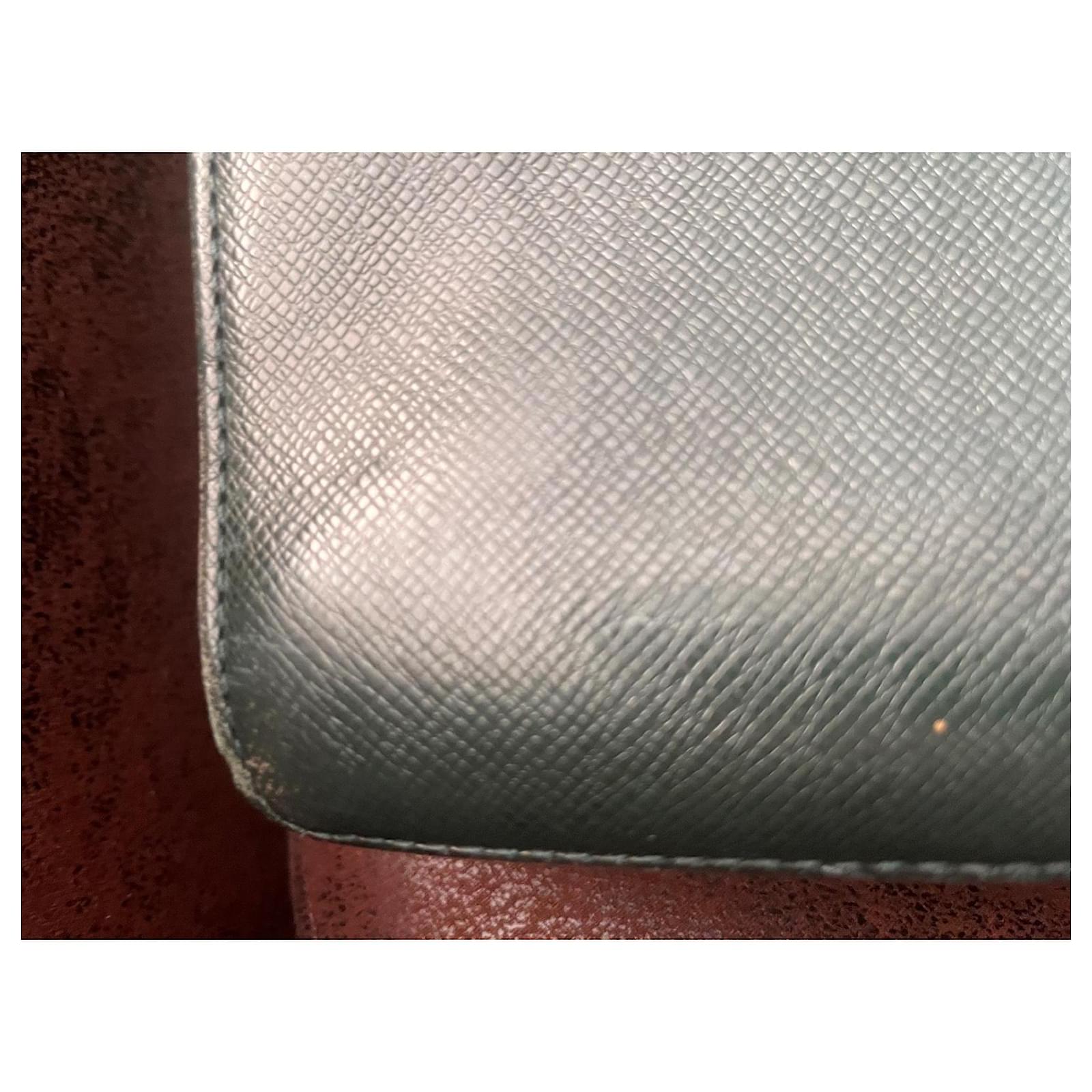 Louis Vuitton Document Holder Bag, in grained leather bronze green color, dimensions 34cm x 42cm x 8cm. Exterior pocket, 3 interior compartments with zipper. Front 2 buckles for the flap, signs of wear, remains in good condition.