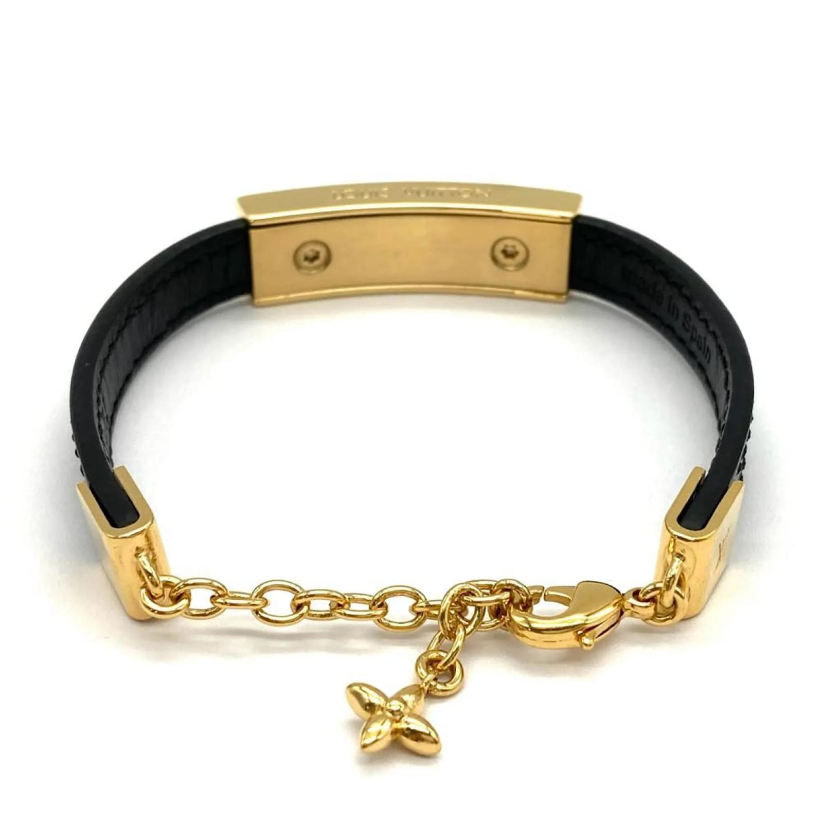 This Louis Vuitton charm bracelet, model M8676Z, features a sleek black leather design and is crafted in Spain. With a length of 18cm (7.08 inches), it is suitable for various wrist sizes. The bracelet is categorized as used but remains in very good condition, showing only slight traces of use, including minor scratches and dirt. It is important to review the provided images for a detailed view of the item’s condition. No additional accessories are included with the purchase.
