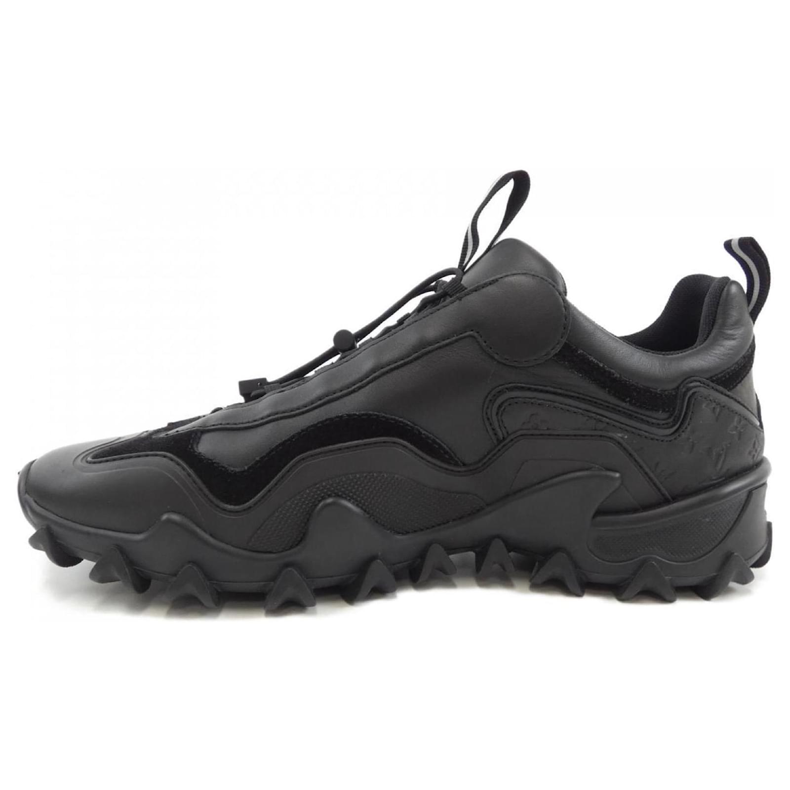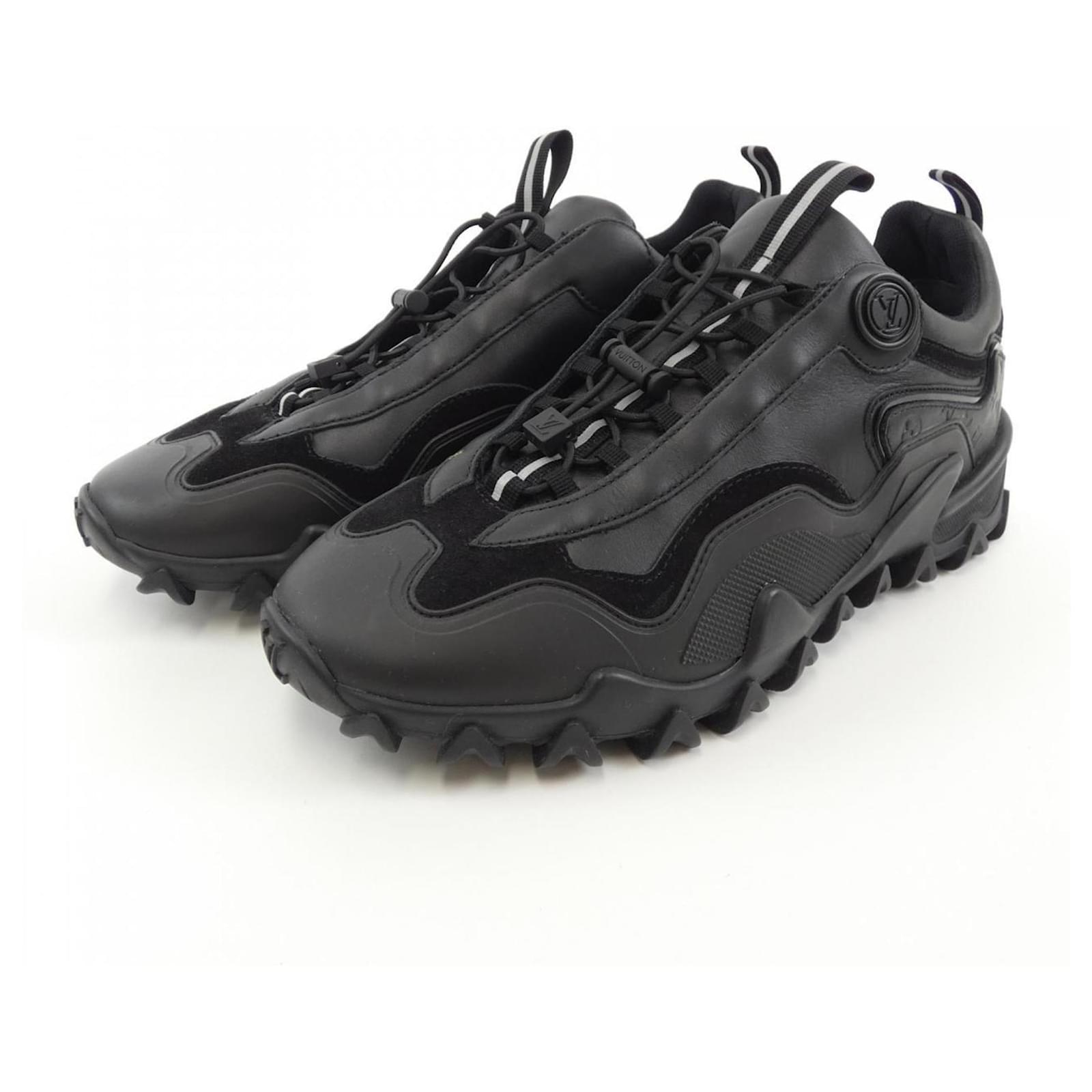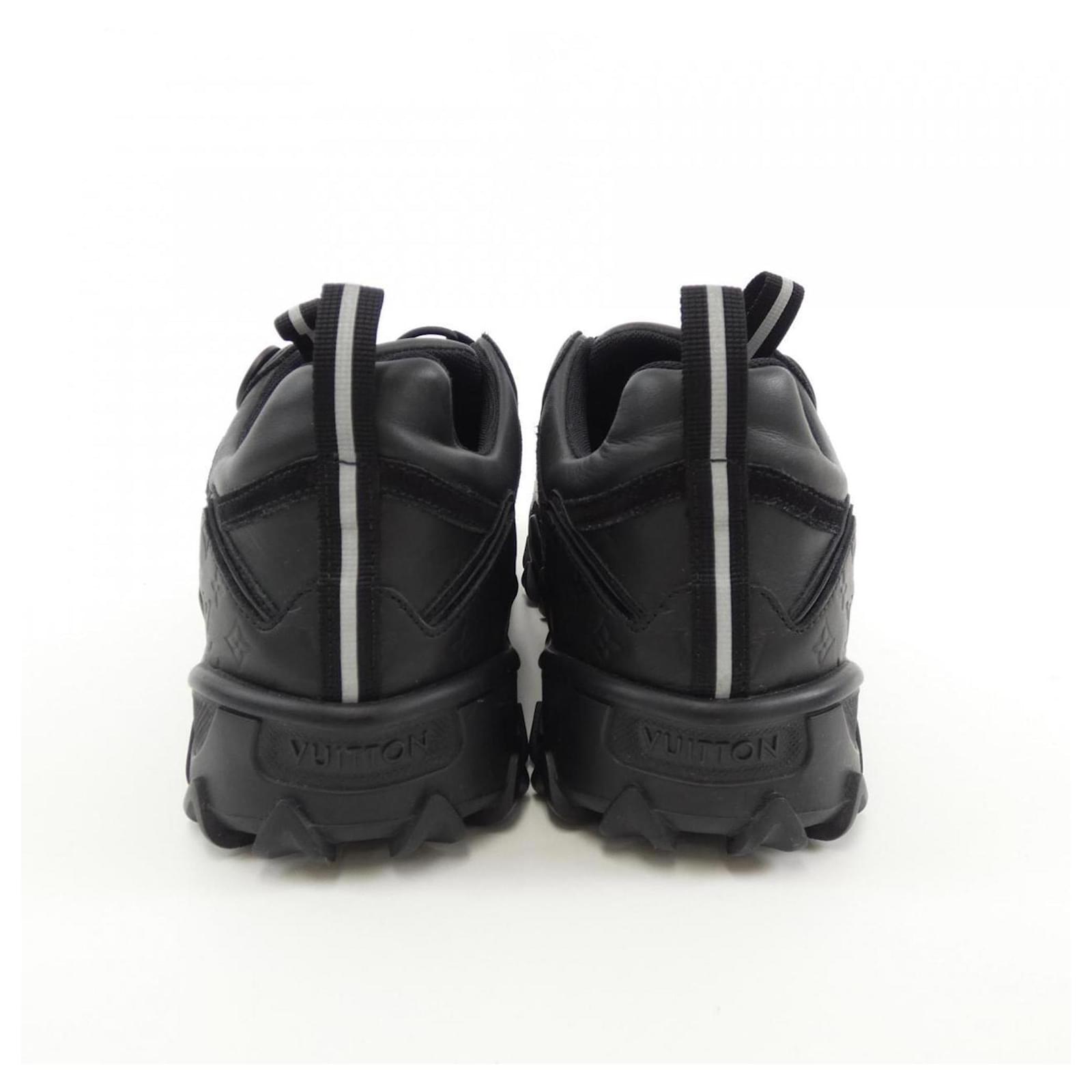 These Louis Vuitton sneakers are presented in a classic black color and are categorized as used, with an acceptable condition rating. The item shows moderate traces of usage, including creases, misshaping, scratches, and dirt. It is important to review the provided images to assess the exact condition before purchasing. Accessories included with the sneakers should also be verified through the images.