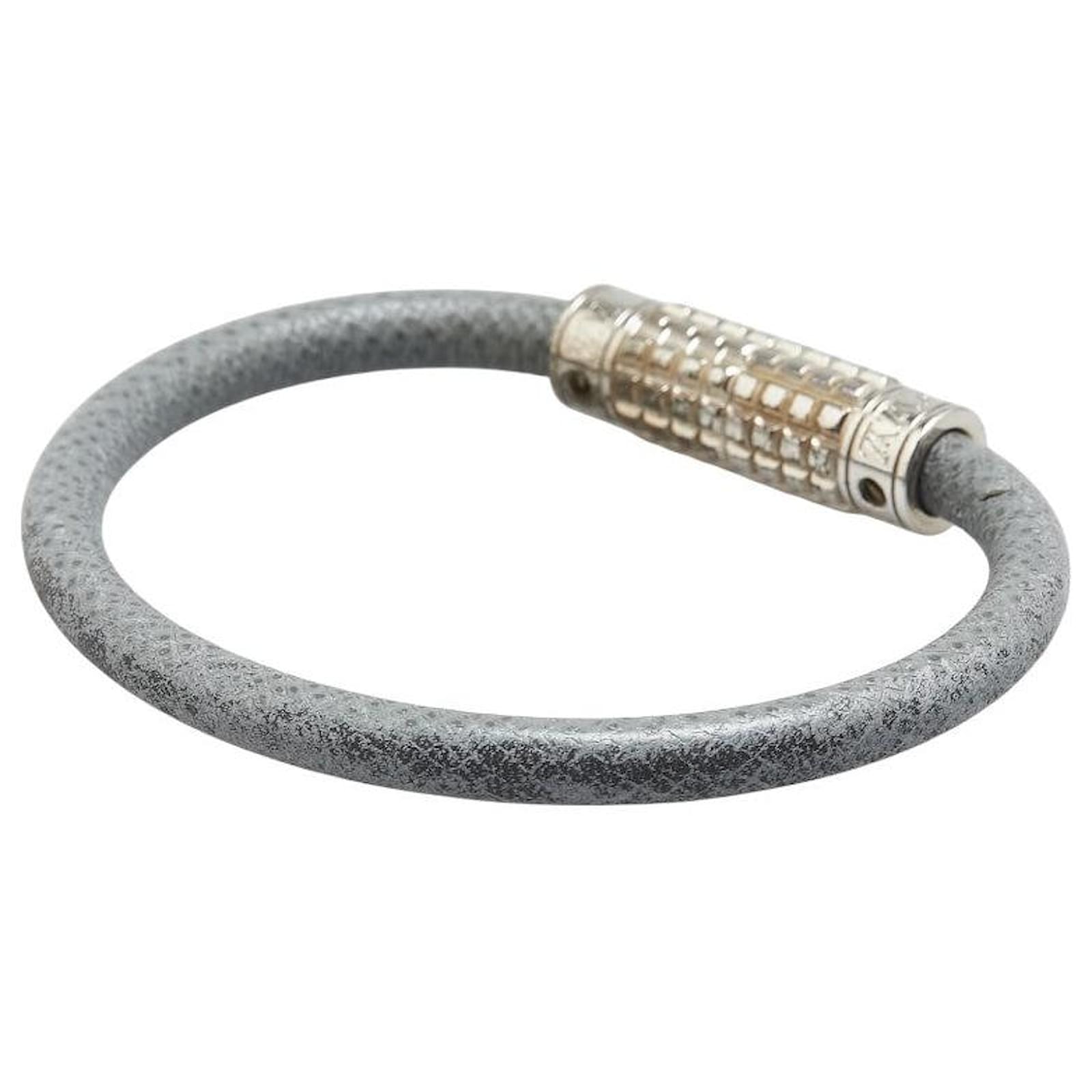 – General information -\nBrand : Louis VuittonItem name : Louis Vuitton Braclet Digit Damier Graphite BraceletModel number : M6626D – Design -Type : BraceletMaterial : LeatherColor : GreyGender : Female- Size -Size : Size : 0.5Meterial : Leather/Metal- Inventory -Serial Number : CA0144SKU : 1202450005346000A0025843812- Included Items -Accessories : null*Before purchasing, please refer to the images of the accessories included with the item.- Condition -Condition : Very Good ConditionRank : Used A Used condition with some scratches and stains.Condition Notice : Before purchasing, please refer to the images for the exact condition of the item. \n Product Id: 525526 \n