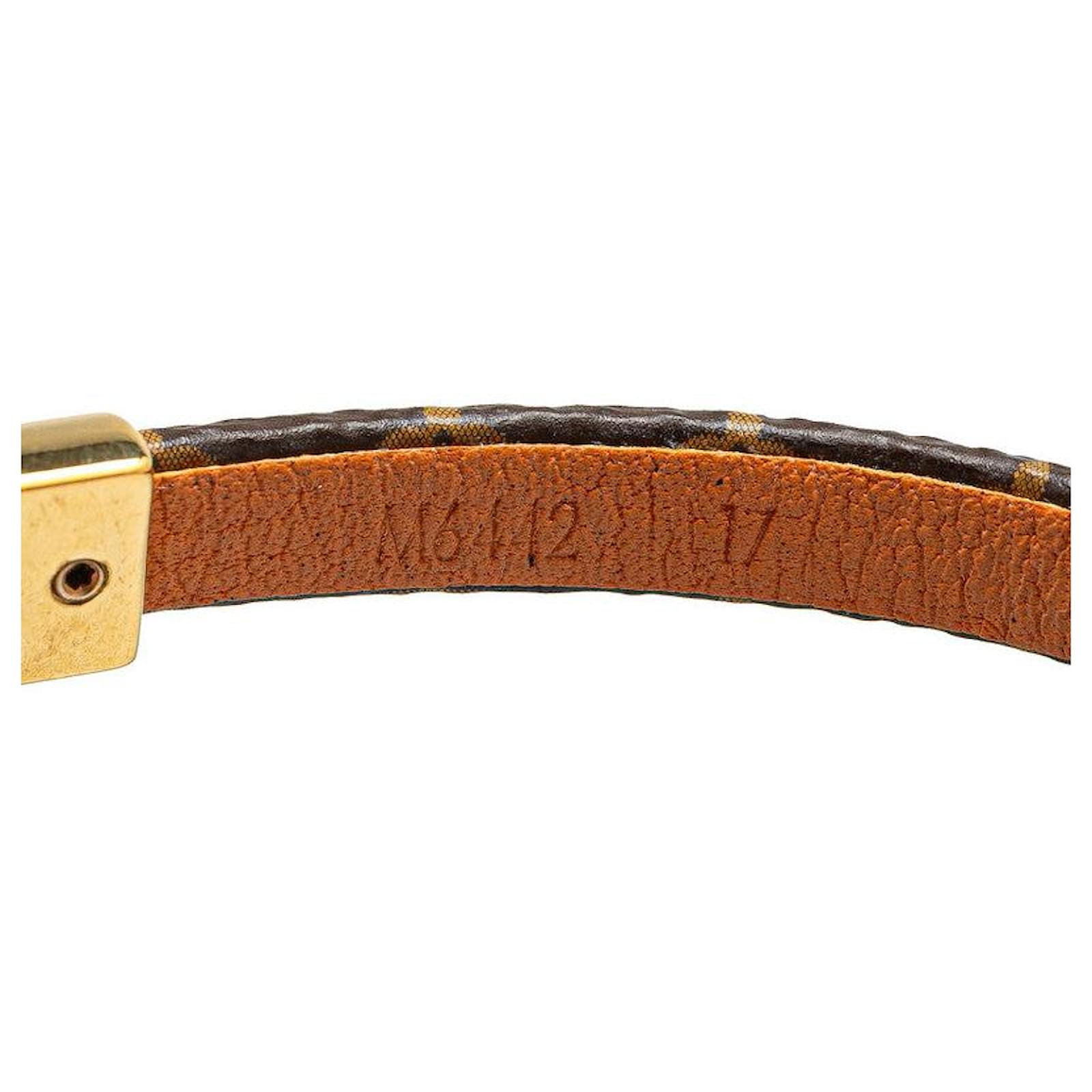– General information -\nBrand : Louis VuittonItem name : Louis Vuitton Braclet LV Tribute Monogram BraceletModel number : M6442 – Design -Type : BraceletMaterial : CanvasColor : BrownGender : Female- Size -Size : Size : 18Meterial : PVC- Inventory -Serial Number : BC2230SKU : 1202450008316000A0025818520- Included Items -Accessories : Dust Bag,Box*Before purchasing, please refer to the images of the accessories included with the item.- Condition -Condition : Great ConditionRank : Used A Good used condition with slight scratches and stains.Condition Notice : Before purchasing, please refer to the images for the exact condition of the item. \n Product Id: 511868 \n